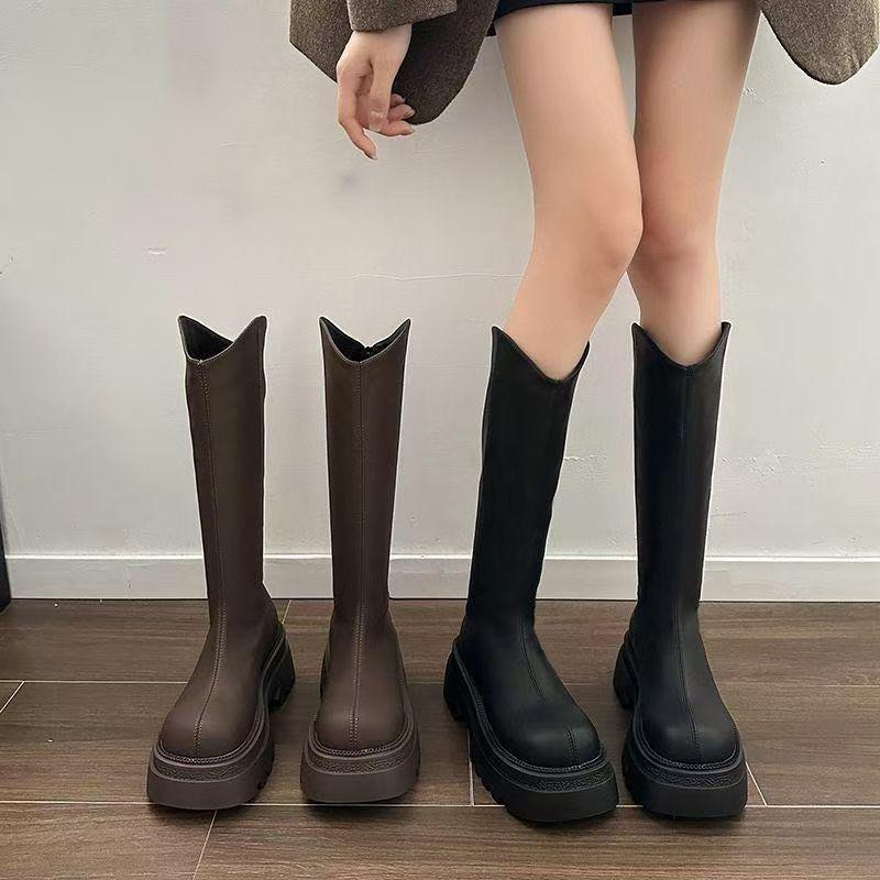 Botas altas de caballero para personas pequeñas, Botas largas ajustadas, Nuevo estilo otoño e invierno 2025, Suela gruesa de terciopelo, Botas por encima de la rodilla para mujer