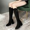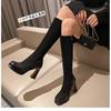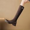 Botas Slip-On de Color Sólido 2025 Otoño e Invierno Nuevo Ropa Exterior Botas Hasta la Rodilla Botas Antideslizantes Tacón Grueso Elegantes Botas Slim