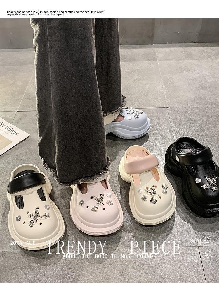 Pantuflas de Punta Gruesa para Mujer, Zuecos, Nuevas Pantuflas Decorativas de Moda 2025 para Mujer, Pantuflas Versátiles para Ropa Exterior de Verano