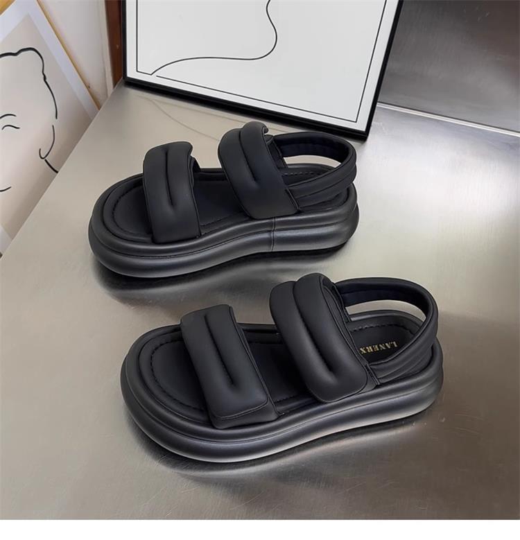 Sandalias de Pan de Suela Gruesa para Mujer, Ropa Exterior de Verano, Zapatos Casuales Deportivos de Playa, Zapatos Romanos de Velcro Nuevos para Mujer 2025