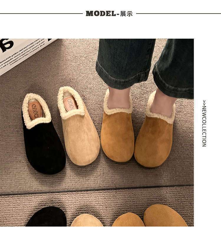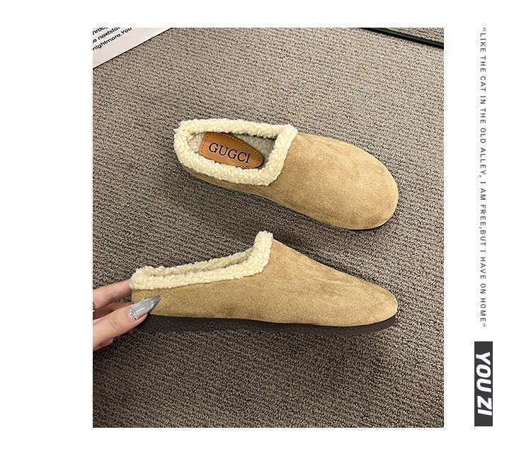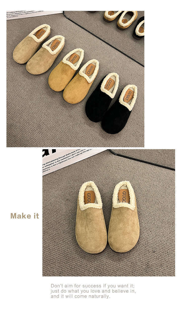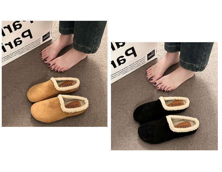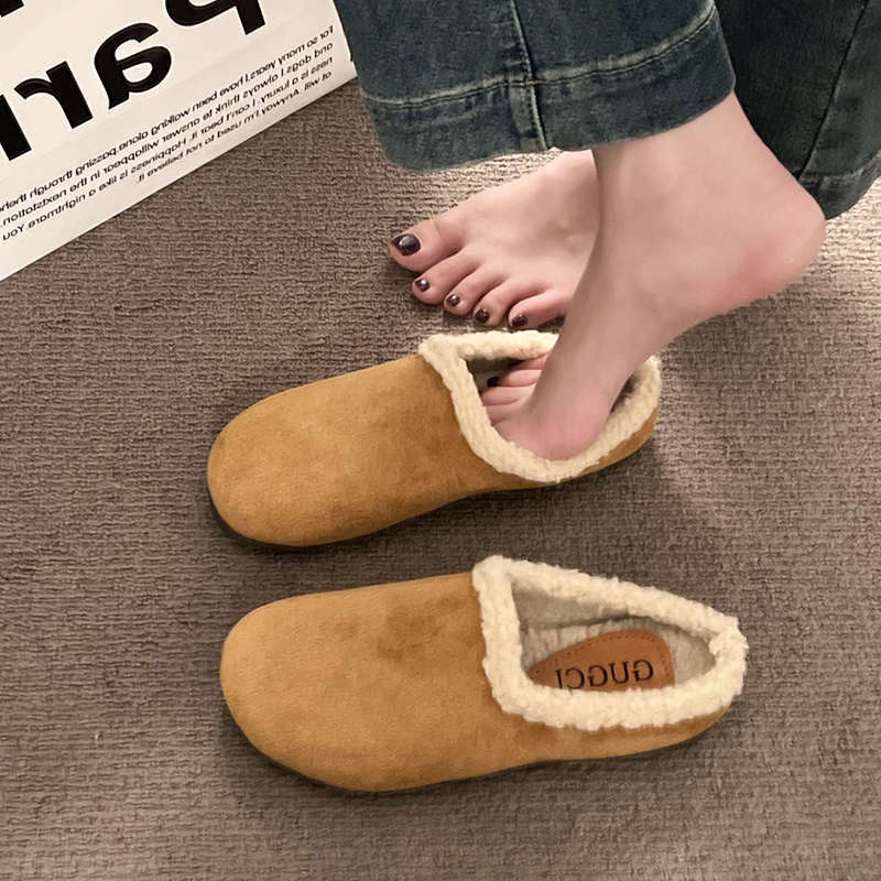Pantuflas de algodón cálidas de felpa, informales, para otoño e invierno, estilo japonés, estilo retro, Baotou Maomao, para mujer, 2024