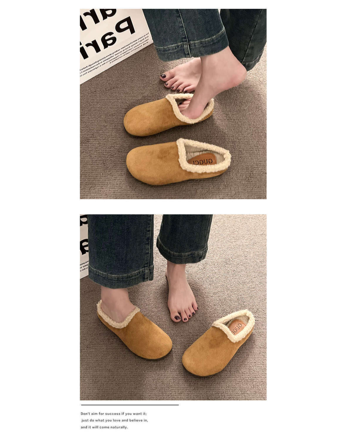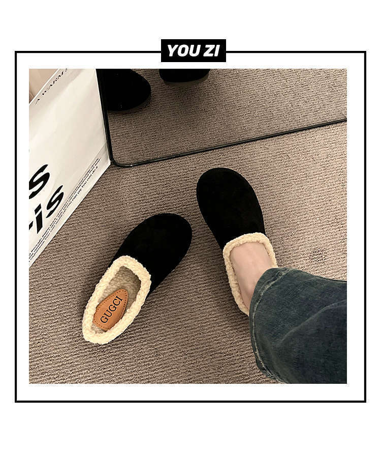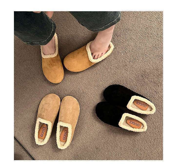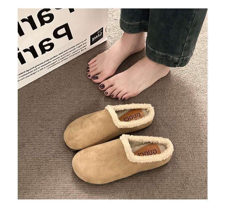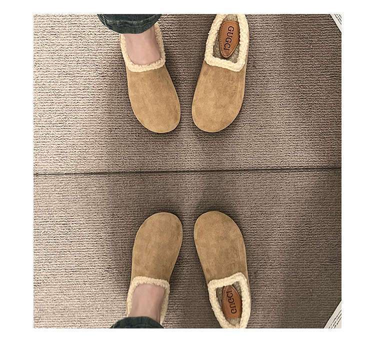 Pantuflas de algodón cálidas de felpa, informales, para otoño e invierno, estilo japonés, estilo retro, Baotou Maomao, para mujer, 2024