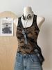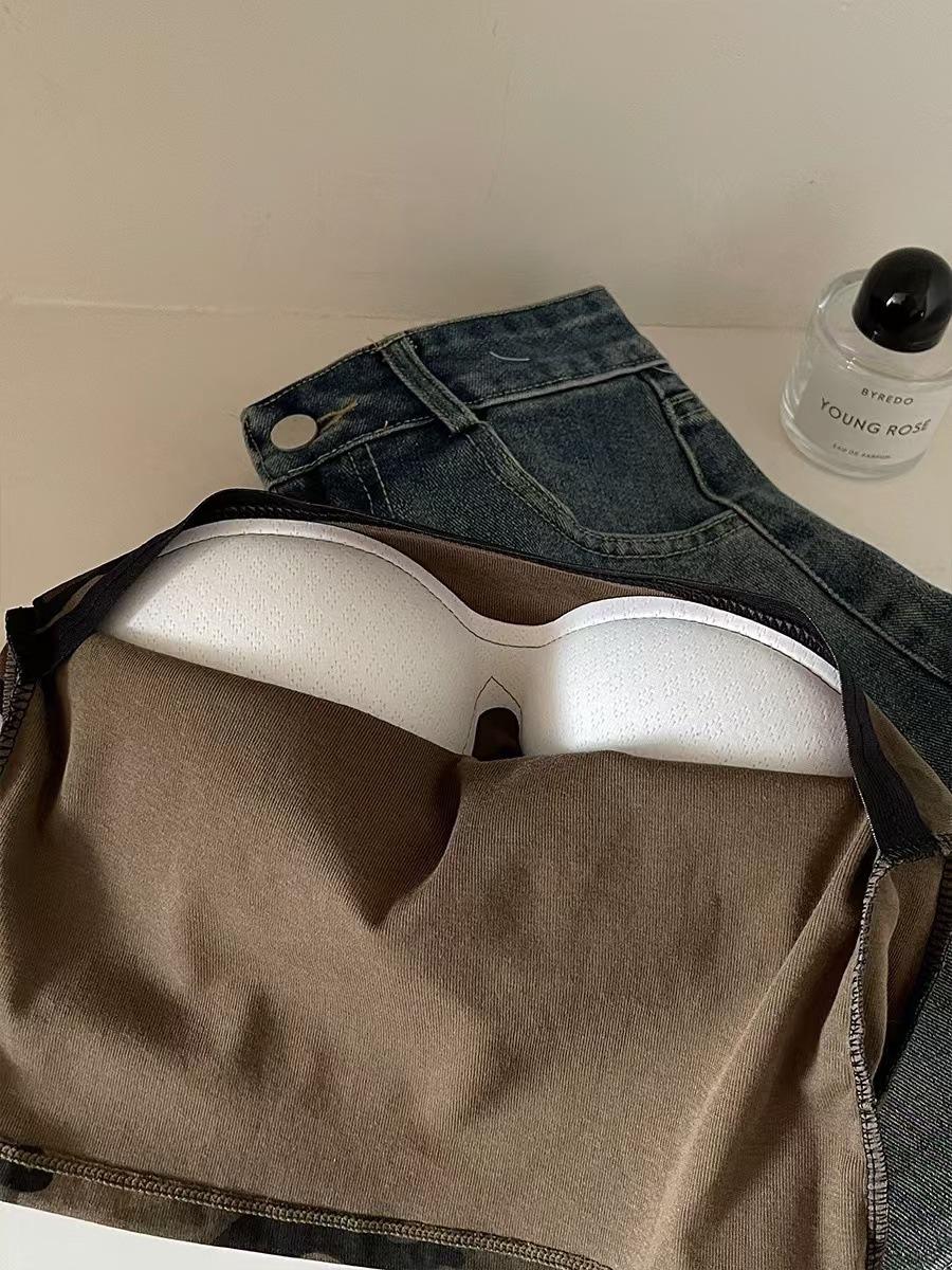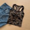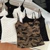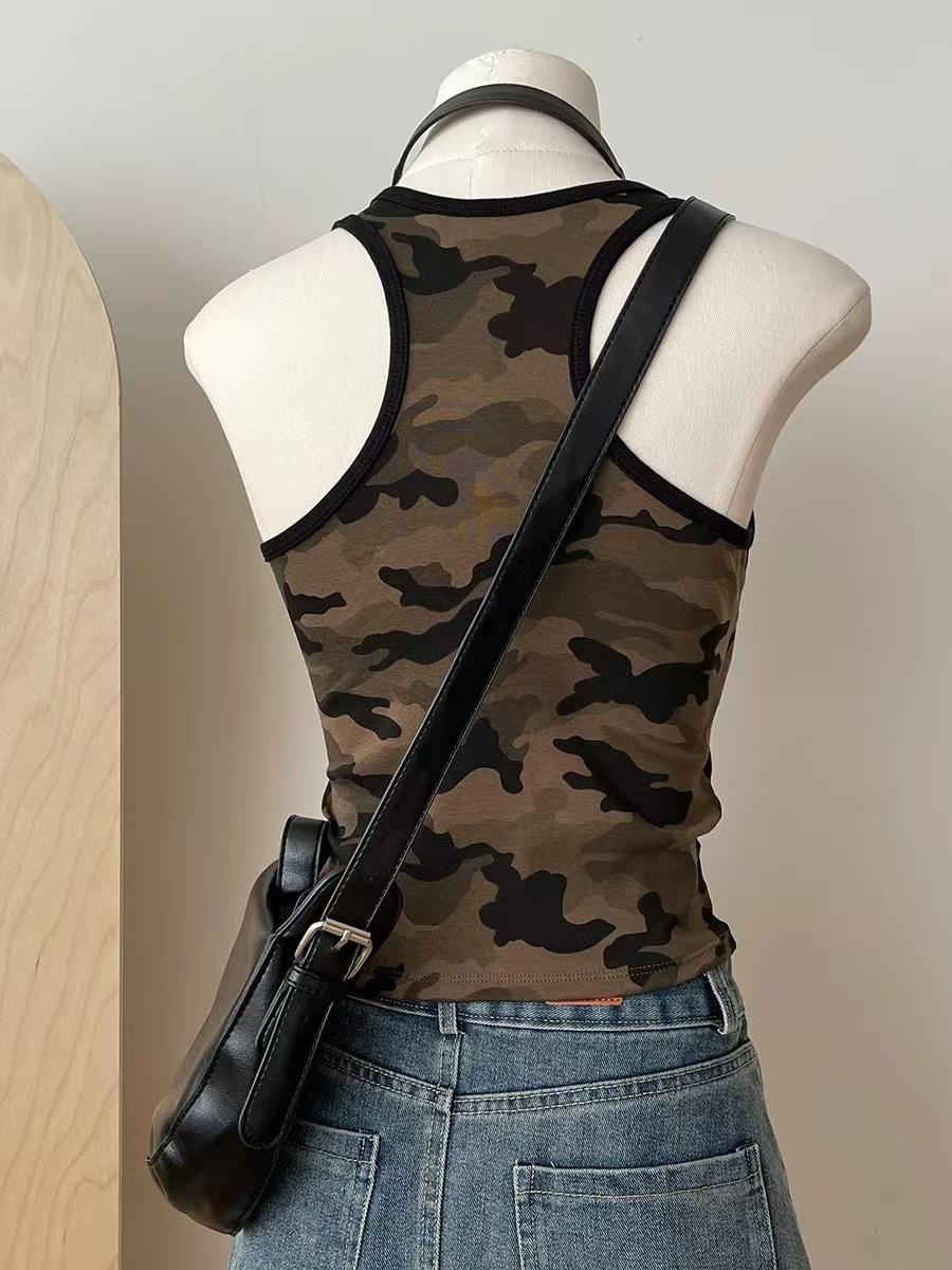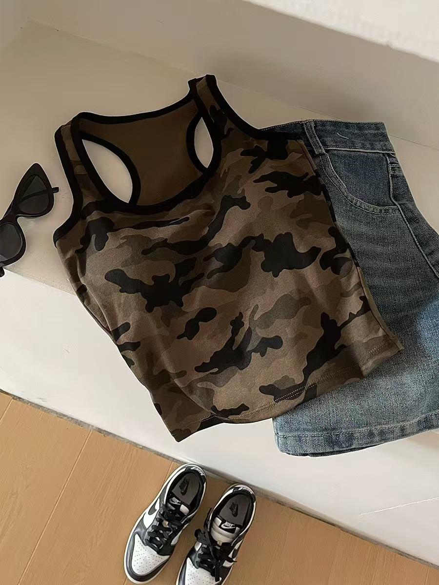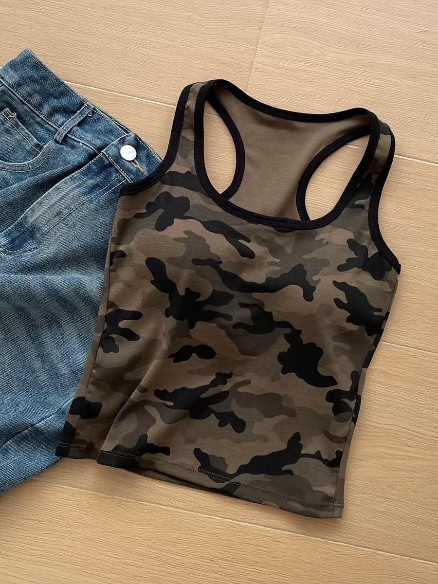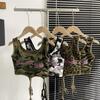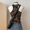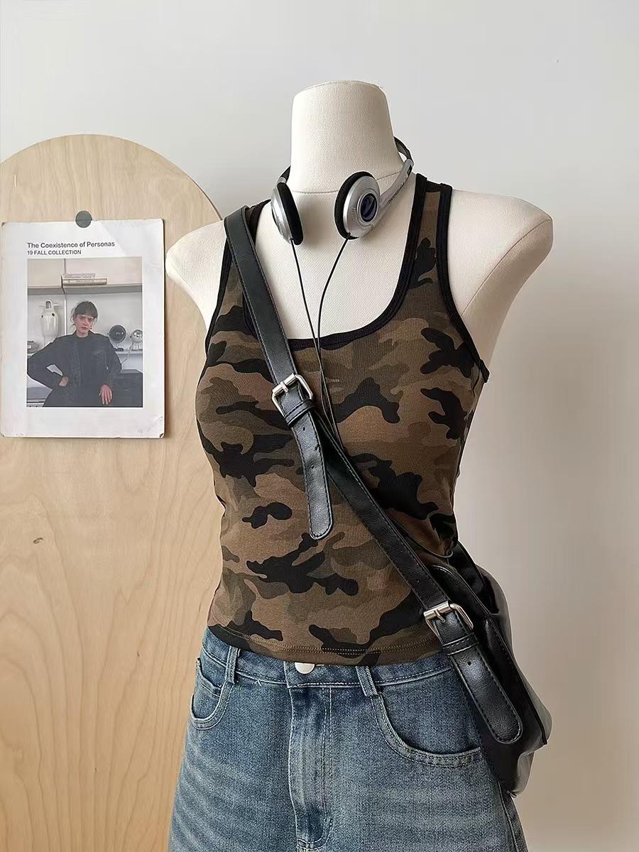 RENA Estilo Americano Vintage Spice Girl Camuflaje Ajustado Adelgazante Camisola de Tirantes I para Mujer Top de Primavera y Verano para Mujer con Almohadilla en el Pecho para Mujer
