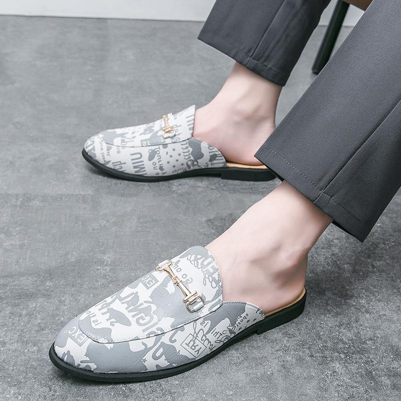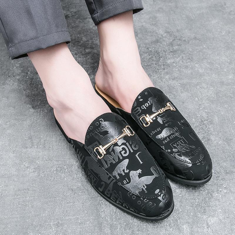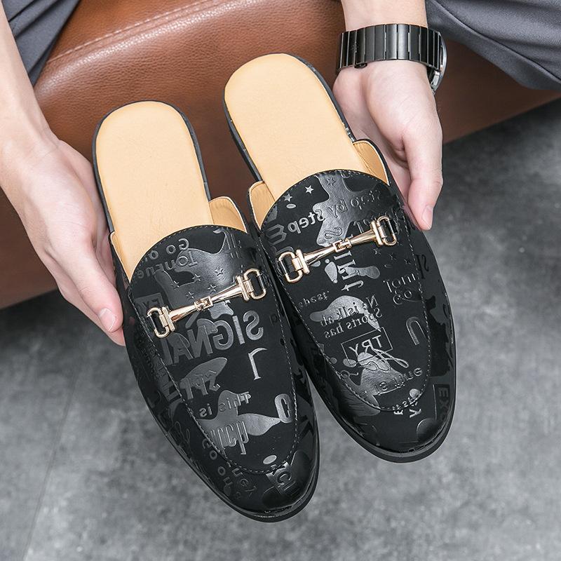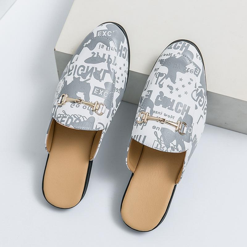Zapatos Casuales de Cuero Pequeños de Primavera Transfronterizos Baotou de Medio Soporte para Hombre Zapatos Perezosos Slip-on Talla Grande Sandalias