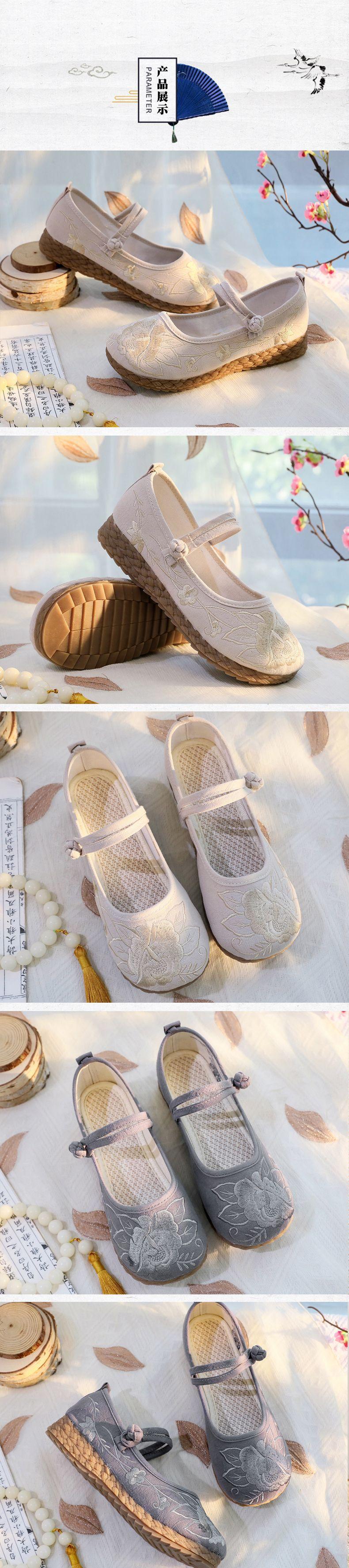 Zapatos Bordados Taiyi Estilo Antiguo de Beijing para Mujer, Zapatos Hanfu, Estilo Antiguo, Elegantes Zapatos Individuales de Estilo Étnico, Zapatos de Tela, Zapatos de Mamá, Zapatos para Caminar Antideslizantes
