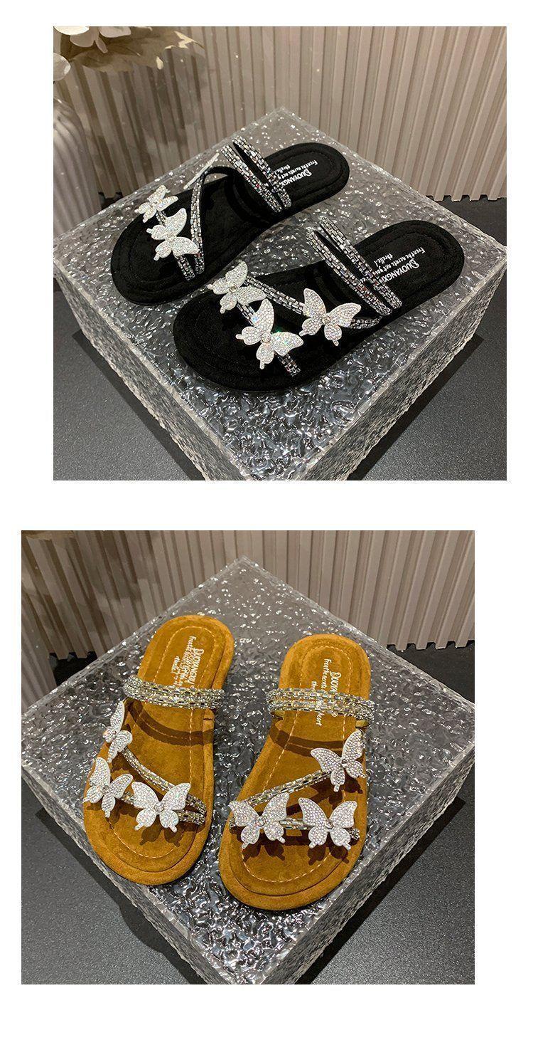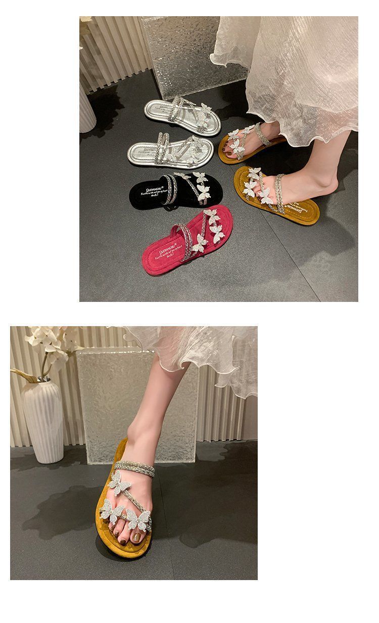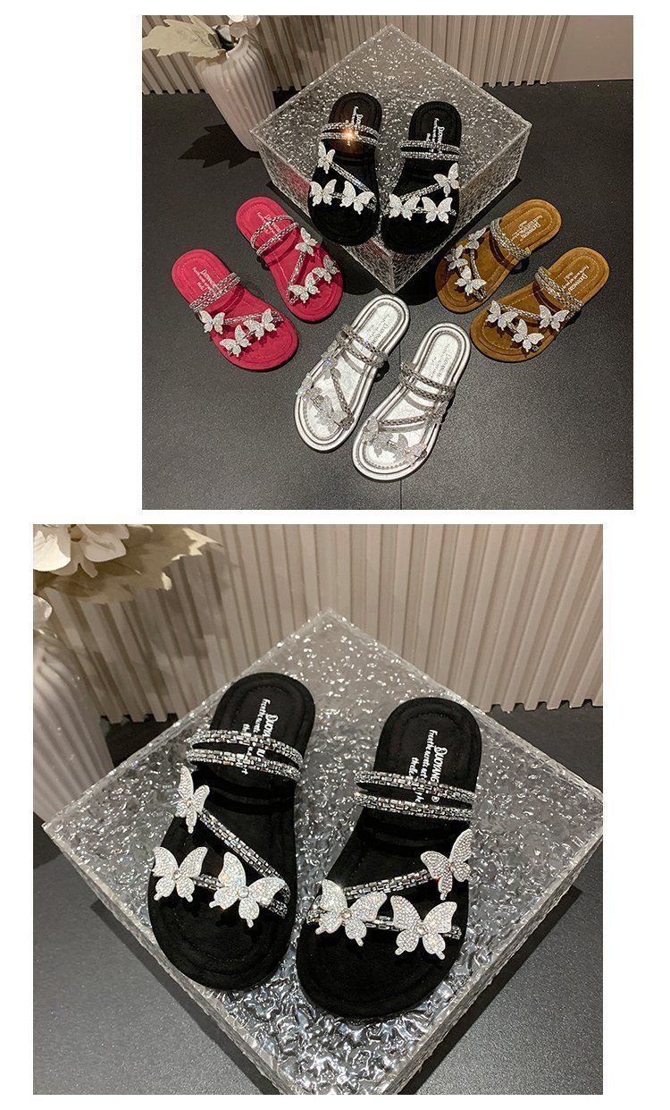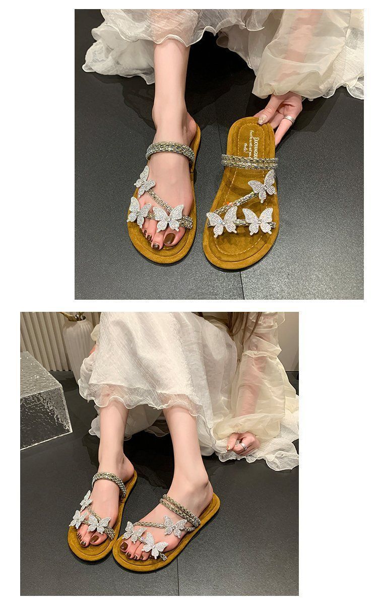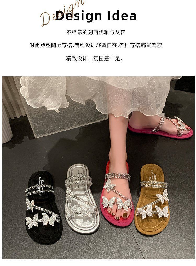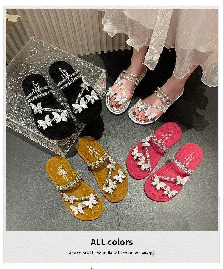 Pantuflas planas Verano 2024 Pedrería Mariposa Estilo Hada Cool para Exterior Cómodas Dos Usos Versátiles Pantuflas Francesas