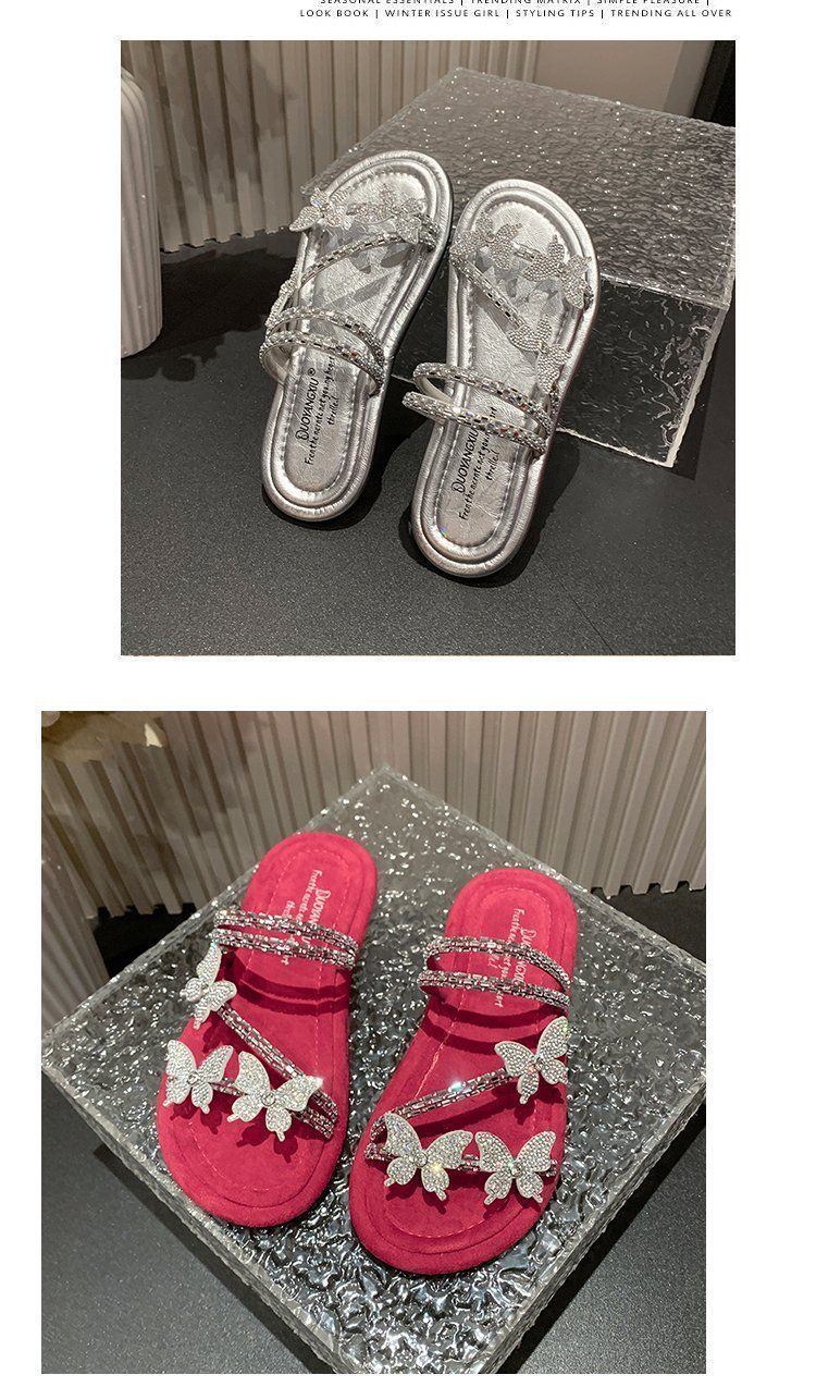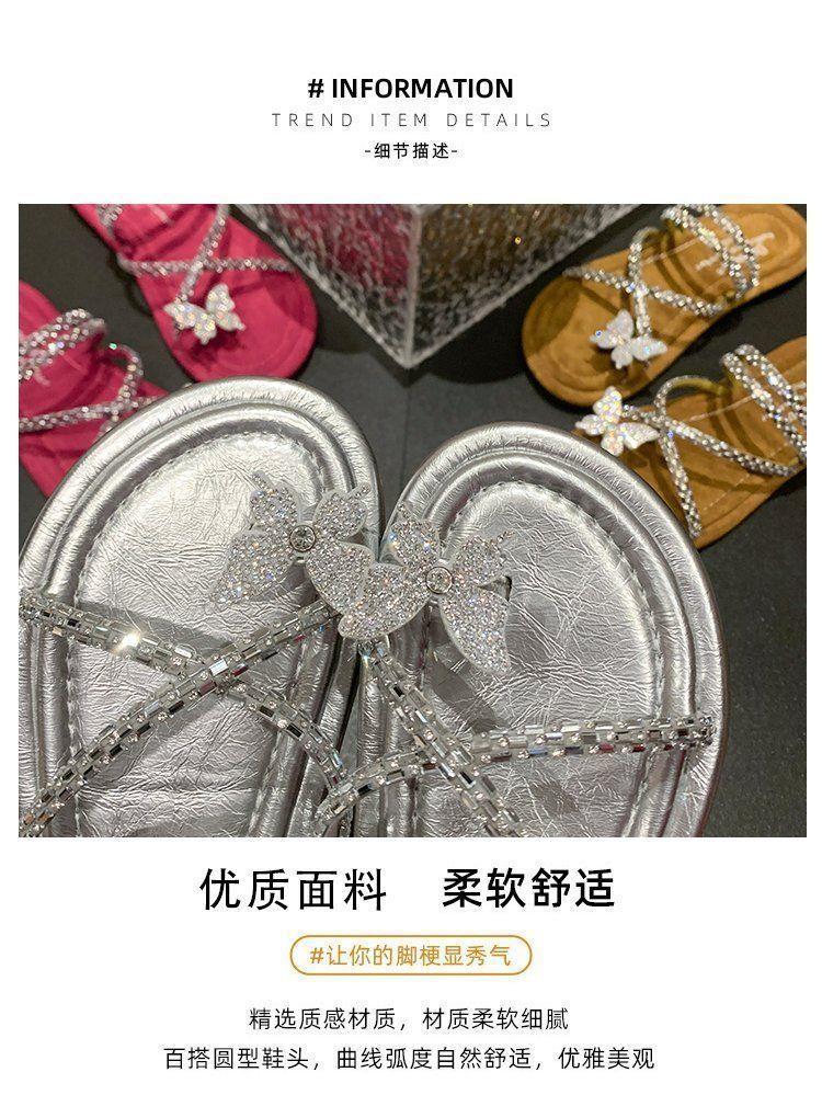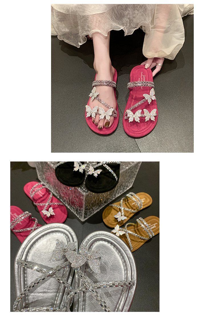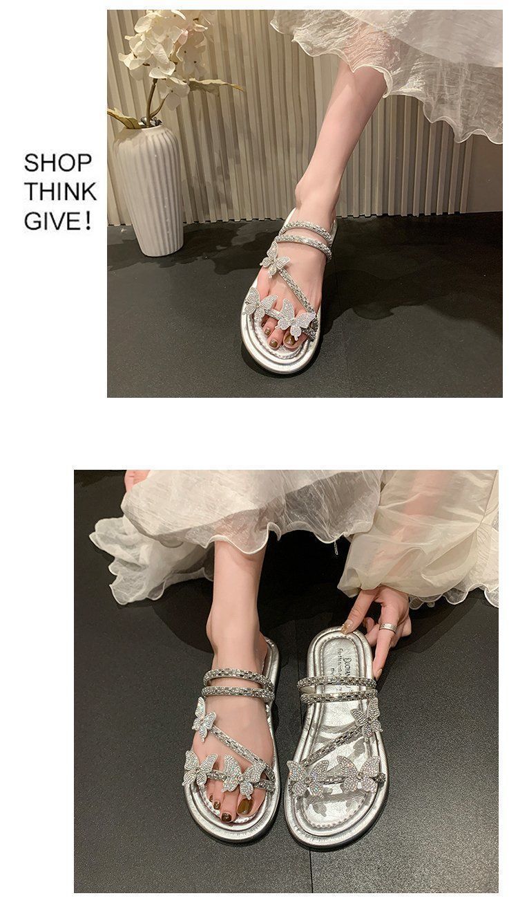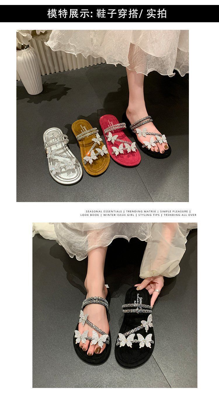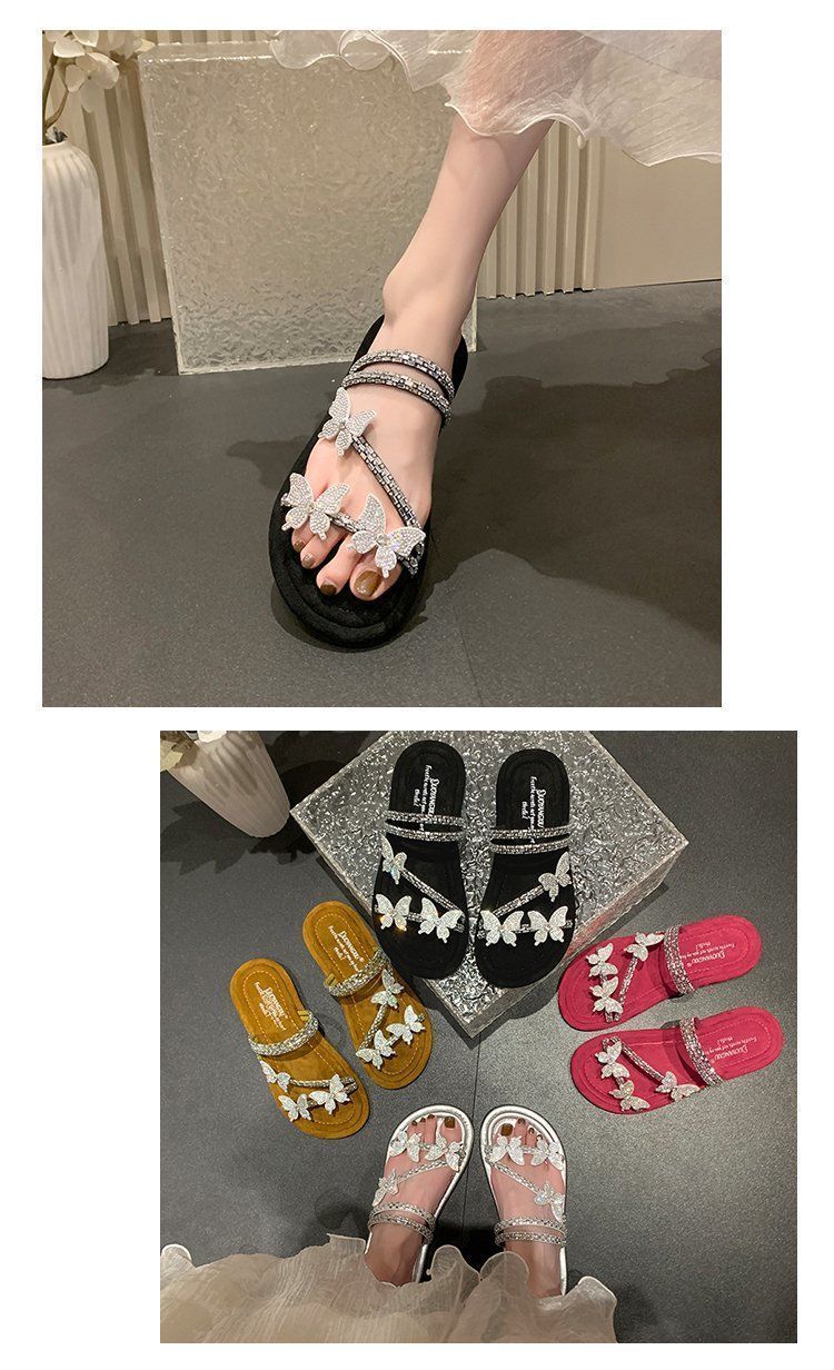 Pantuflas planas Verano 2024 Pedrería Mariposa Estilo Hada Cool para Exterior Cómodas Dos Usos Versátiles Pantuflas Francesas