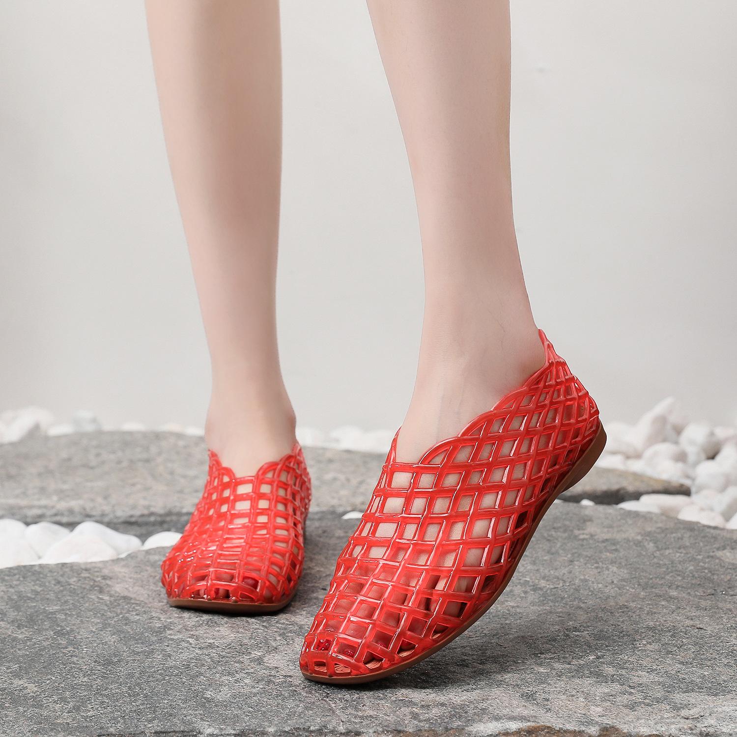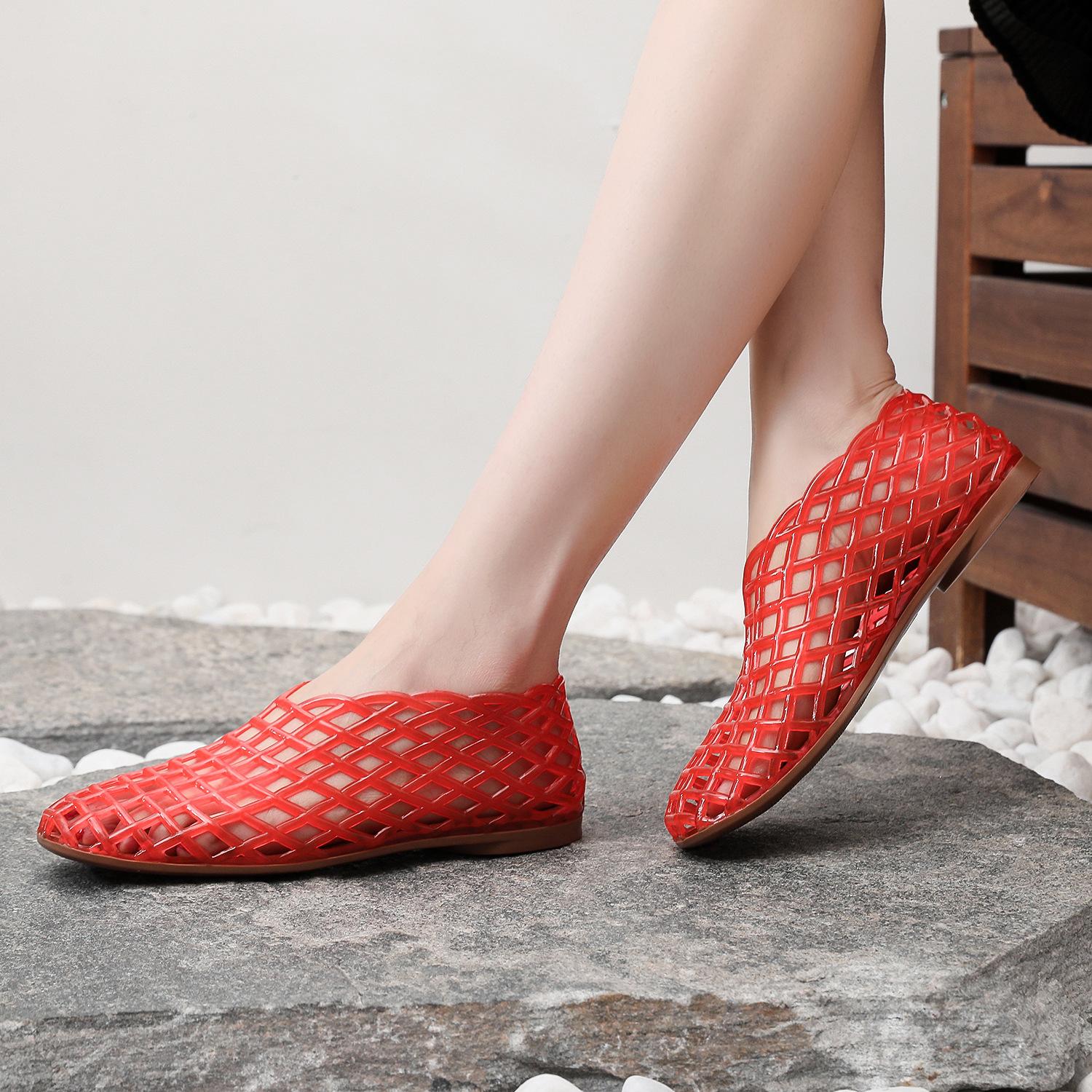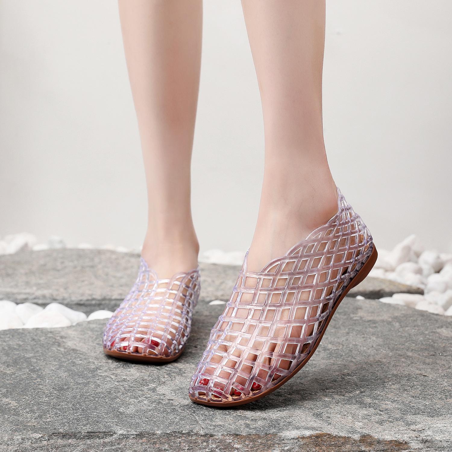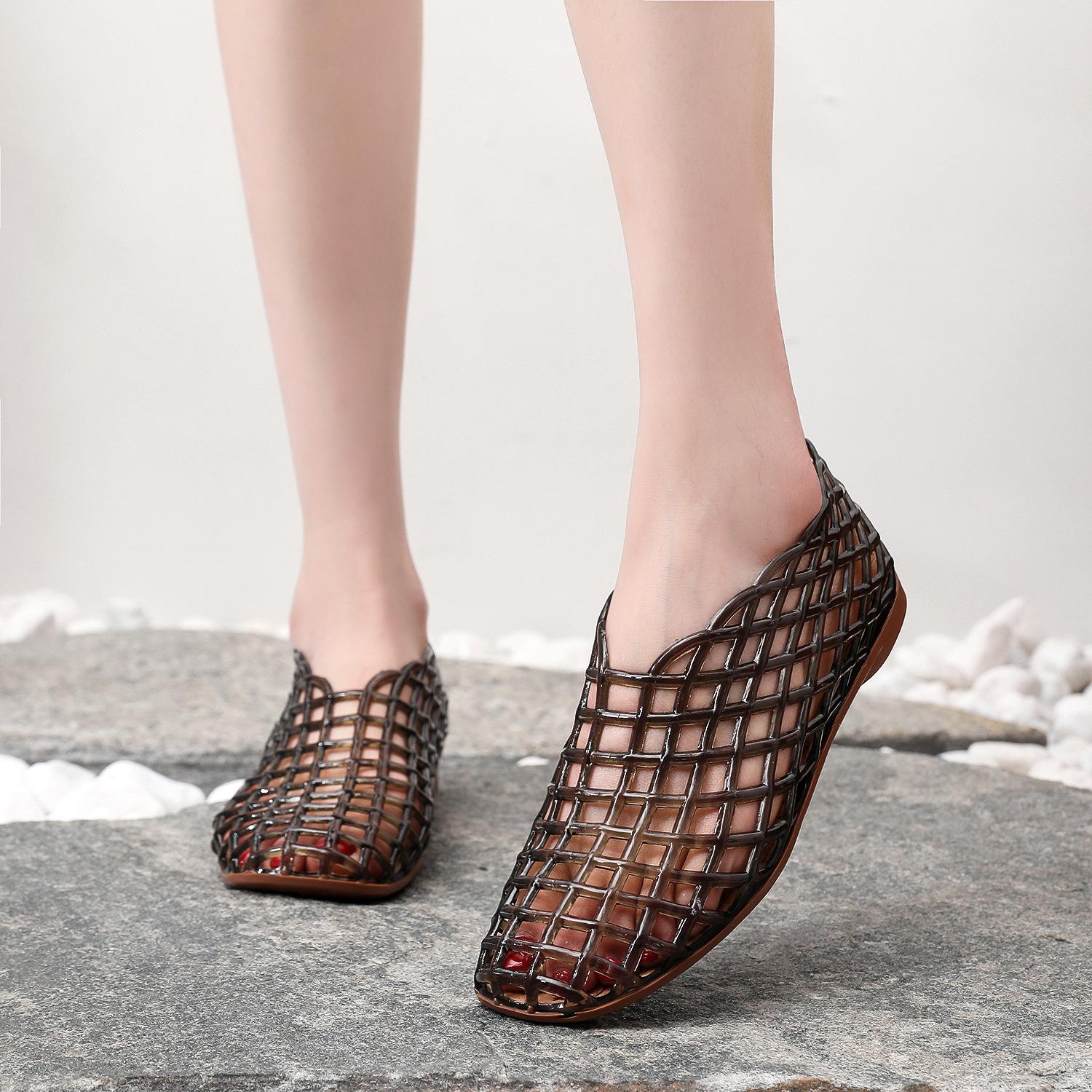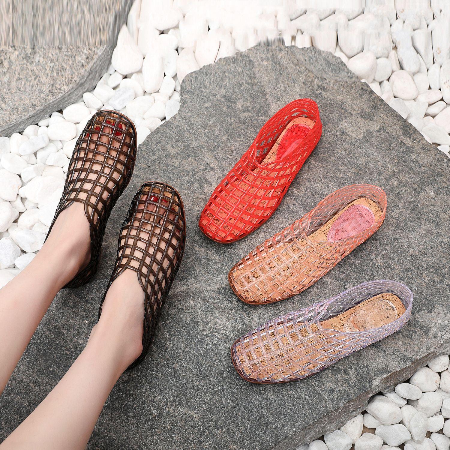 Sandalias planas para mujer Primavera y Verano Nuevas Huecas Transpirables Zapatos Nido de Pájaro Cómodas Combinables Punta Talón Media Caña Zapatos de Playa