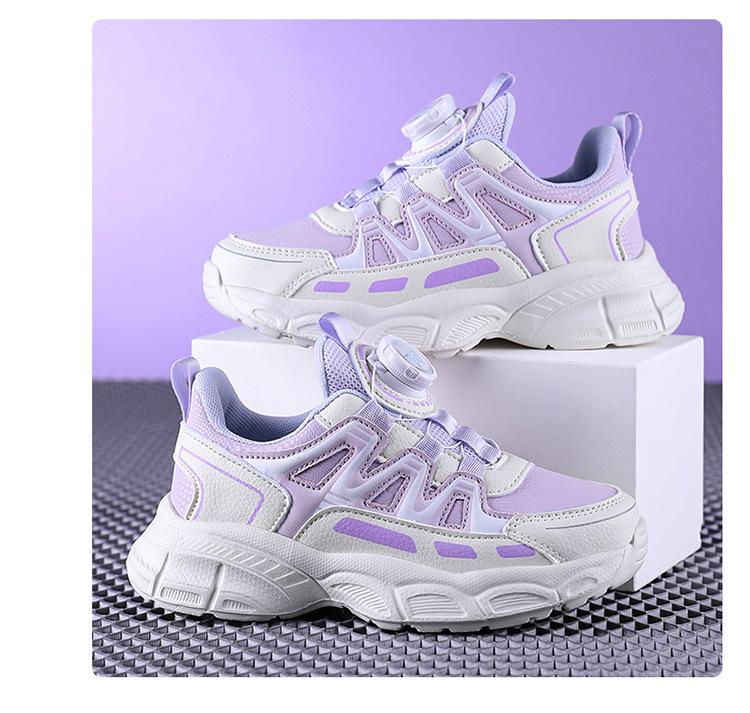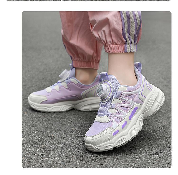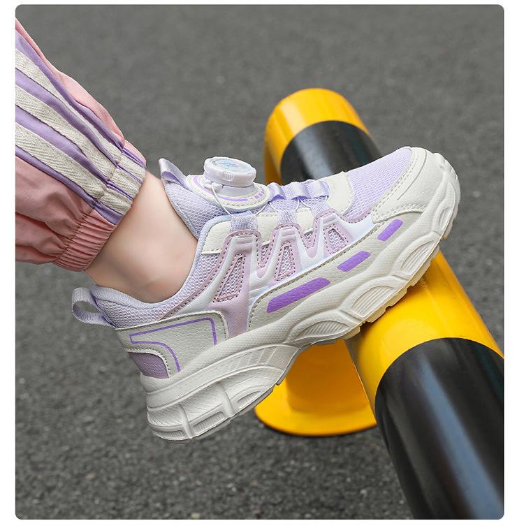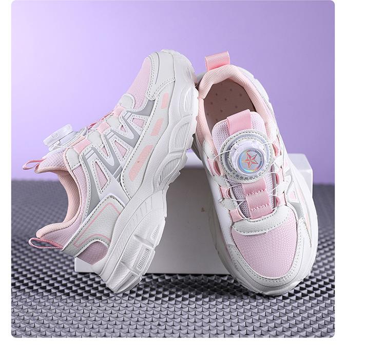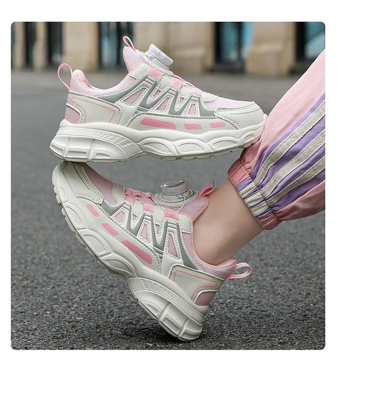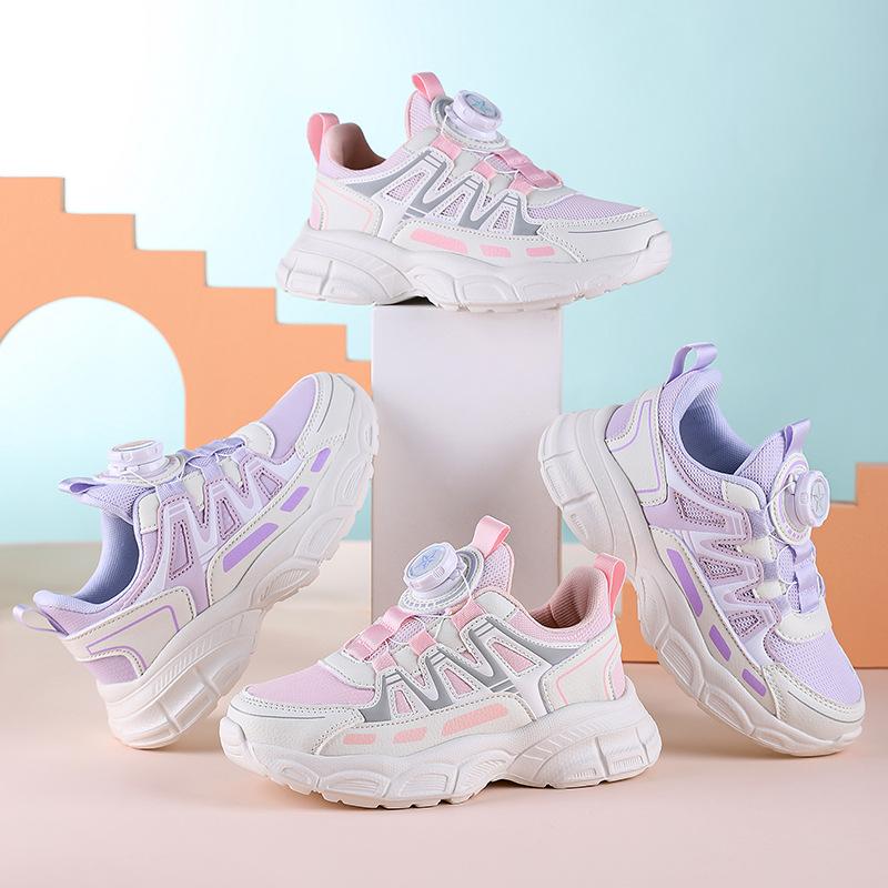 Zapatos de Niña 2025 Otoño Nuevo Malla Transpirable Botón Giratorio Zapatos Deportivos para Niños Suela Blanda Antideslizantes Zapatos Casuales para Niños
