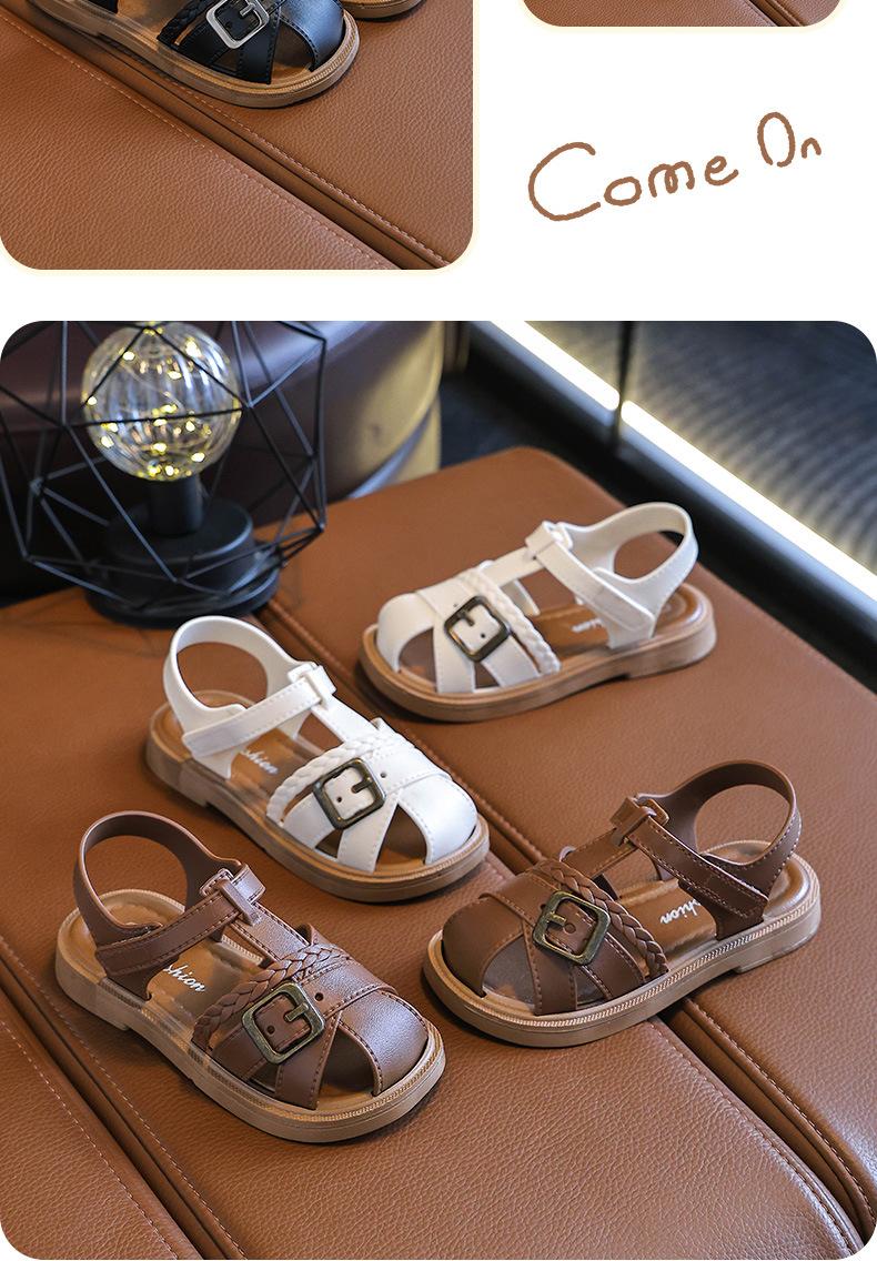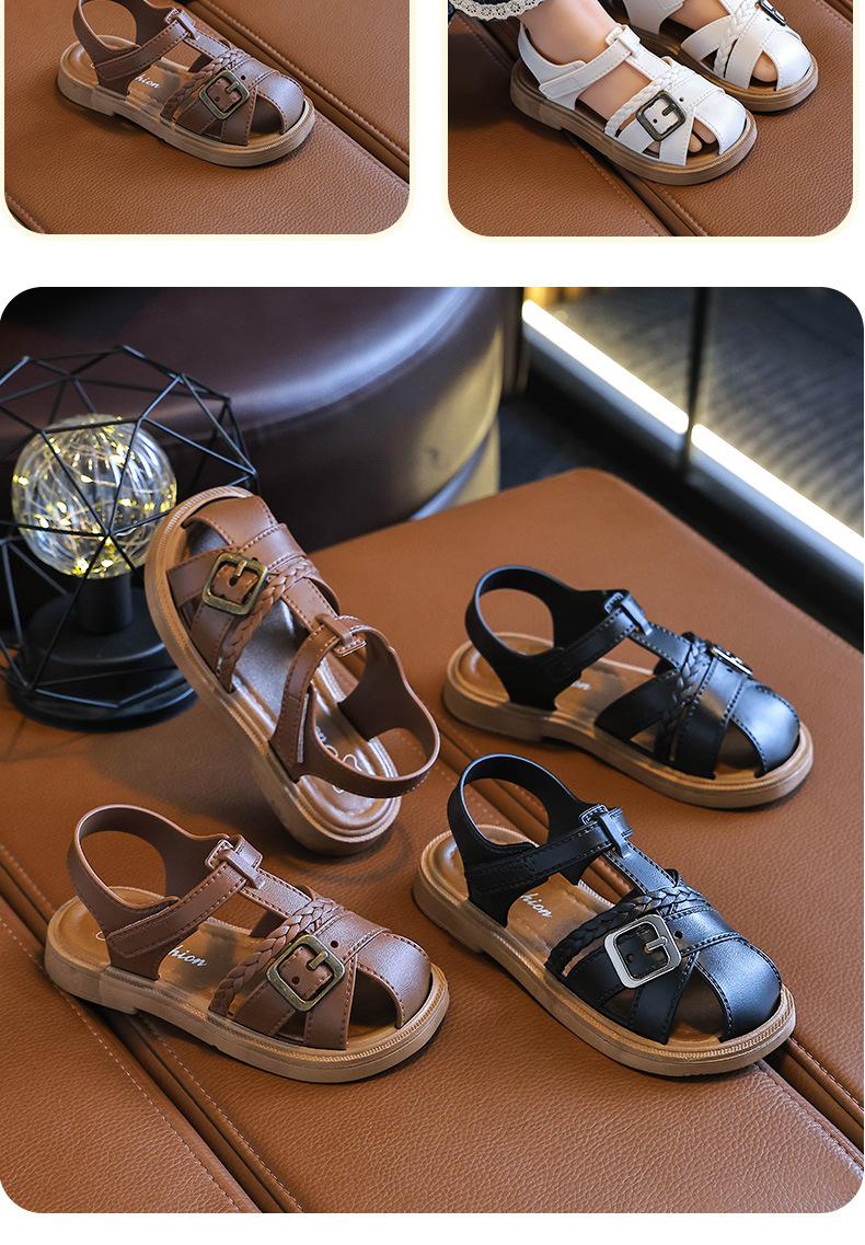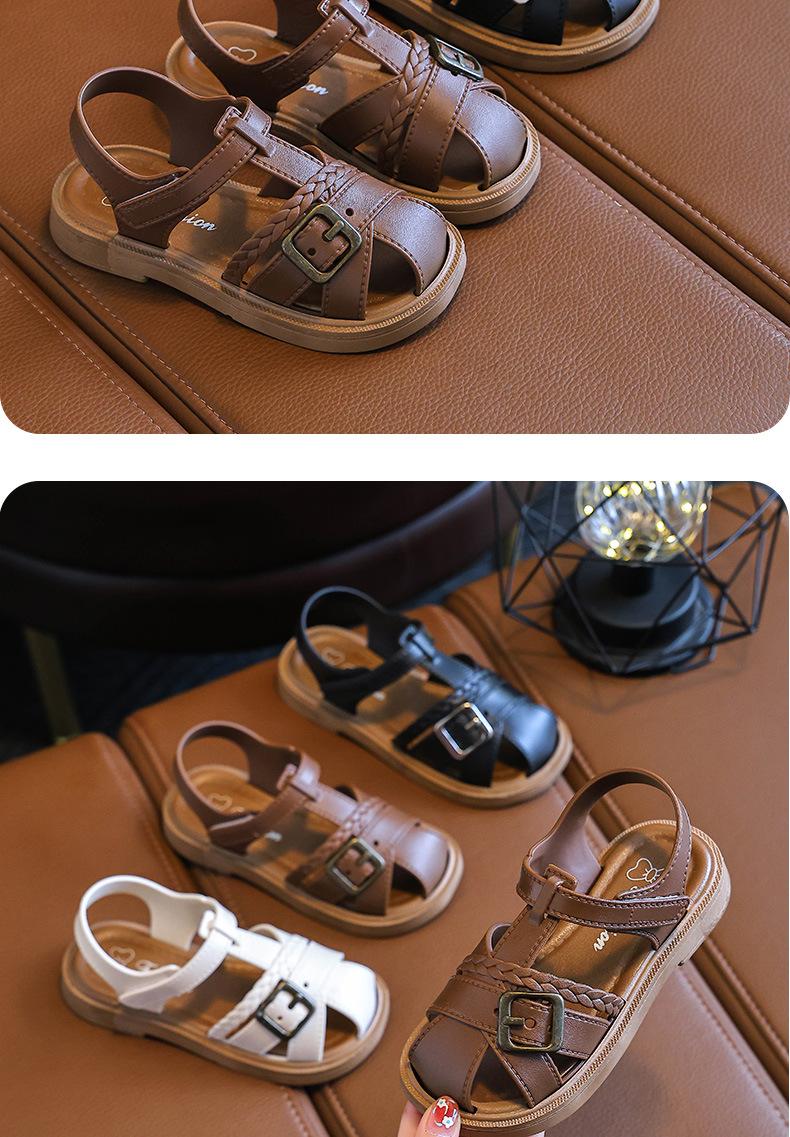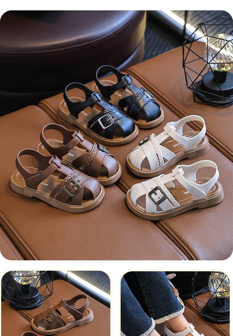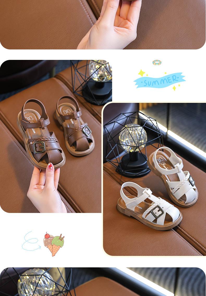 Sandalias de Princesa para Niñas 2025 Nuevo Verano Antideslizantes Suela Suave Velcro Zapatos Infantiles Sandalias de Playa