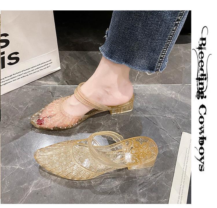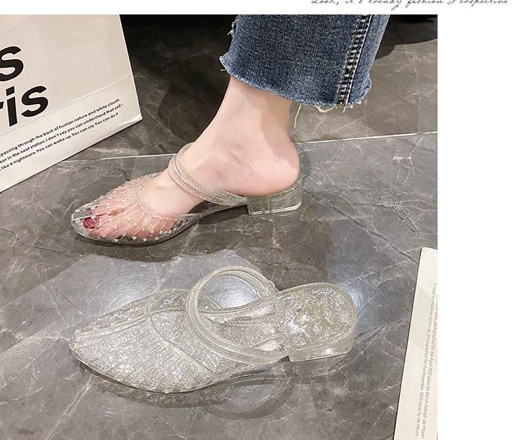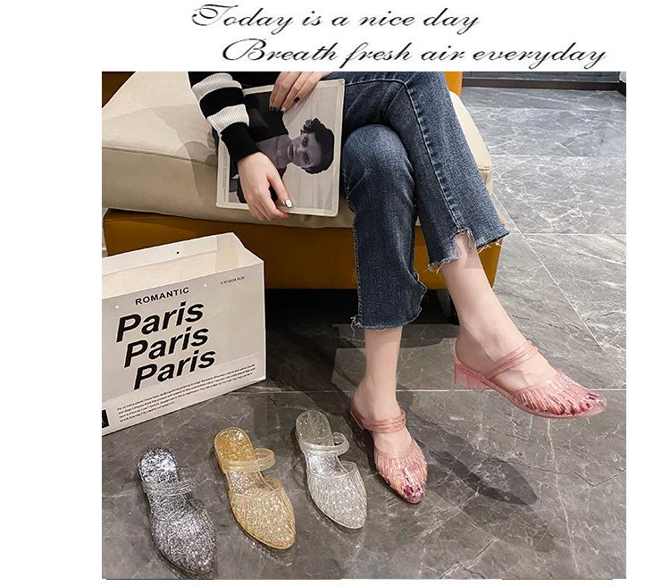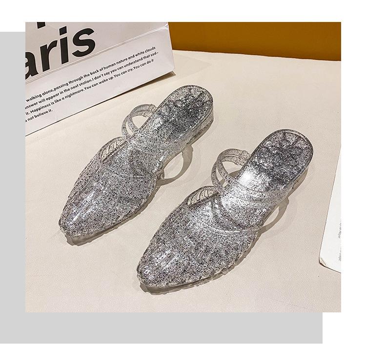 Sandalias de Cristal de Moda de Internet para Mujer, Novedad de Moda para Verano, Exterior para Combinar con Todo, No Absorbentes, Antideslizantes, Puntera en Punta