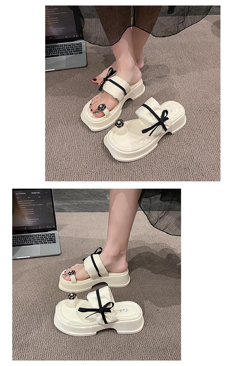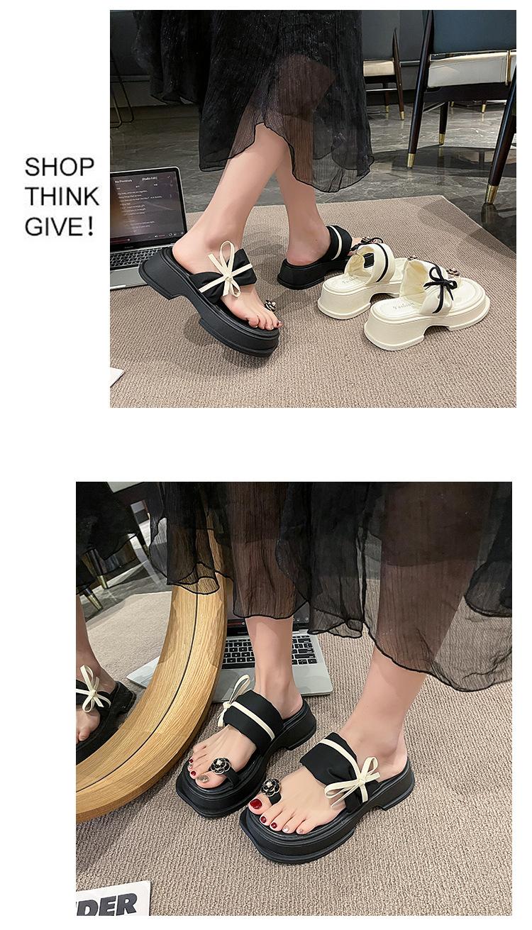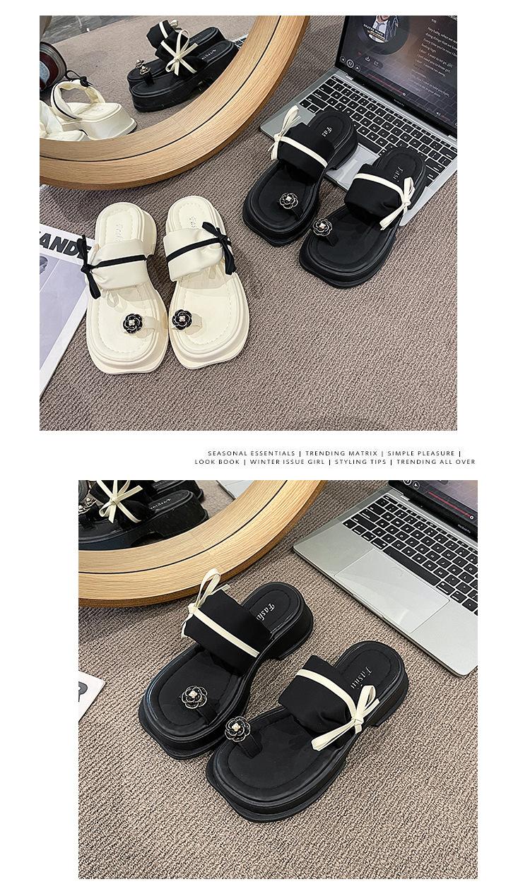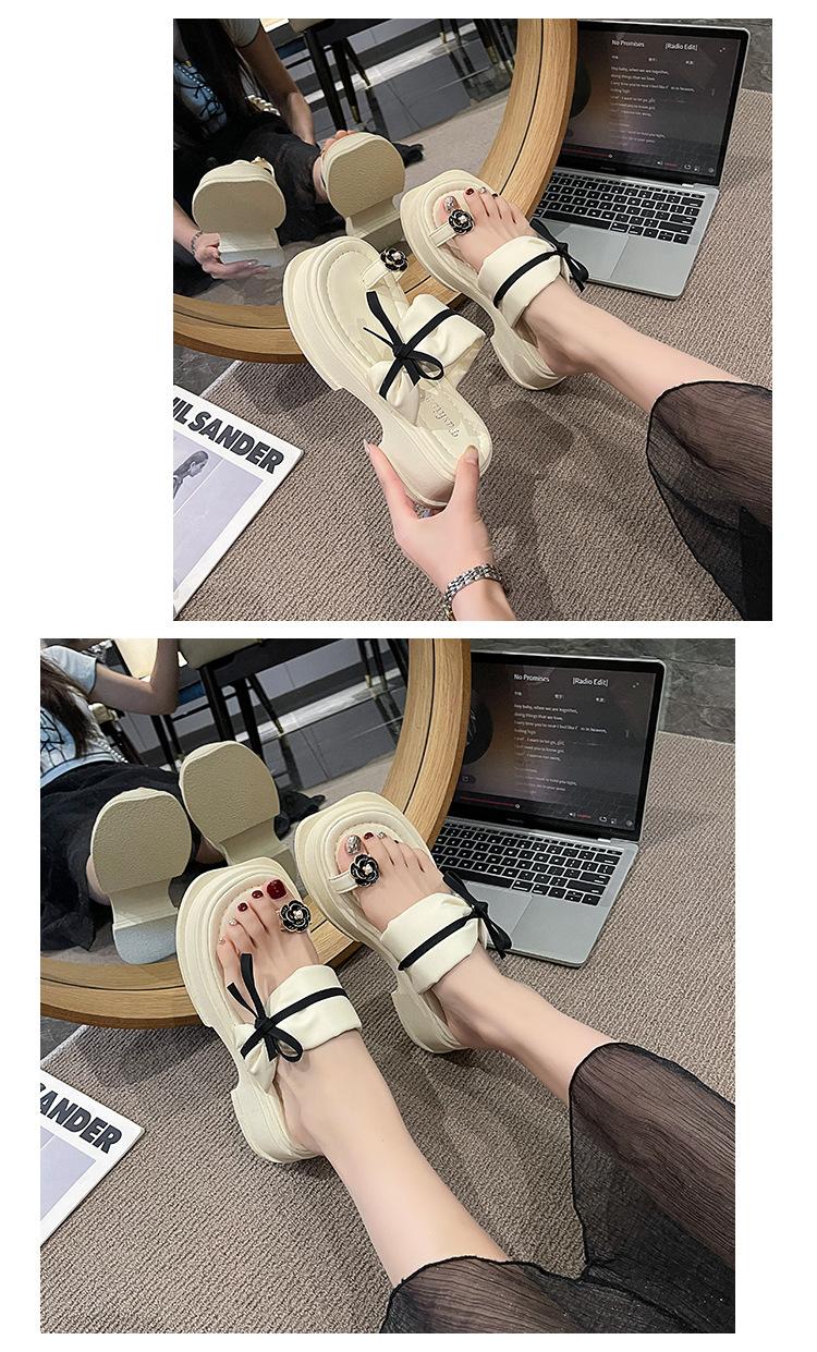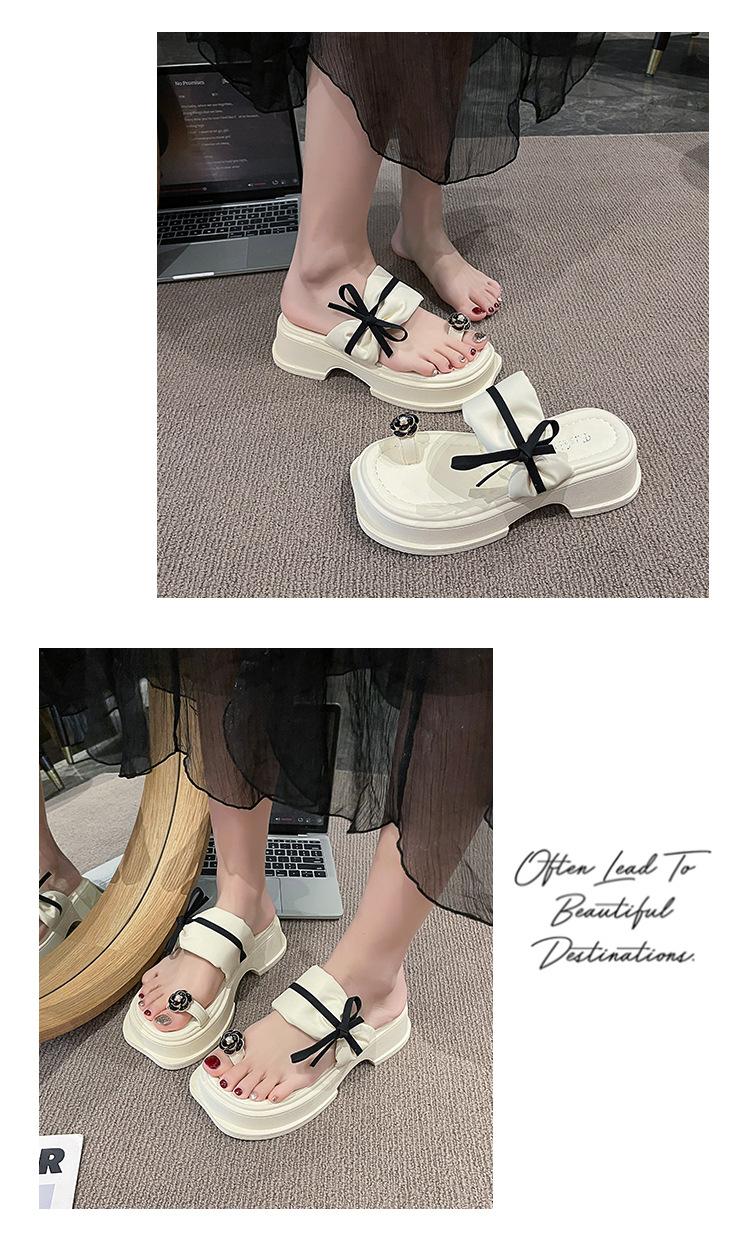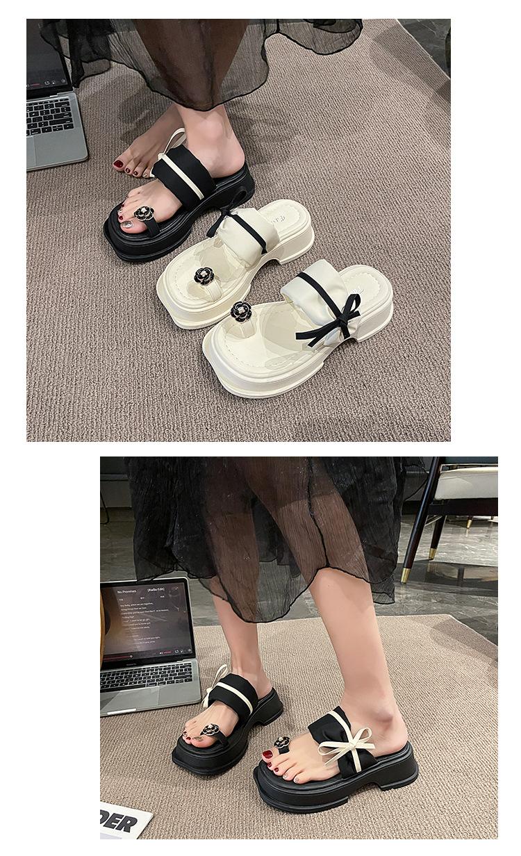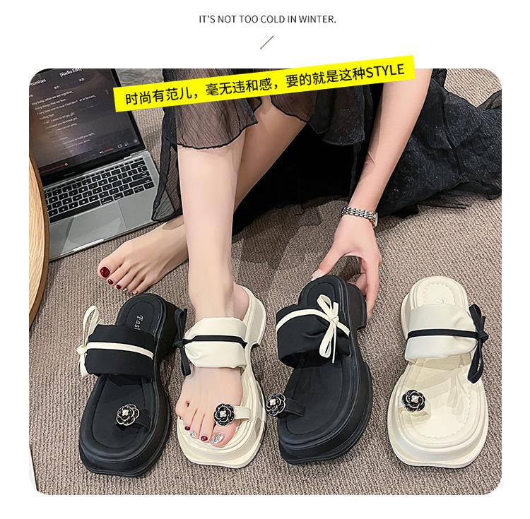 Sandalias de Dedo para Mujer Verano Nuevo 2025 Casual Cómodas Muffin Cómodas Suela Gruesa Pedrería Chanclas de Playa