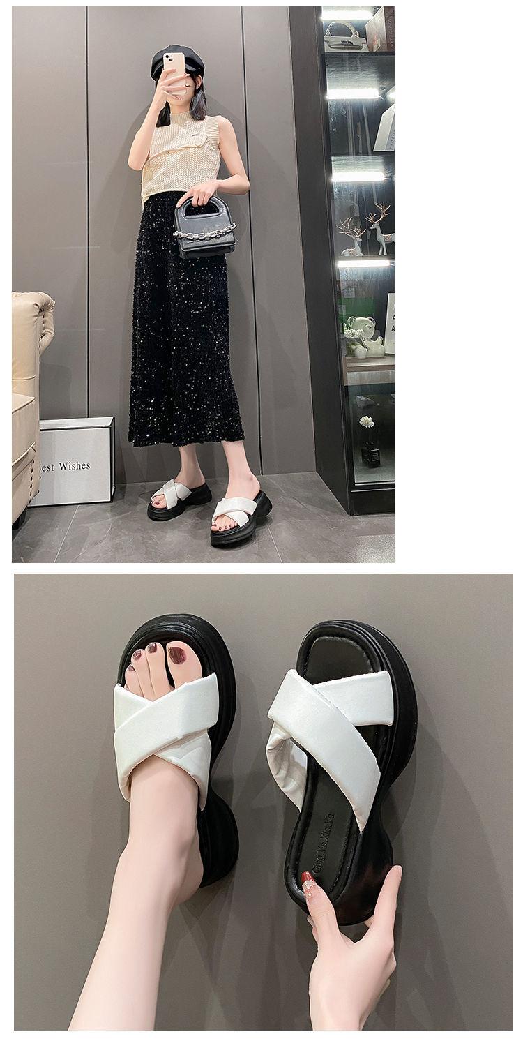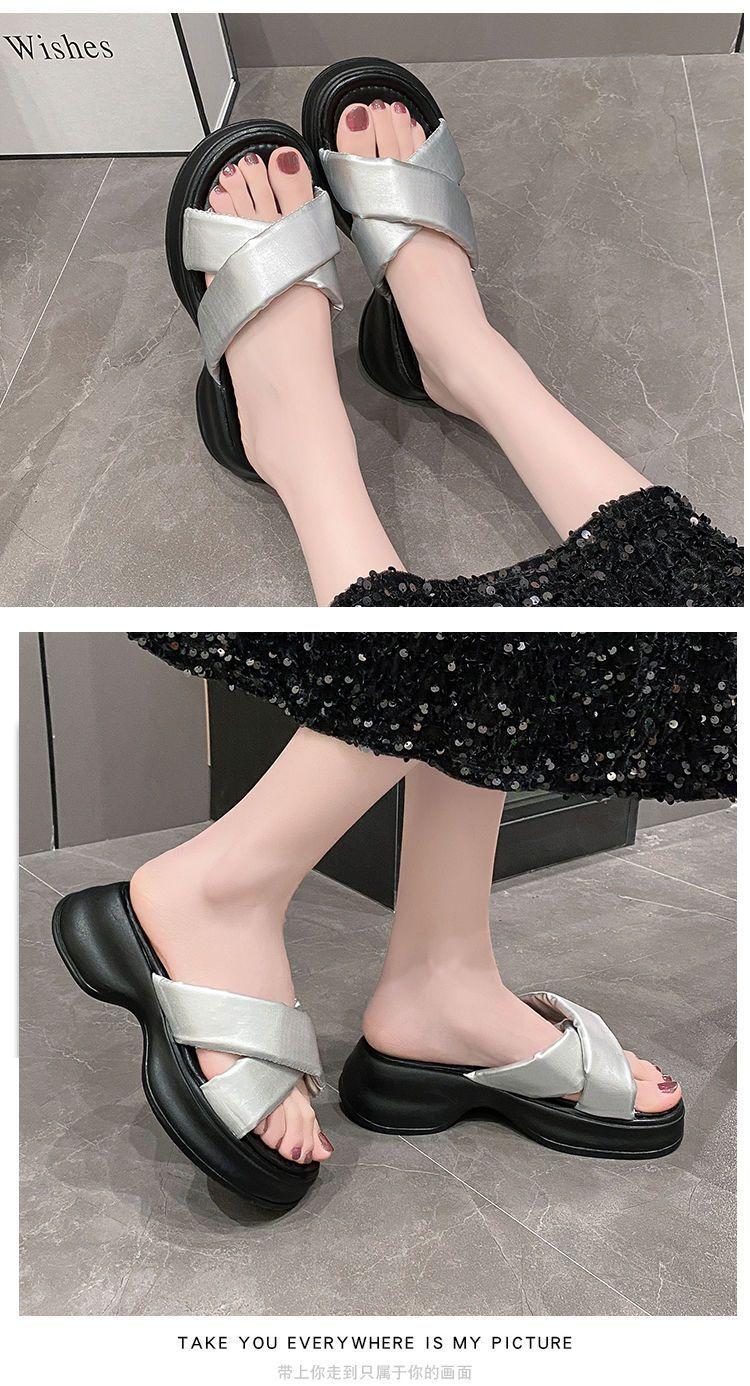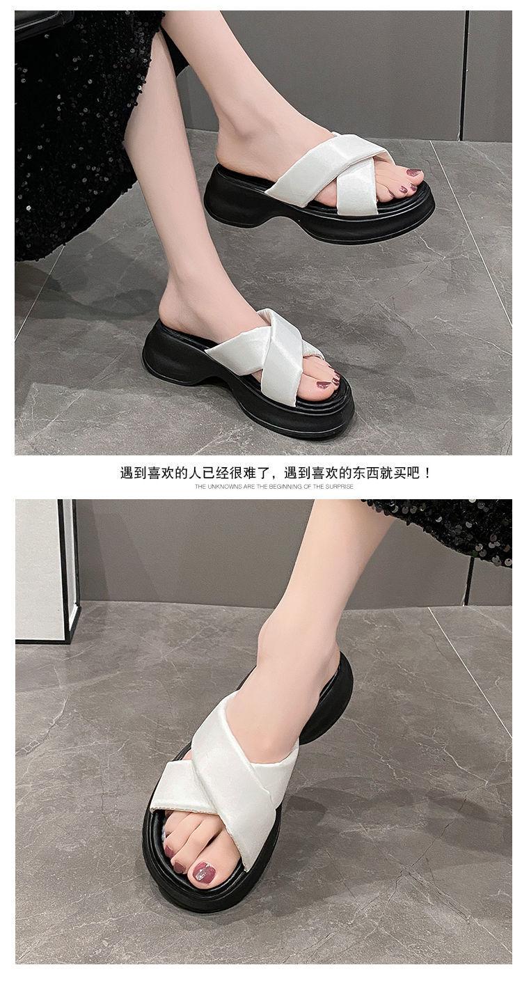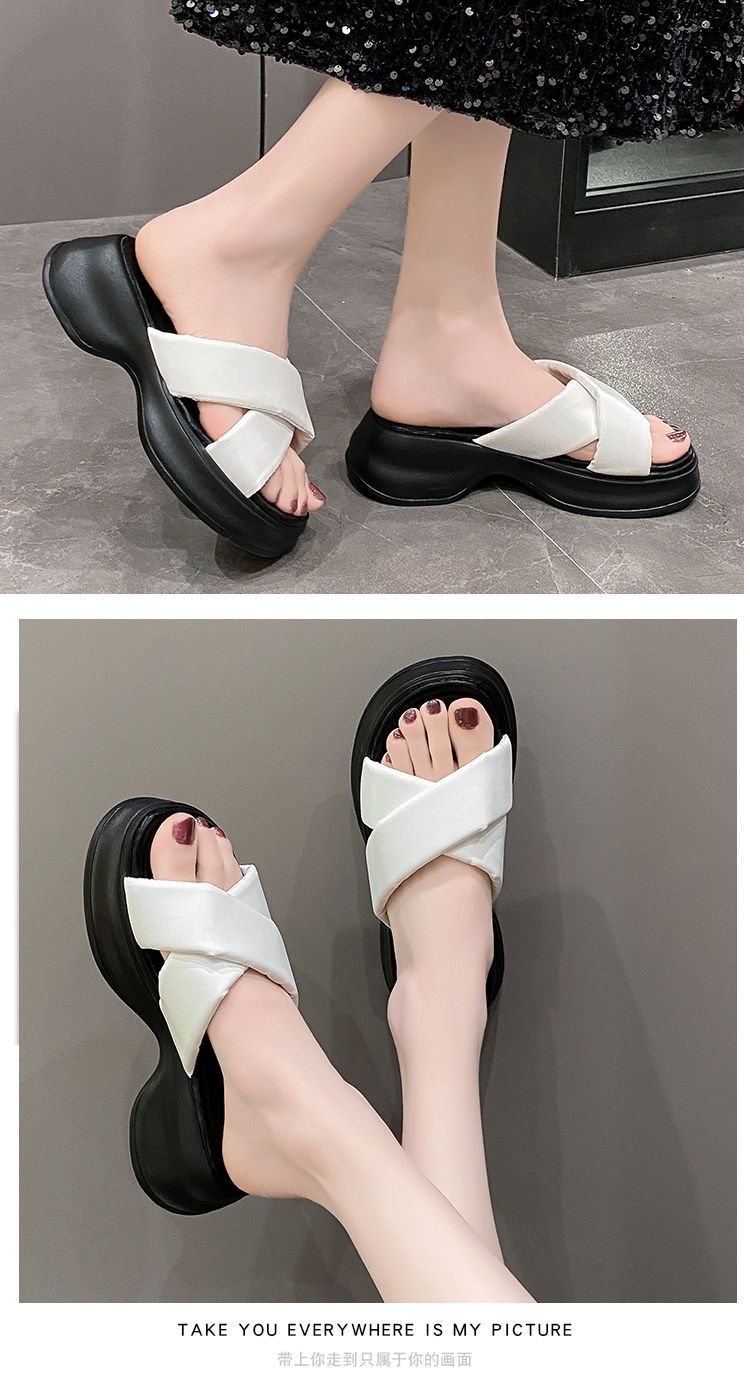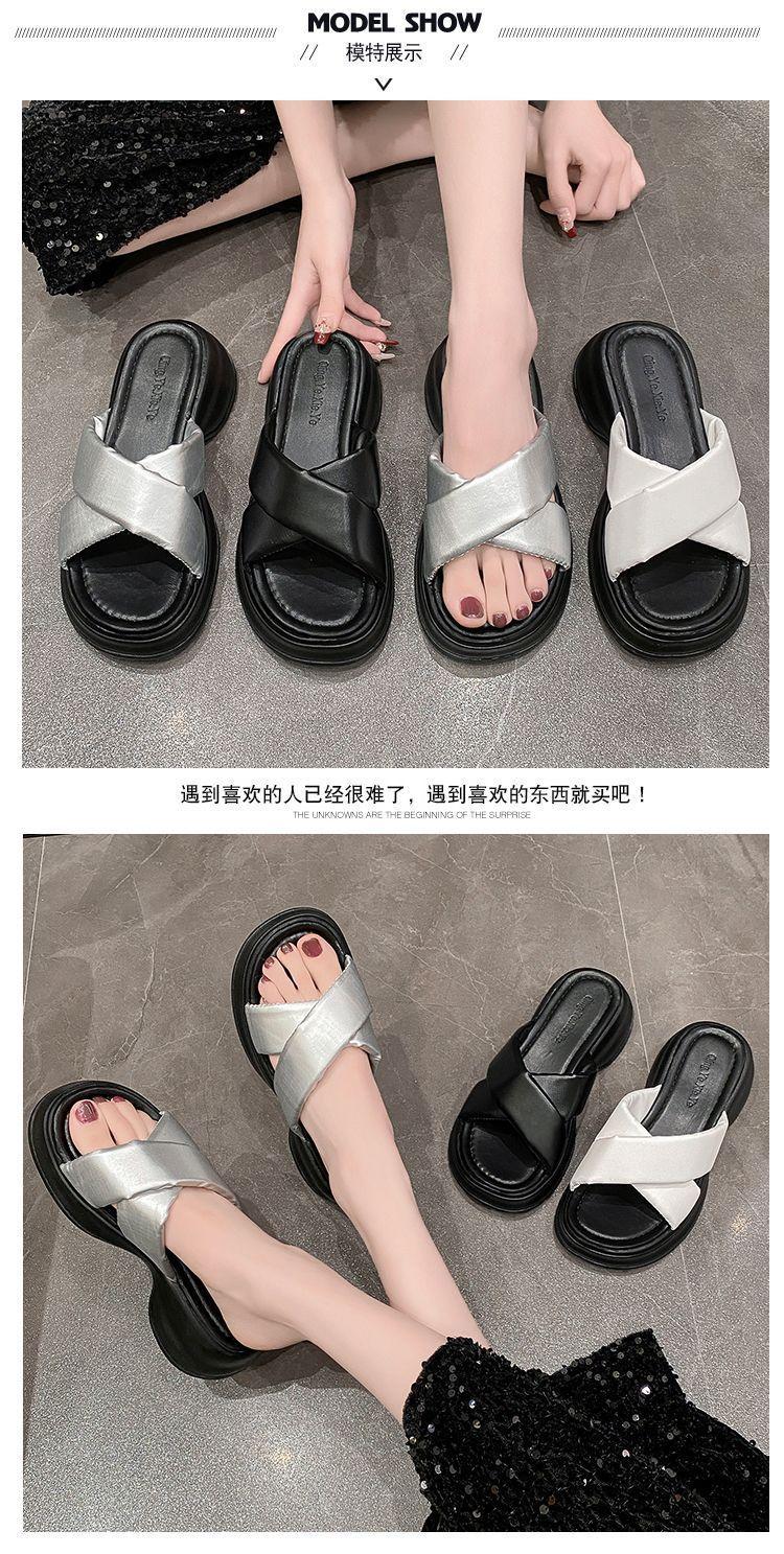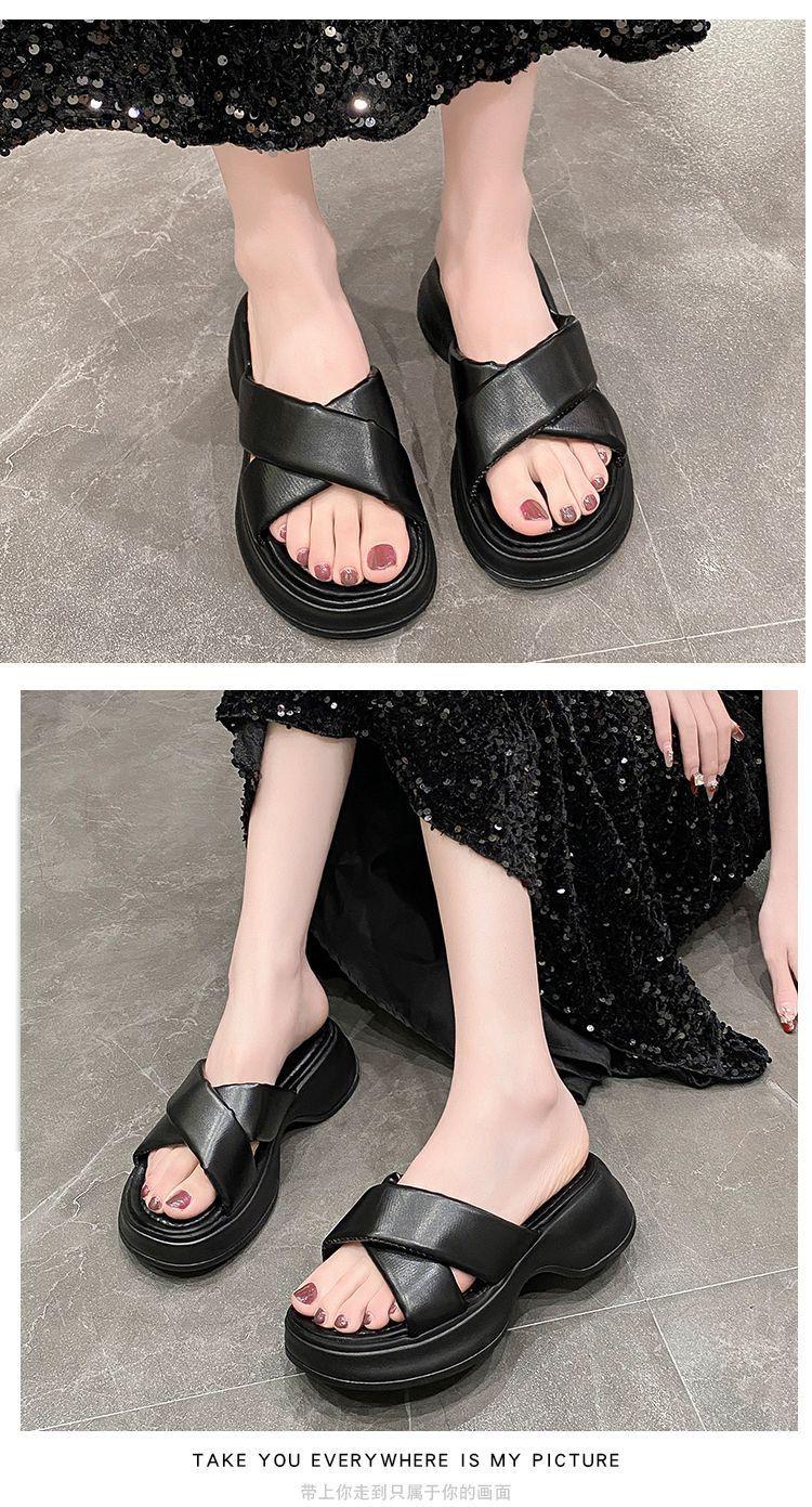 Chanclas Casuales y Versátiles 2024 Verano Nuevo Color Puro Suela Gruesa Impermeable Pequeñas Altas Estilo Estilo Coreano Zapatillas