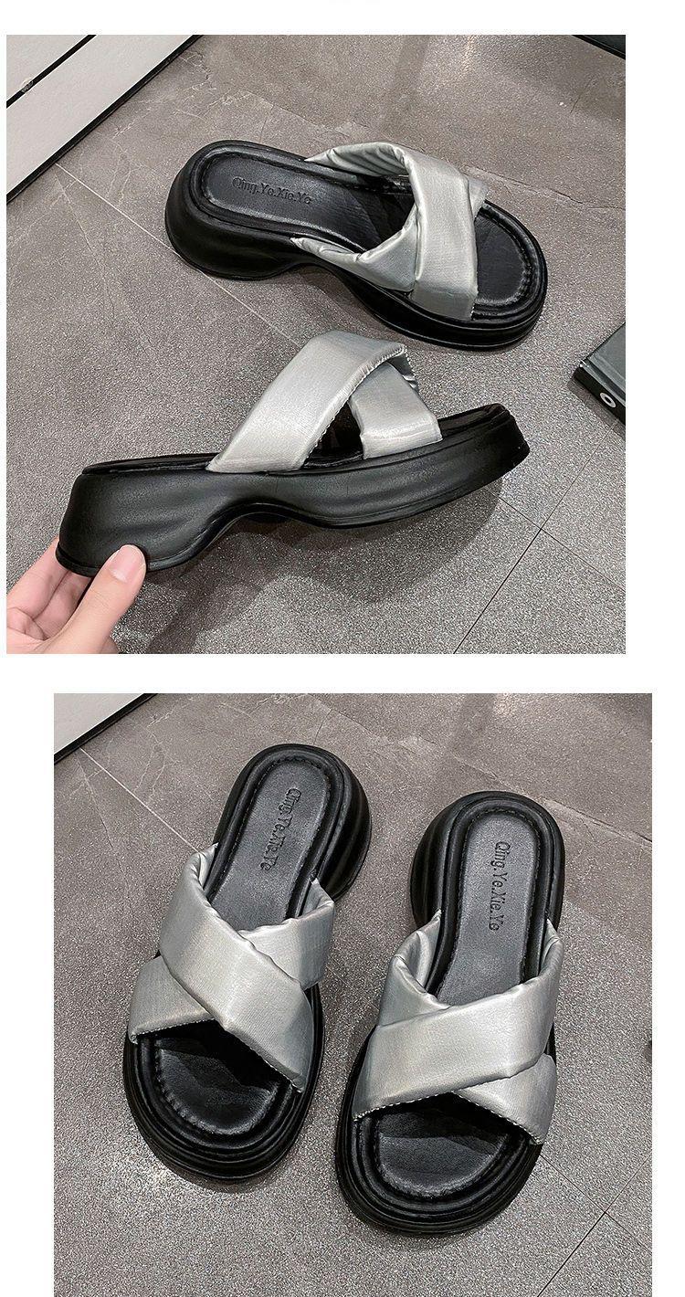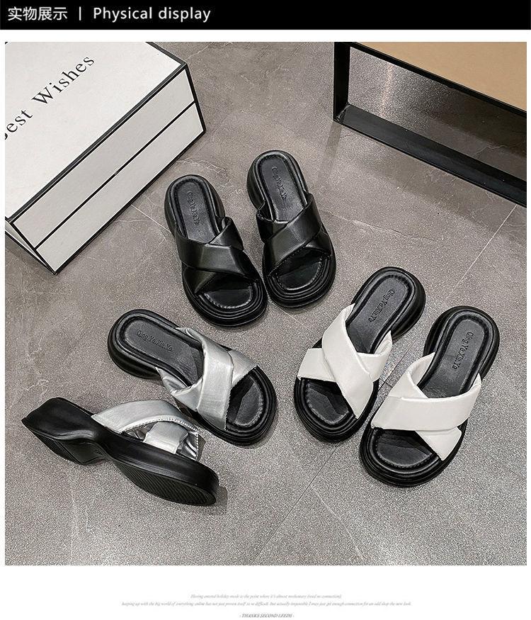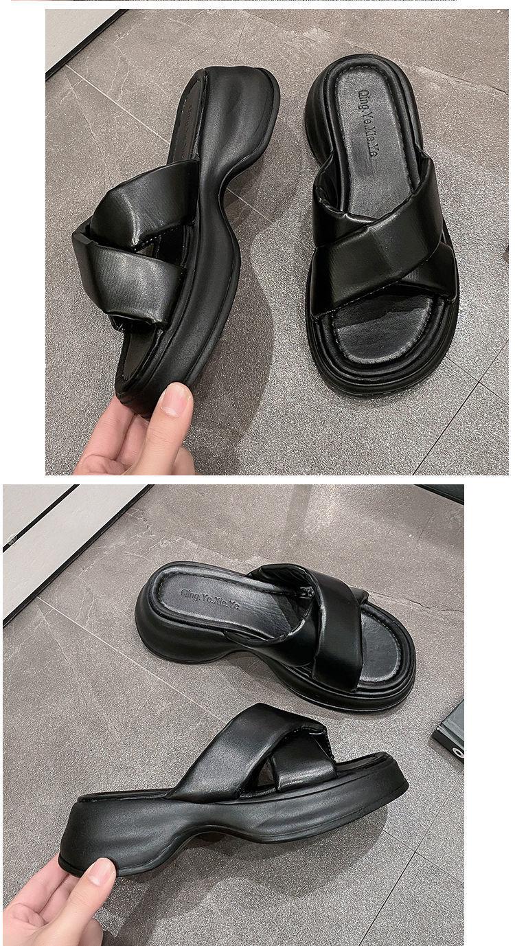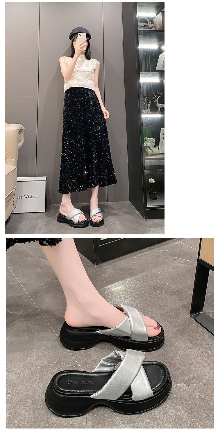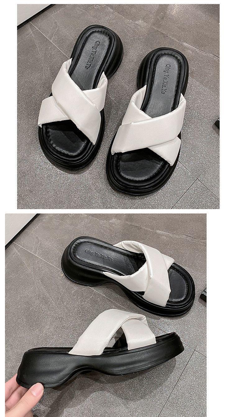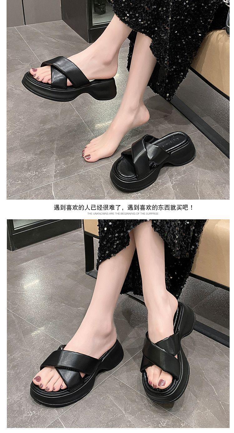 Chanclas Casuales y Versátiles 2024 Verano Nuevo Color Puro Suela Gruesa Impermeable Pequeñas Altas Estilo Estilo Coreano Zapatillas