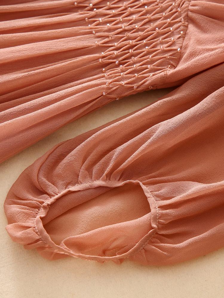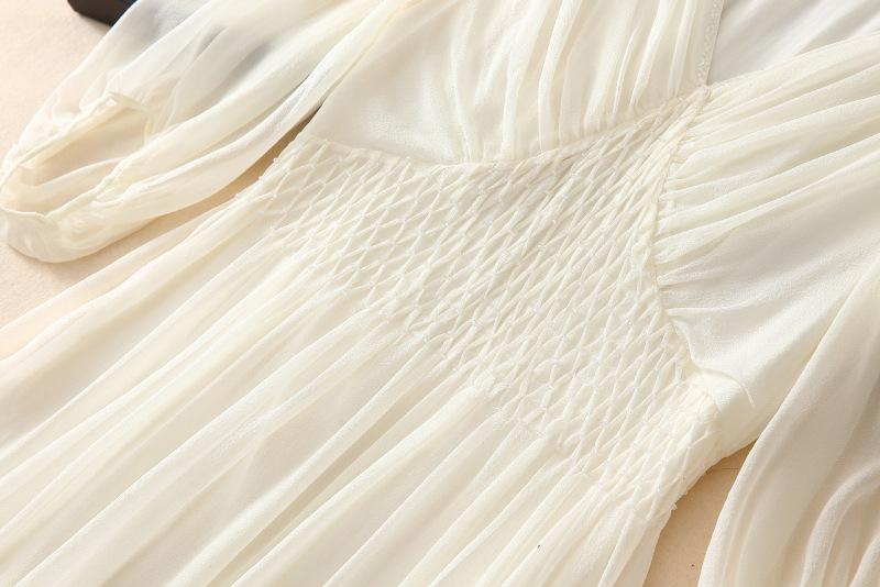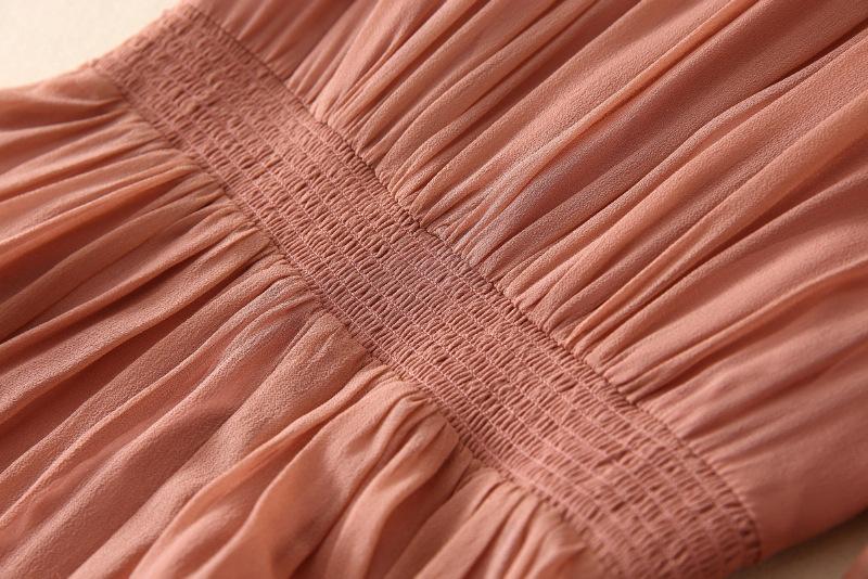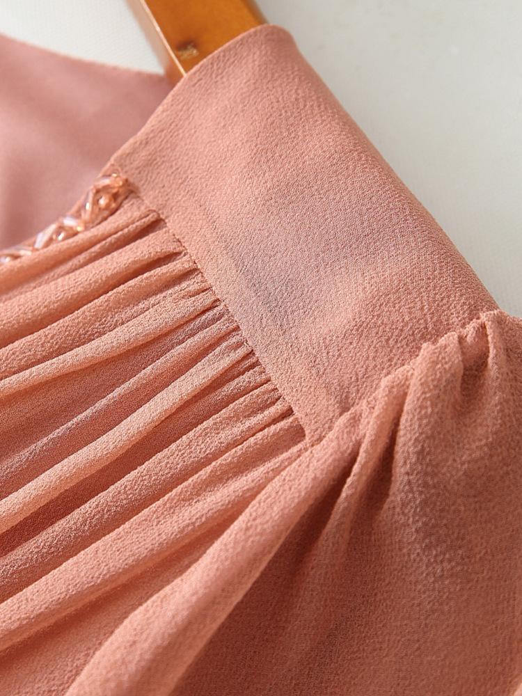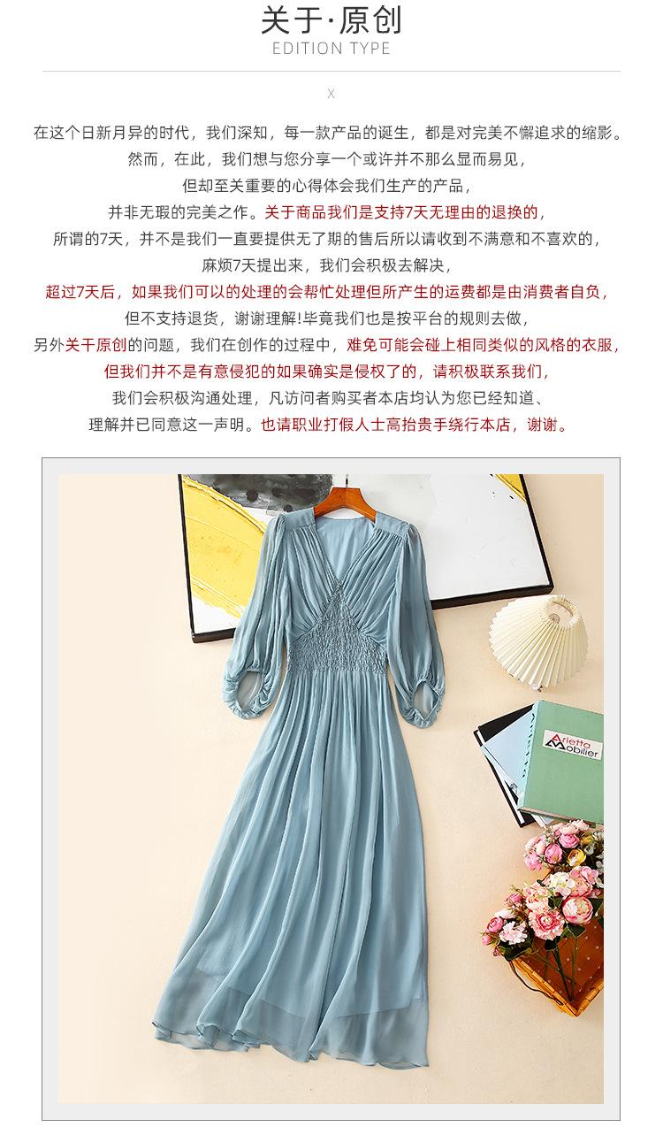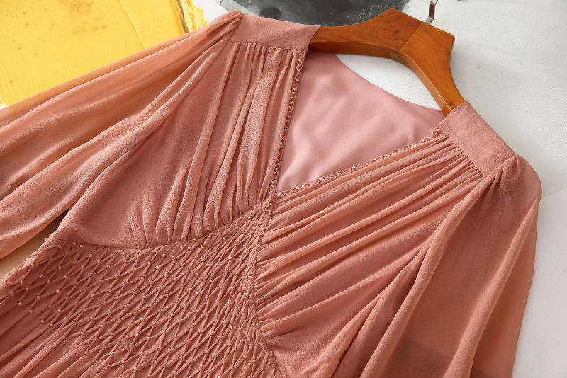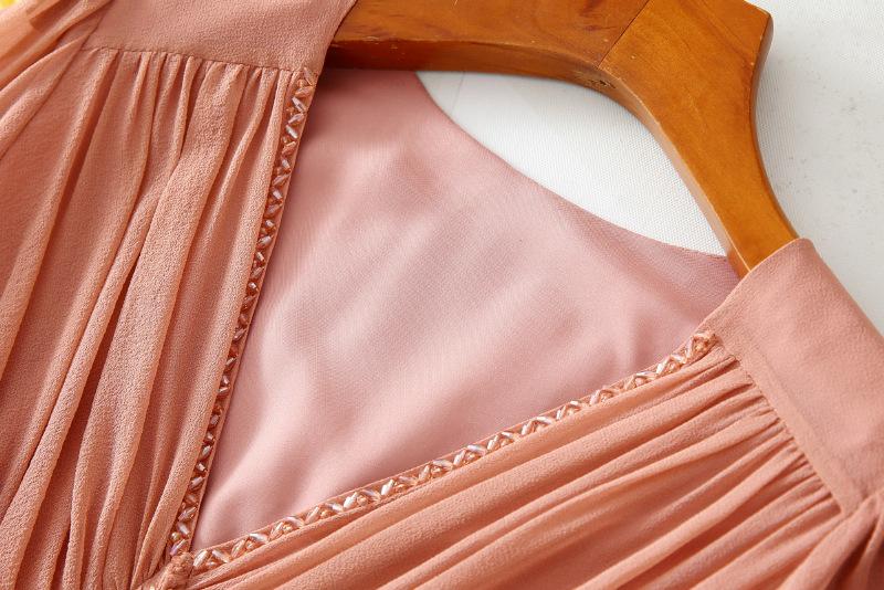 2025 Nuevo Estilo de Verano Seda Moda Elegante Look Adelgazante Versátil Cuello en V con Cuentas Plisado Look Adelgazante Vestido de Seda de Morera