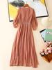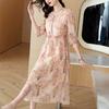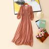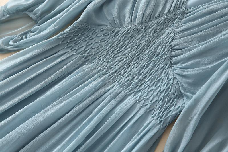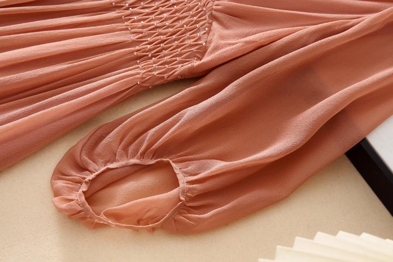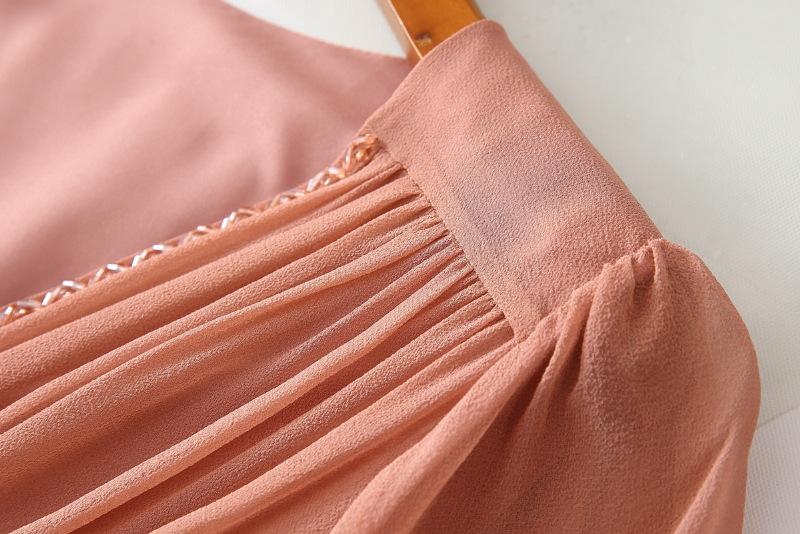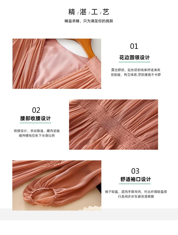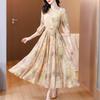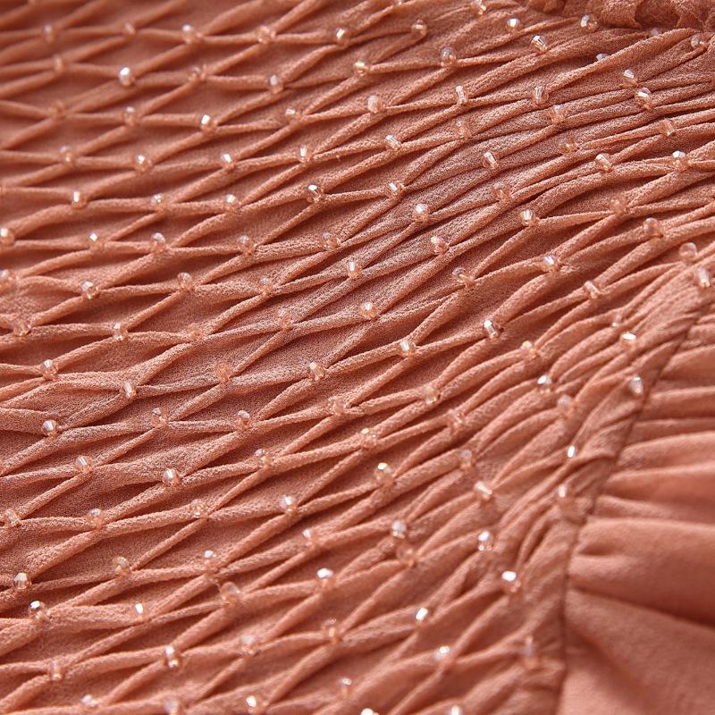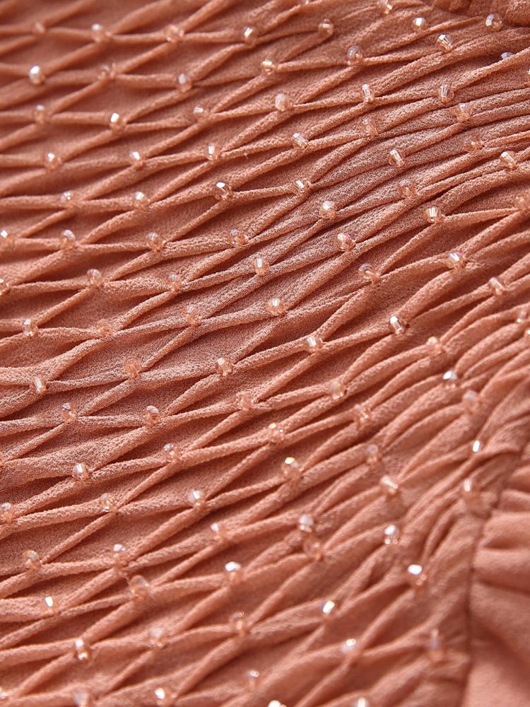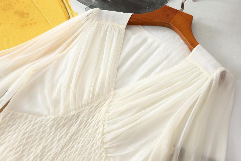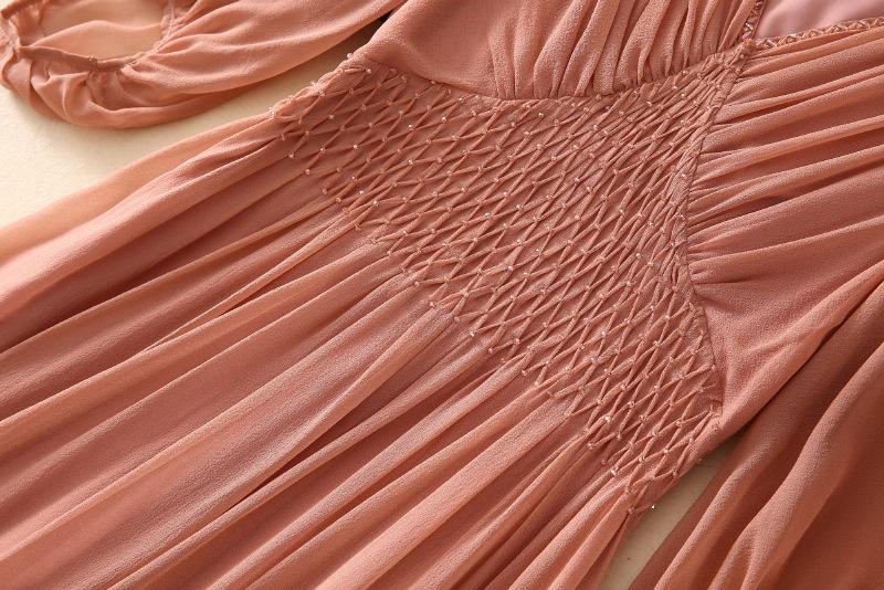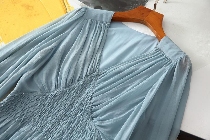 2025 Nuevo Estilo de Verano Seda Moda Elegante Look Adelgazante Versátil Cuello en V con Cuentas Plisado Look Adelgazante Vestido de Seda de Morera