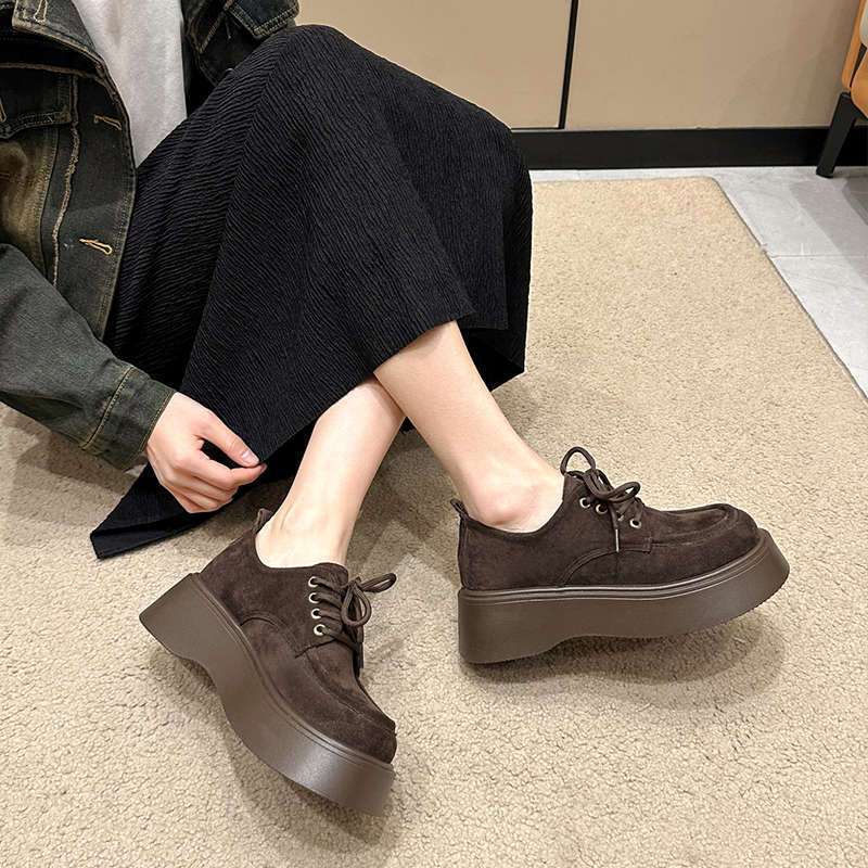 Plataforma Popular Francesa Zapatos Individuales de Boca Profunda con Suela Gruesa para Mujer Primavera 2025 Nuevo Retro Aumento de Altura Mocasines Mary Jane