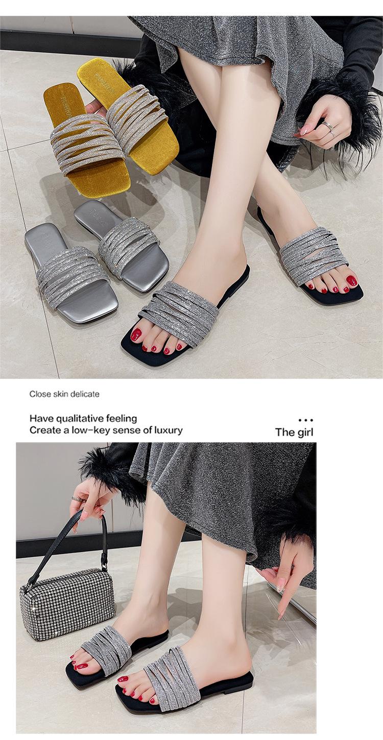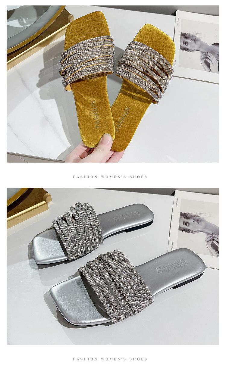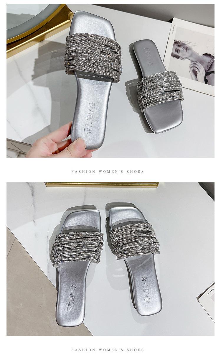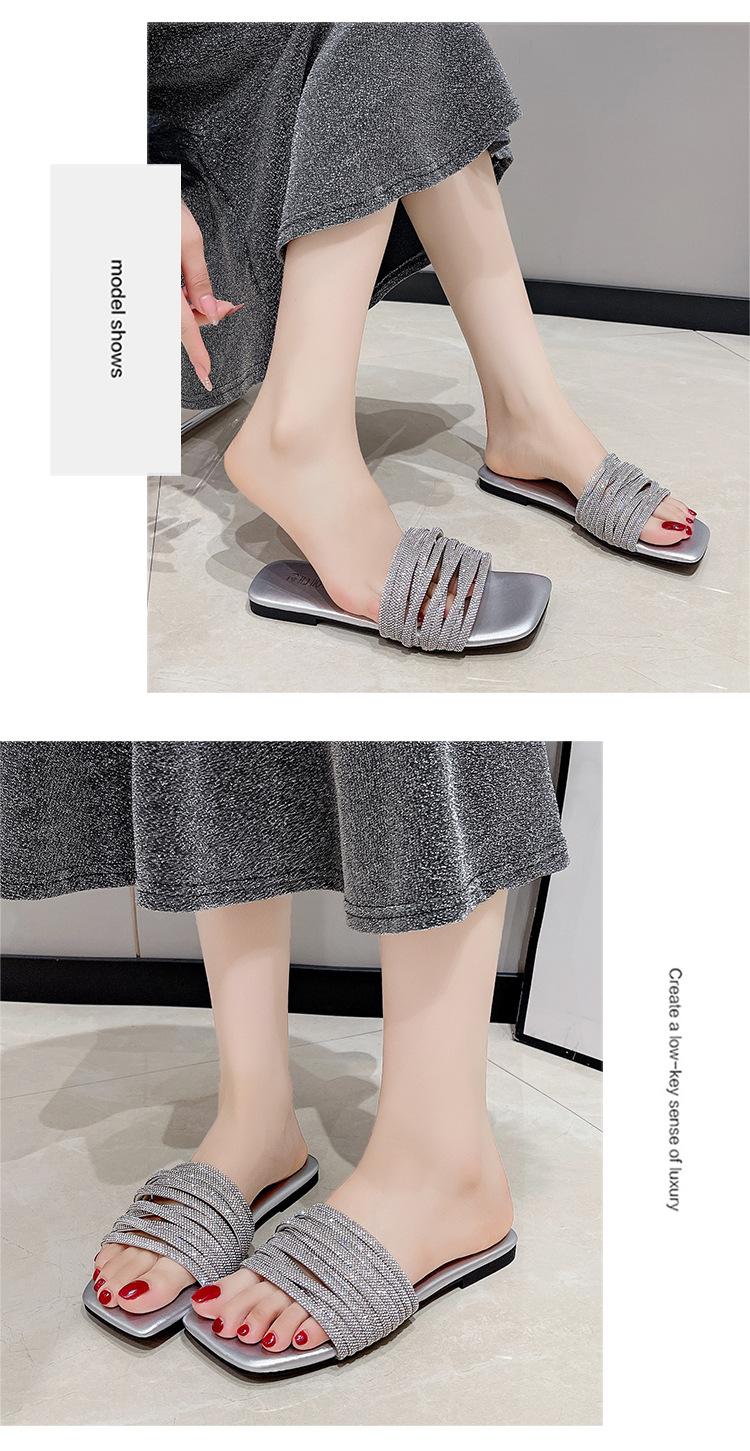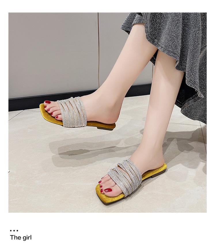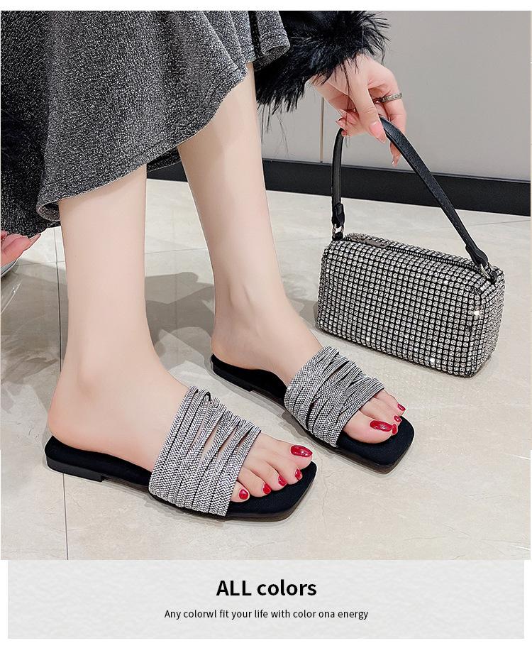Zapatillas planas de pedrería estilo hada para mujer, Sandalias de punta cuadrada y punta abierta de nueva moda para el verano de 2025