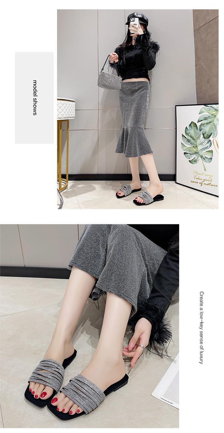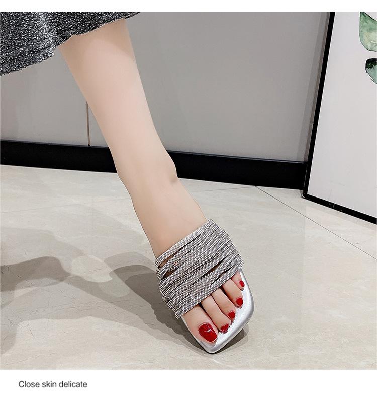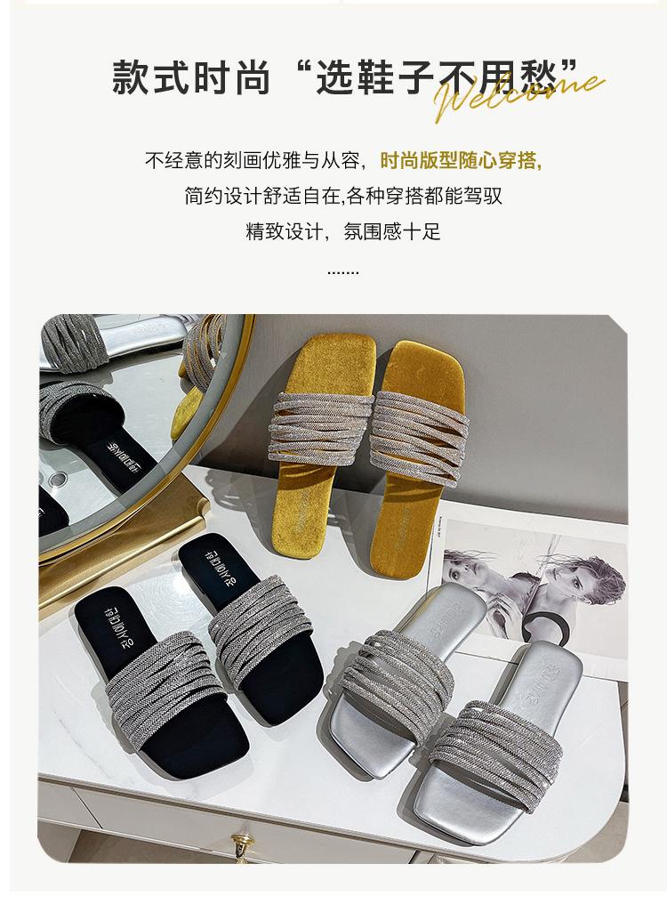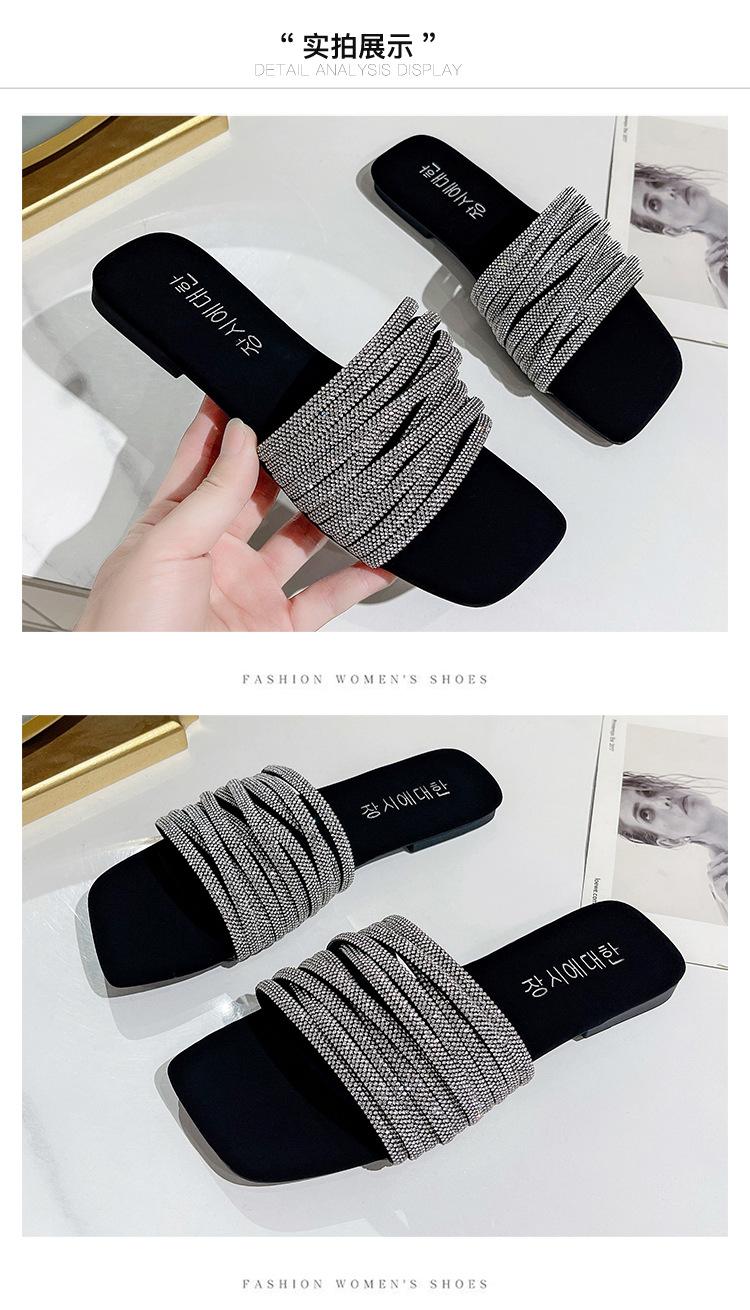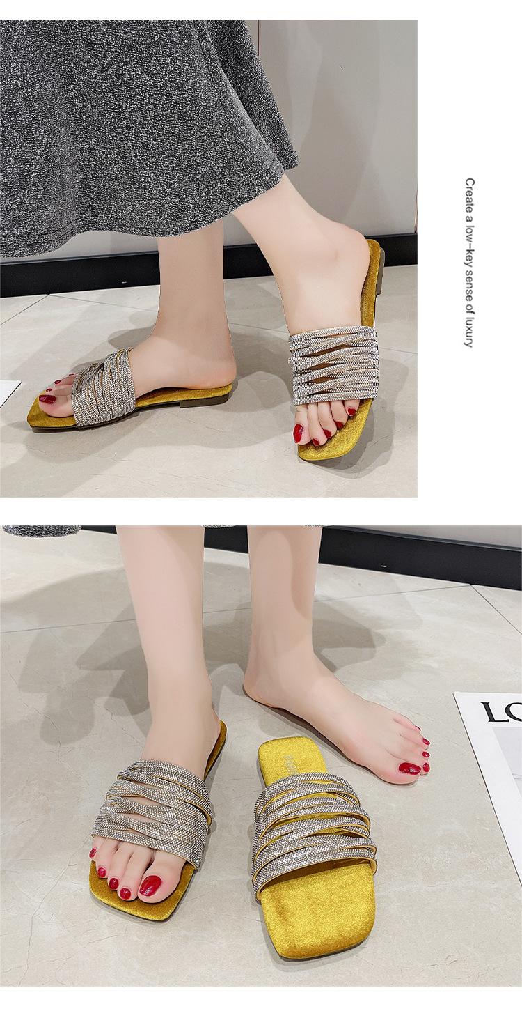 Zapatillas planas de pedrería estilo hada para mujer, Sandalias de punta cuadrada y punta abierta de nueva moda para el verano de 2025