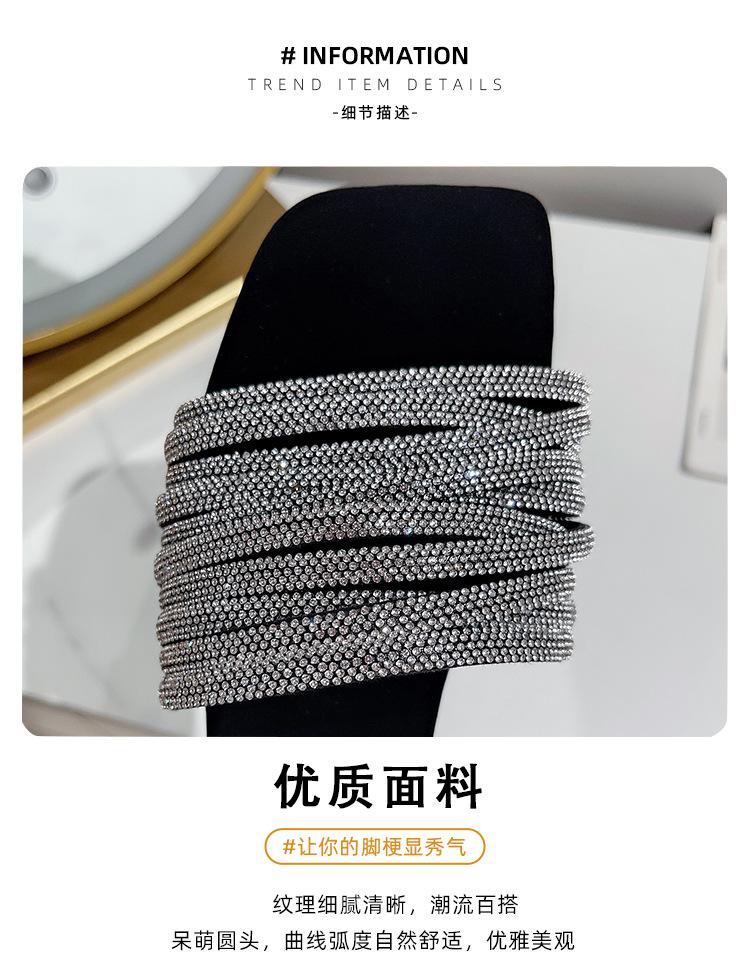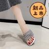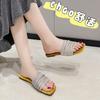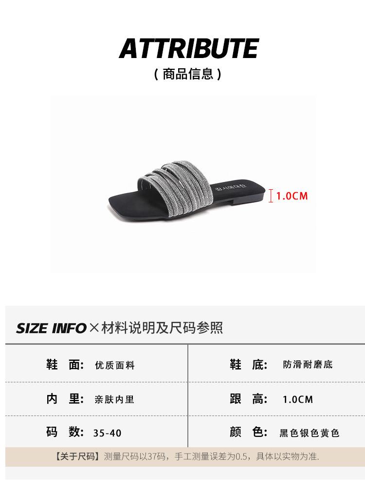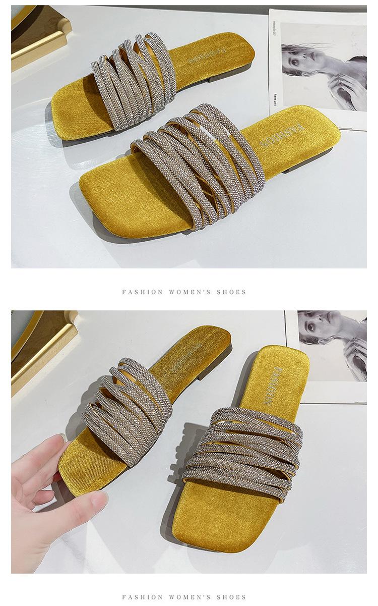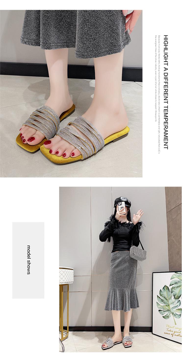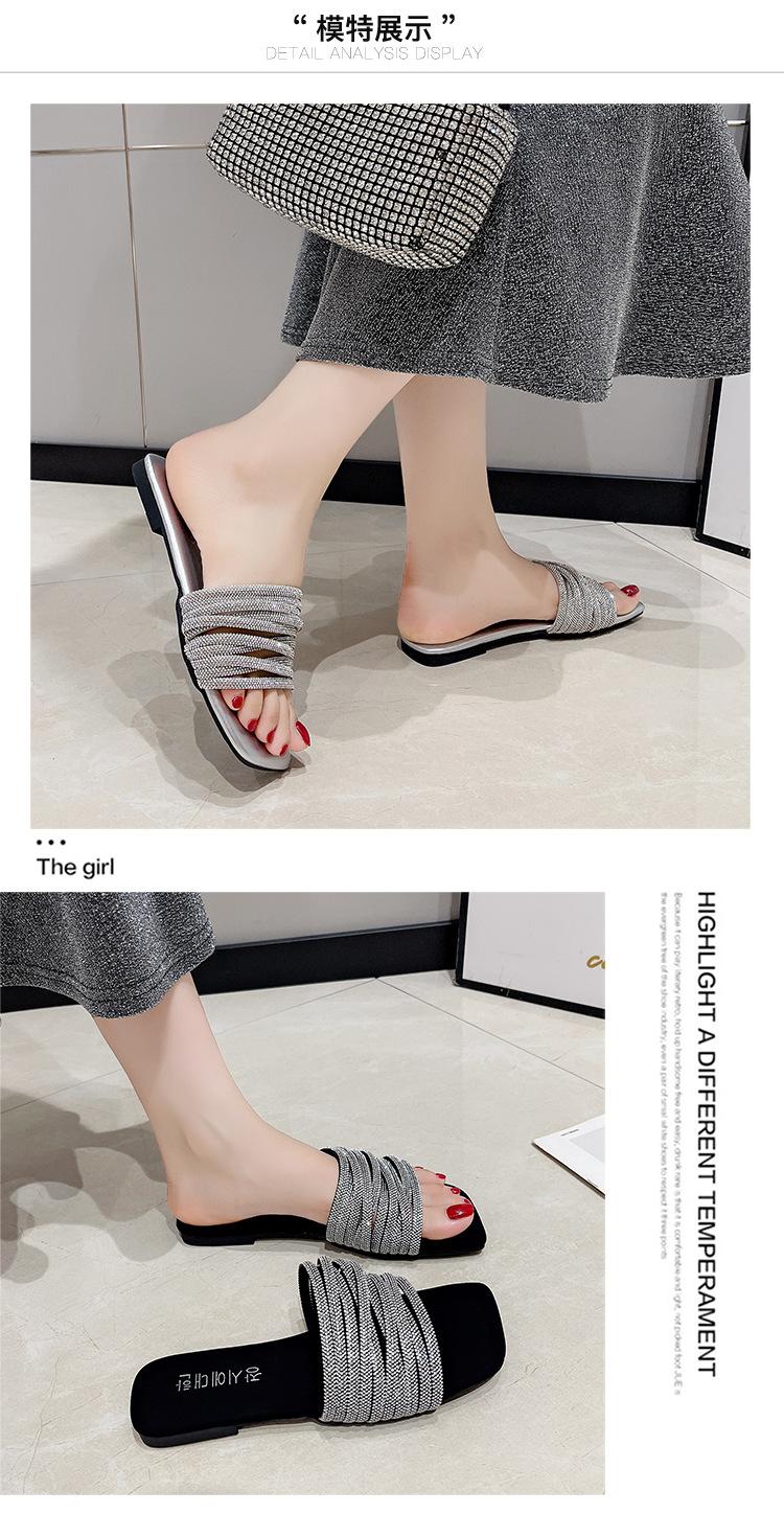 Zapatillas planas de pedrería estilo hada para mujer, Sandalias de punta cuadrada y punta abierta de nueva moda para el verano de 2025