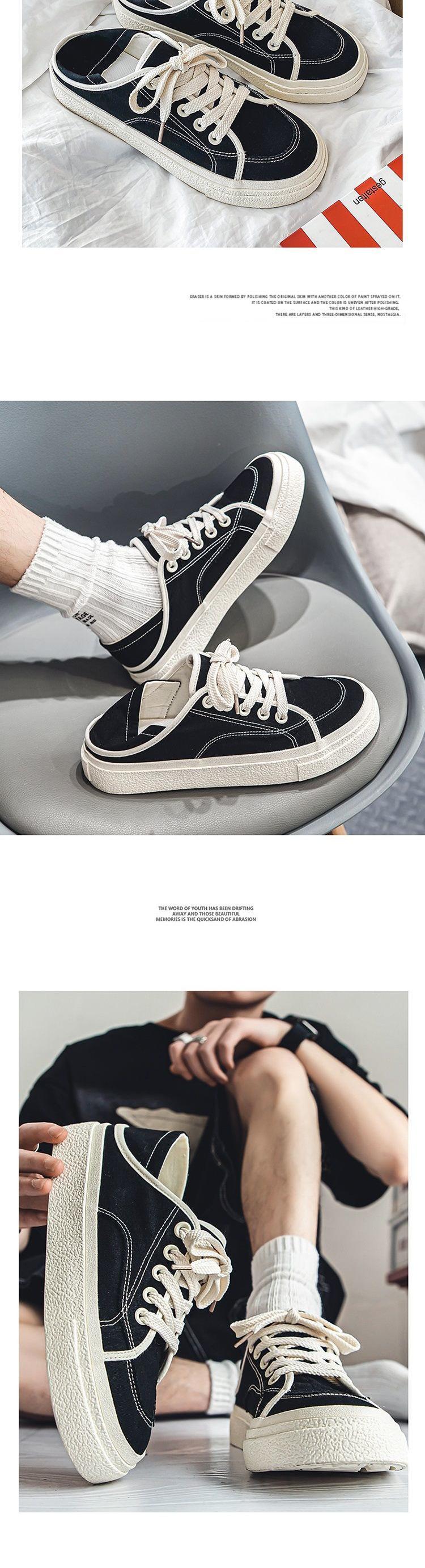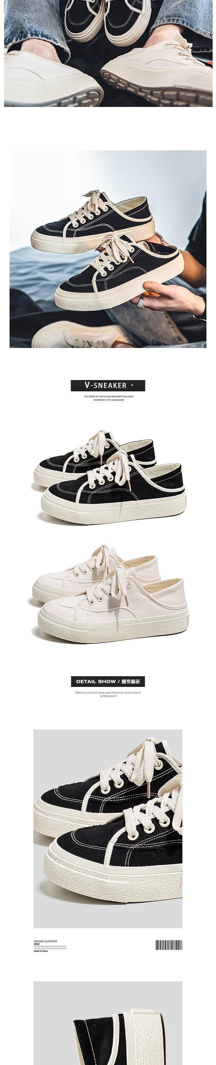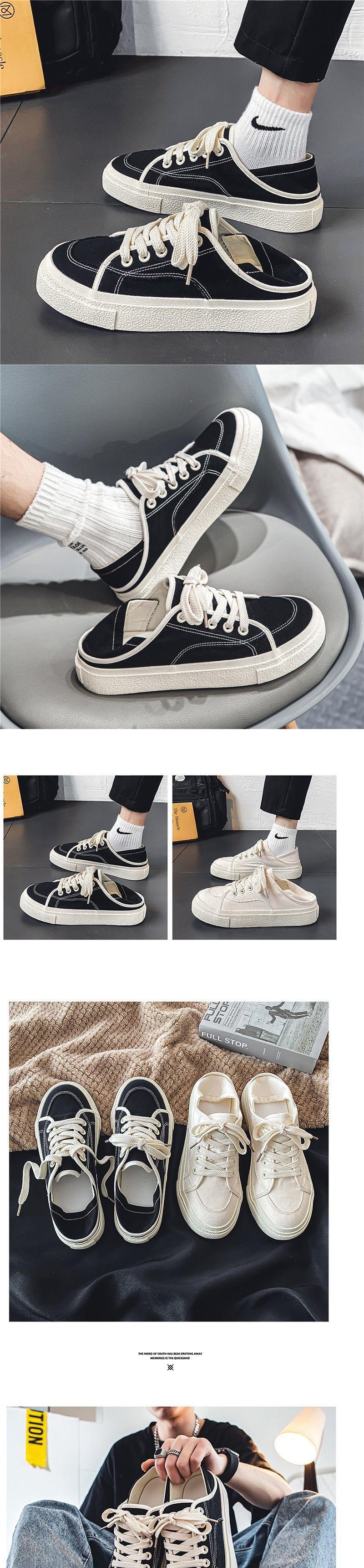 Zapatos de Lona para Hombre 2025 Nuevas Pantuflas Transpirables de Verano Zapatos de Tela Perezosos Medio Tacón Sin Talón Zapatillas Casuales