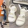 Sandalias de Suela Gruesa para Mujer 2024 Verano Nuevo Estilo Romanas de Una Tira Zapatos de Playa para Exterior Sandalias Casuales Estilo Coreano