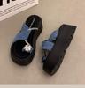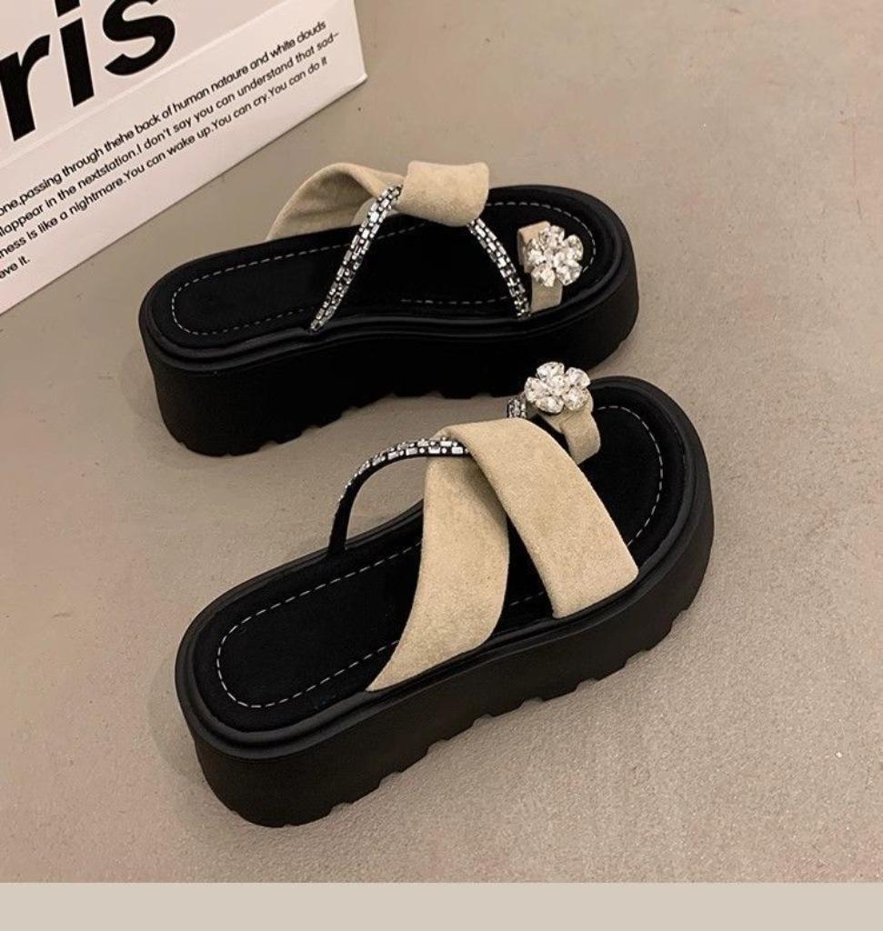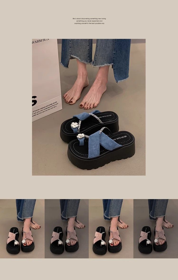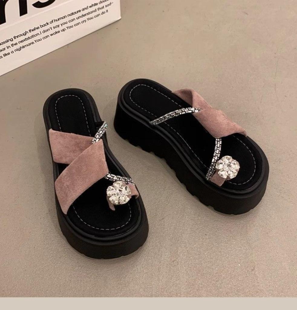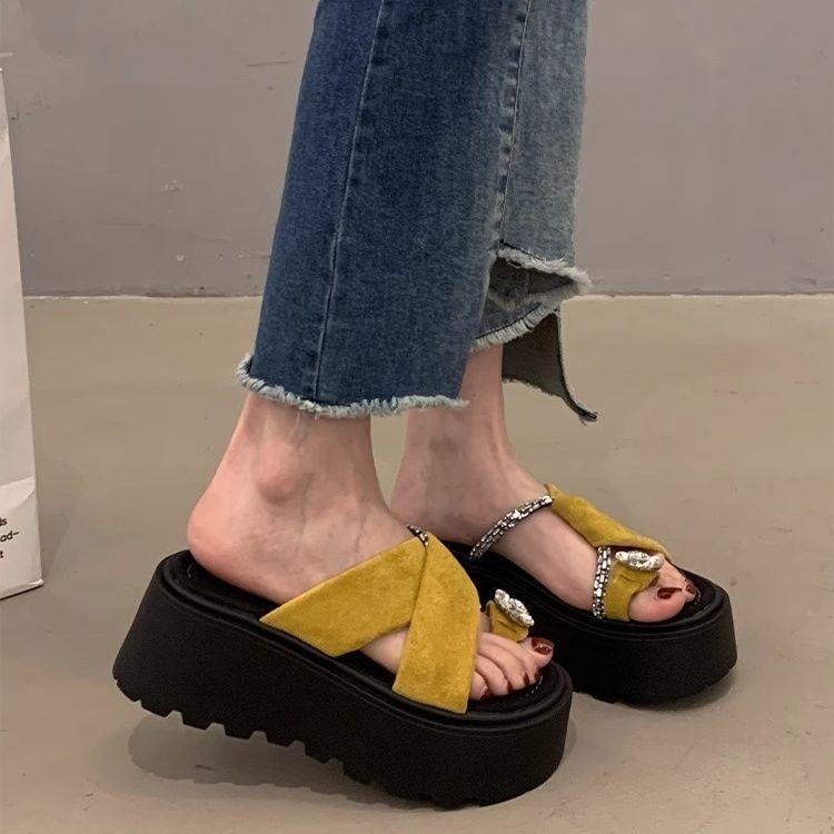 Pantuflas de punta con pedrería y suela gruesa para mujer, verano 2025, nueva altura, combinan con todo, sandalias para dama al por mayor