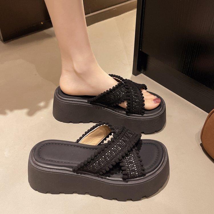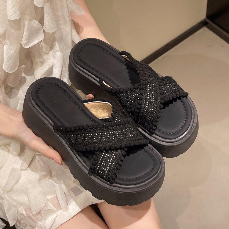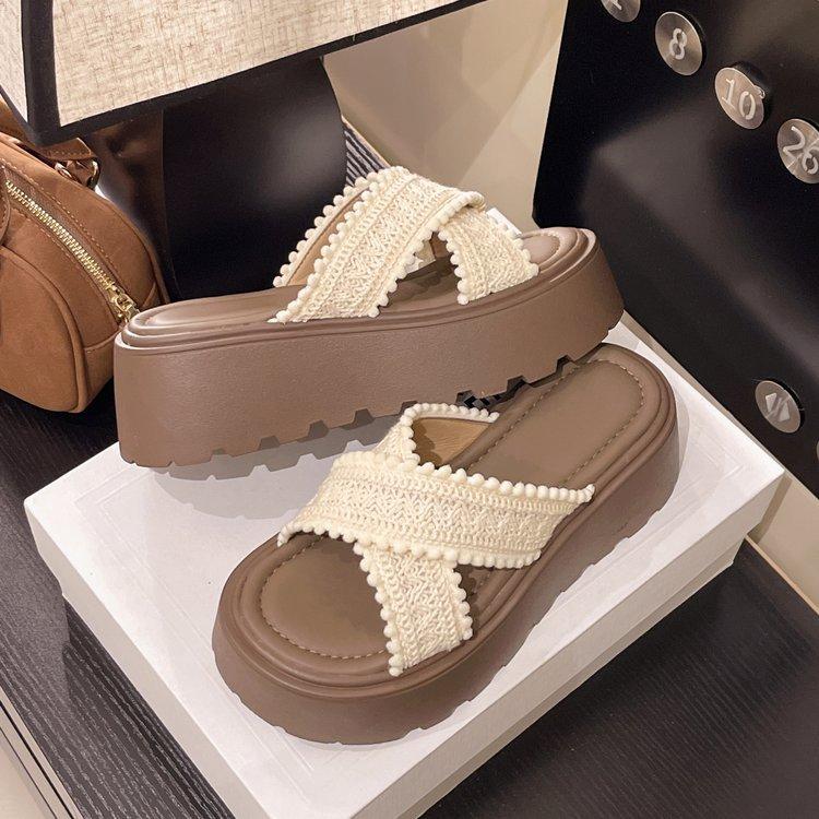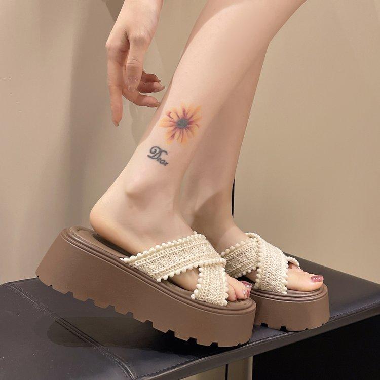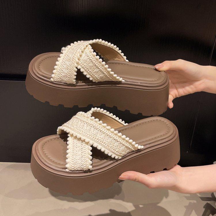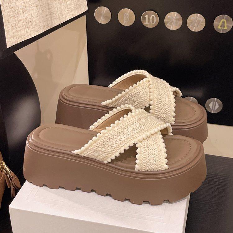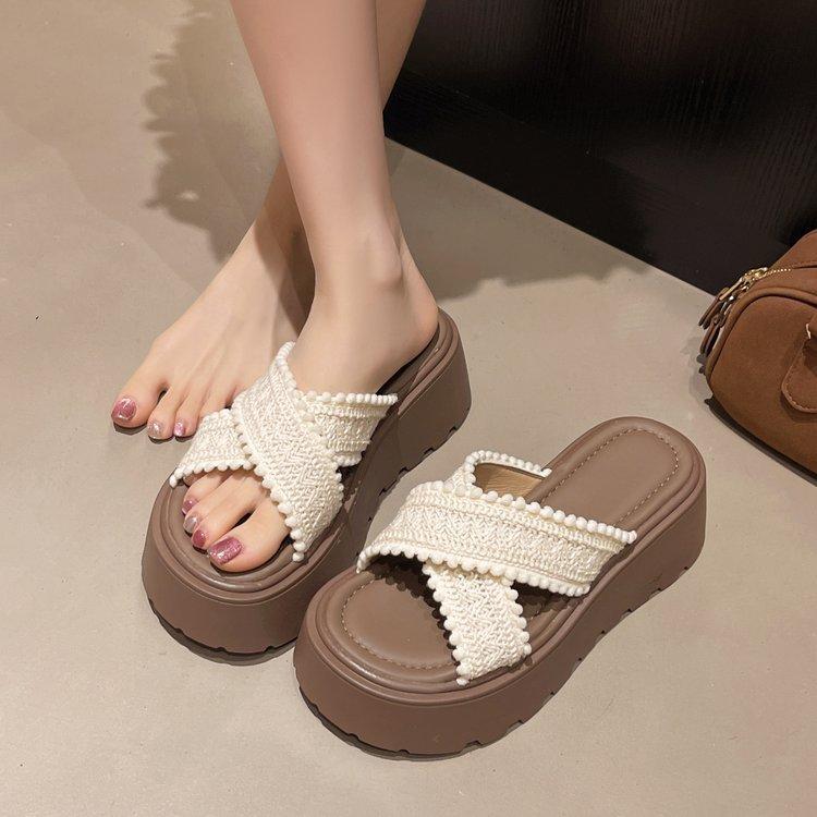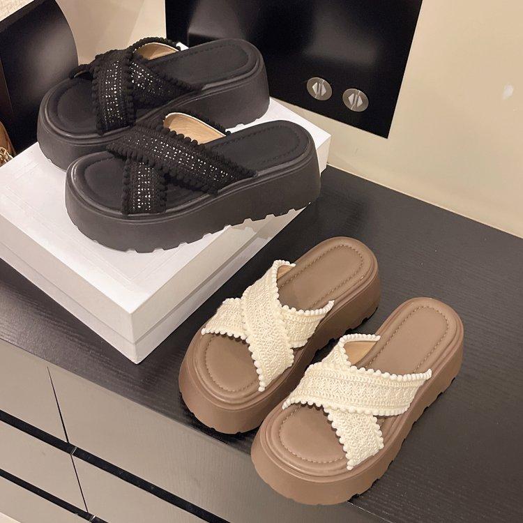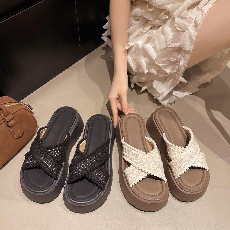 Sandalias de Plataforma Cómodas de Moda para Exterior para Mujer Verano 2024 Nuevas Zapatillas de Playa Versátiles Slip-On