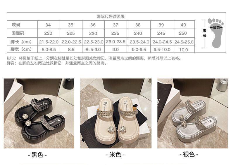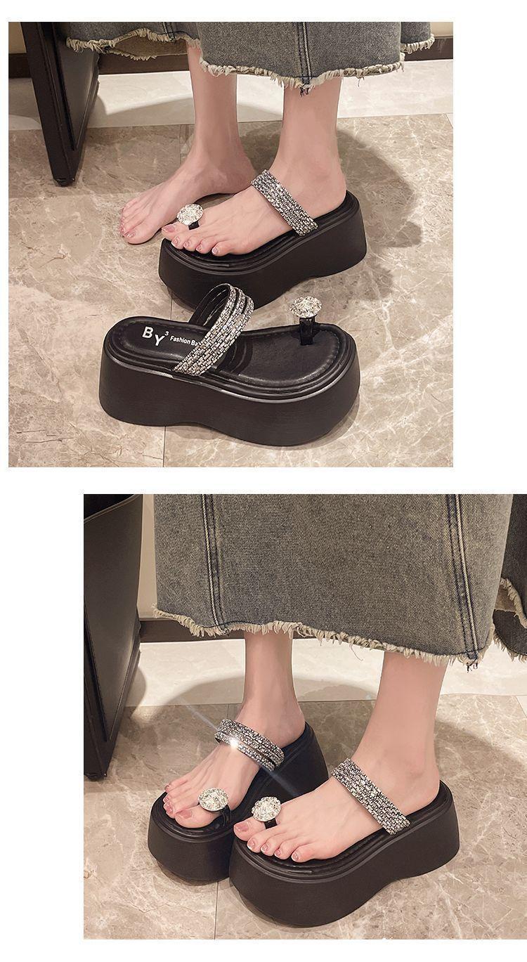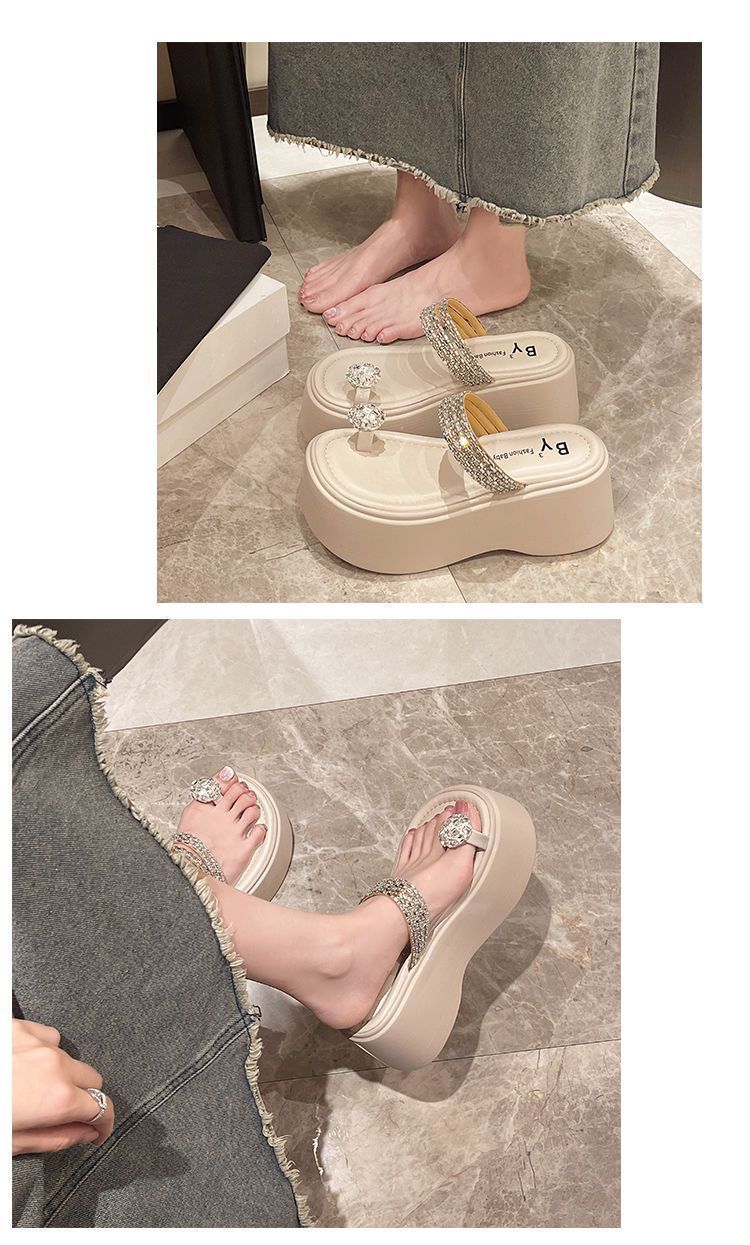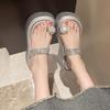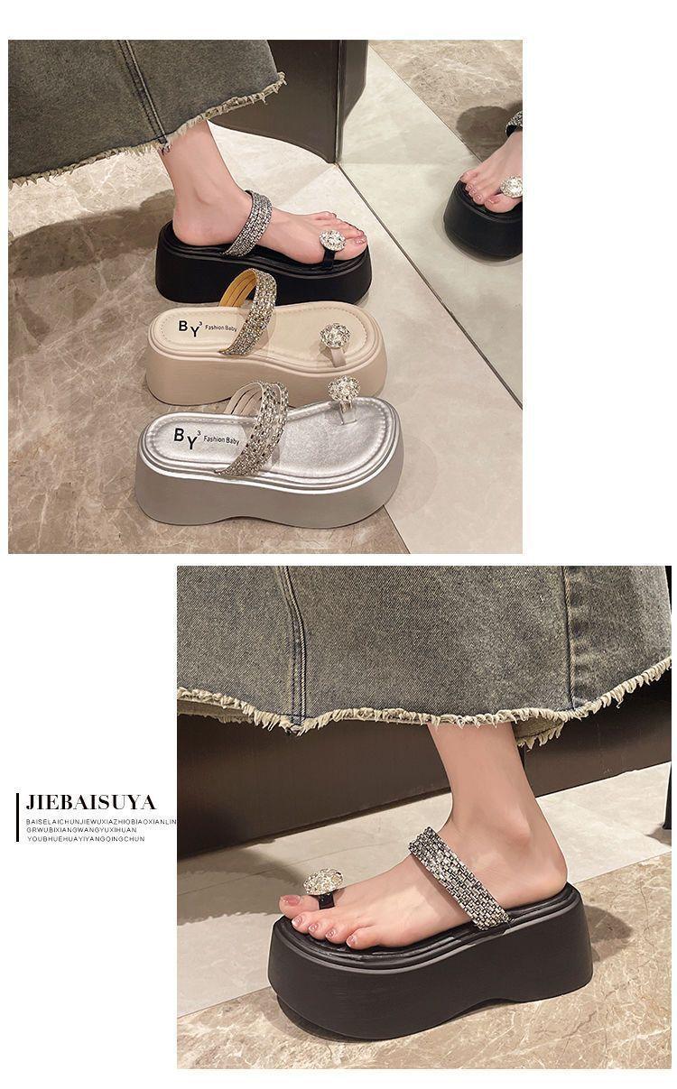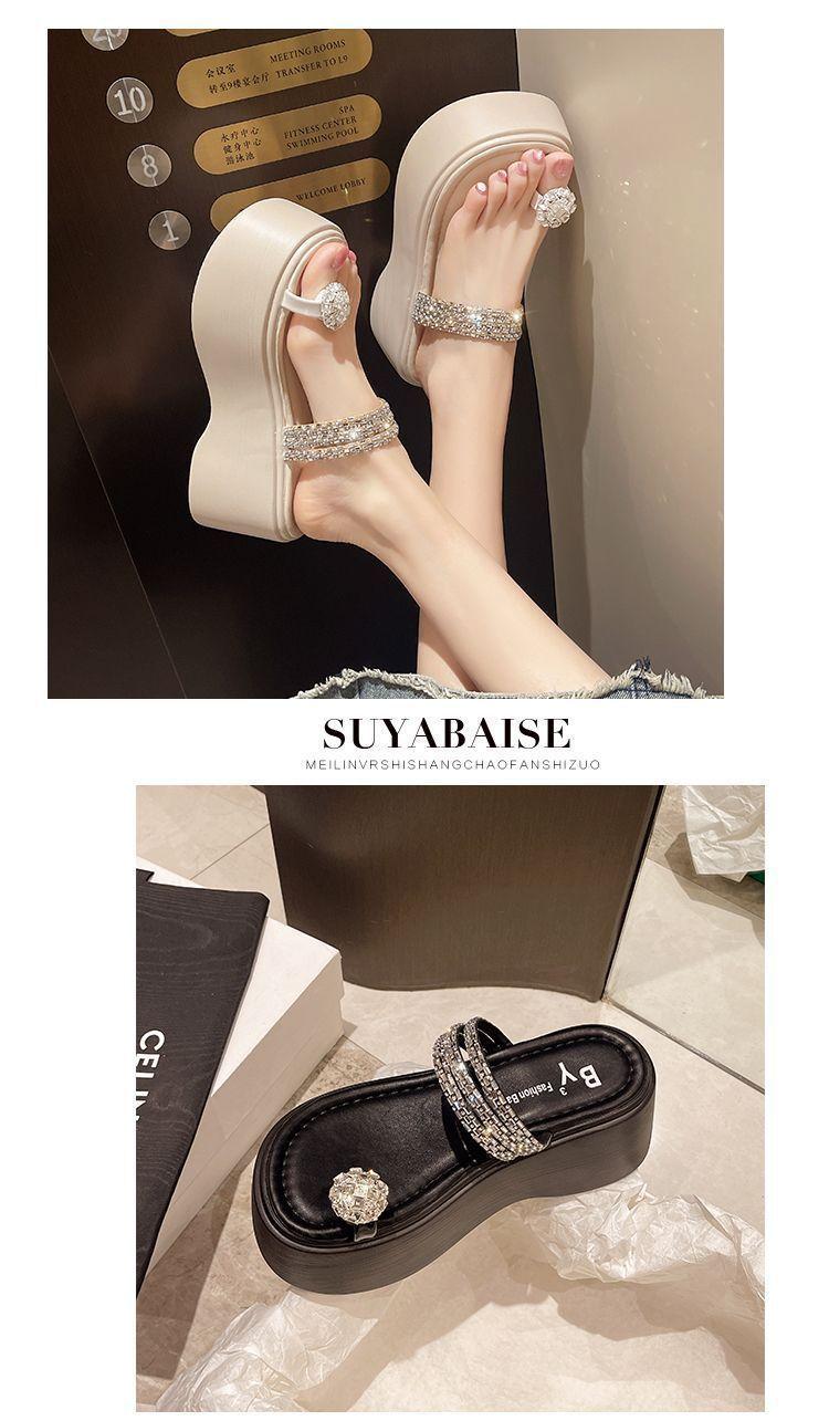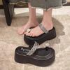 Sandalias de Estilo Hada para Exterior 2025 Nuevo Verano Suela Gruesa Aumentando la Altura Zapatos de Playa Slip-On Tacones de Plataforma Sandalias de Pedrería