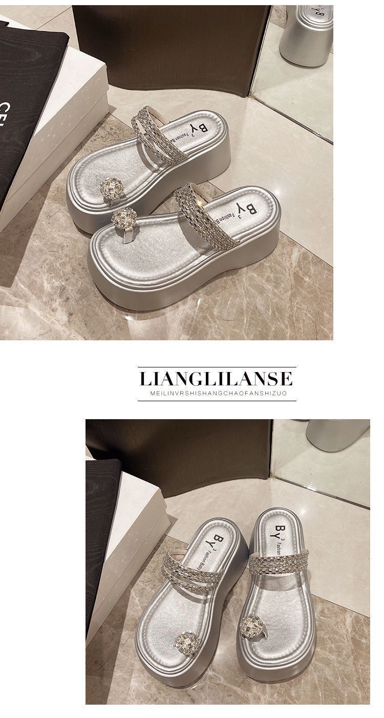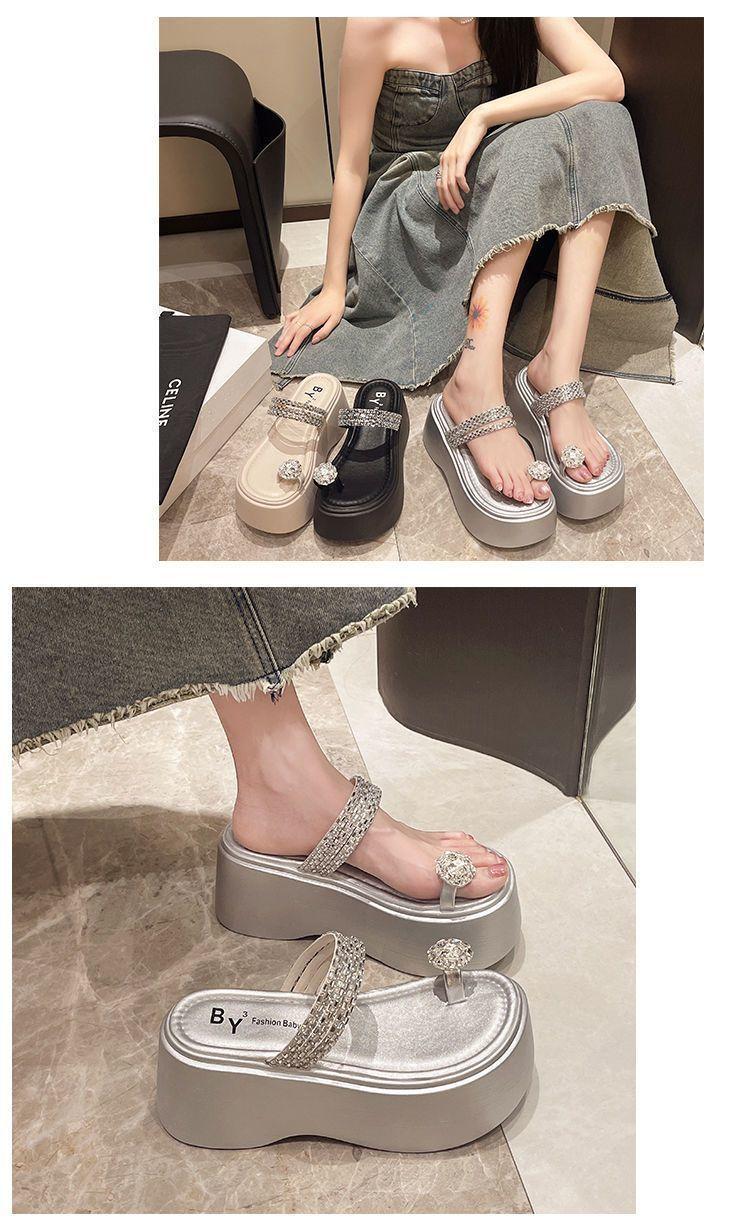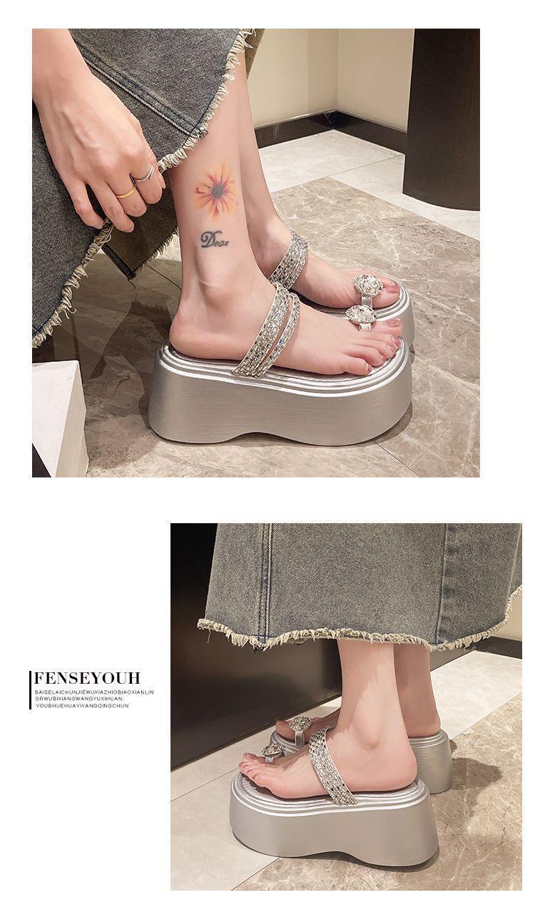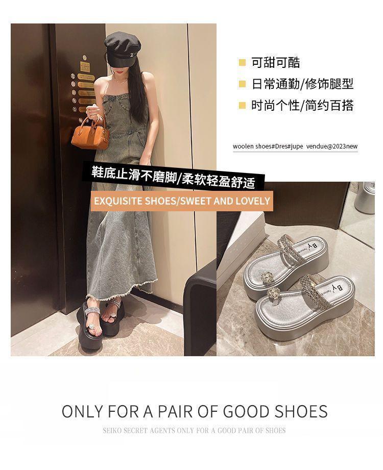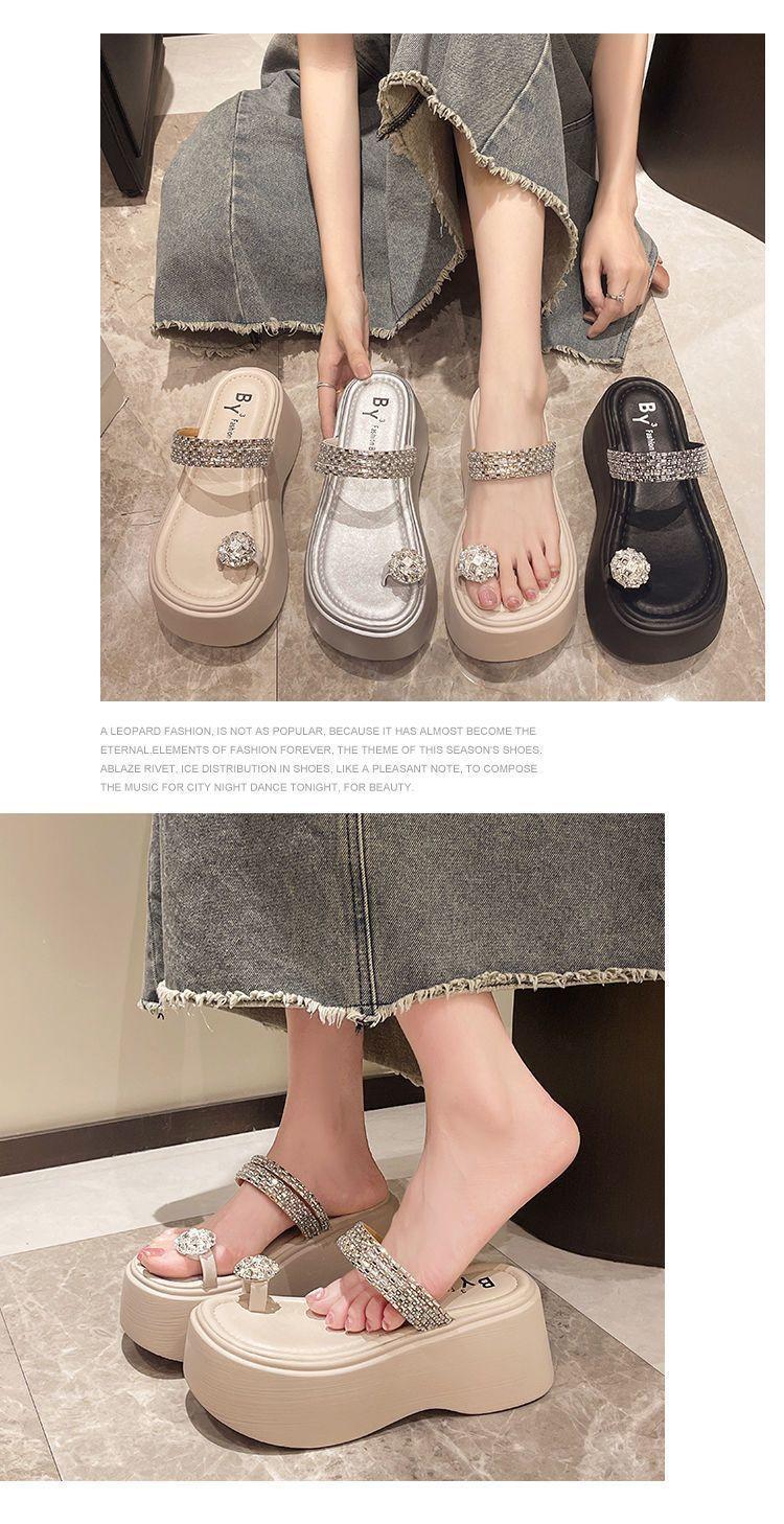 Sandalias de Estilo Hada para Exterior 2025 Nuevo Verano Suela Gruesa Aumentando la Altura Zapatos de Playa Slip-On Tacones de Plataforma Sandalias de Pedrería