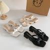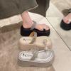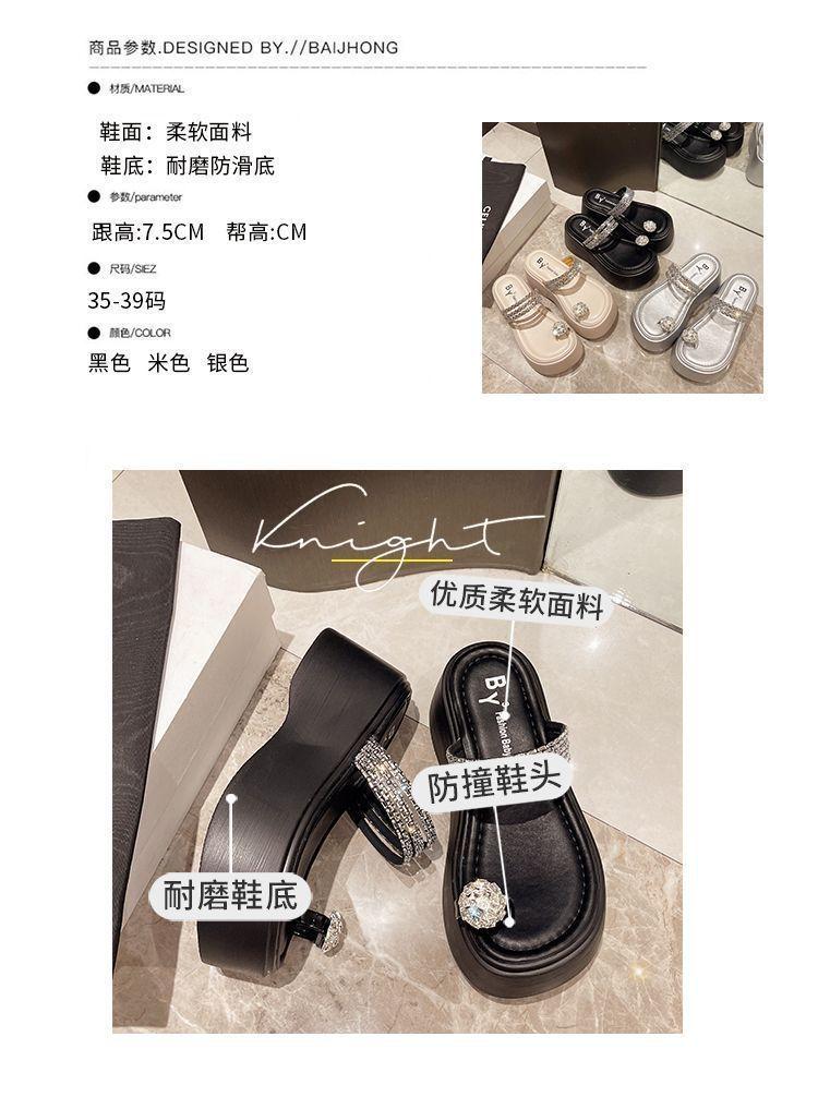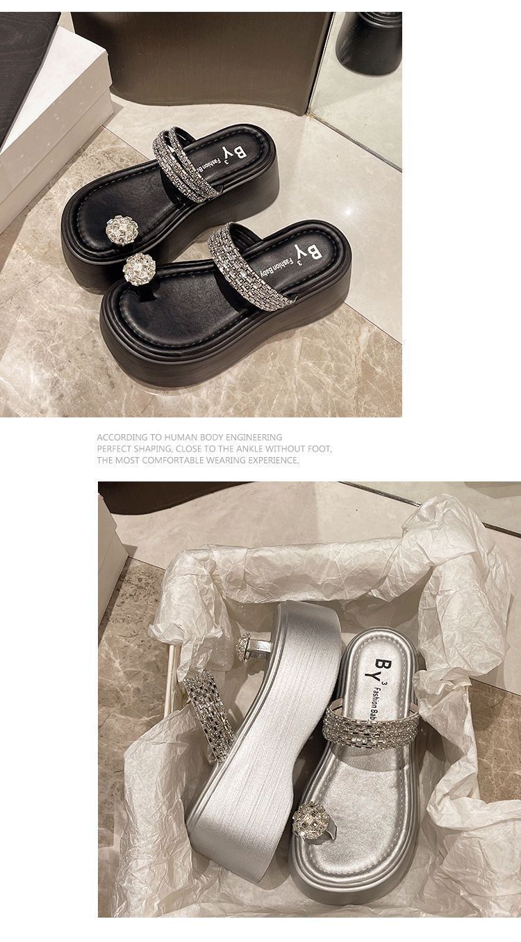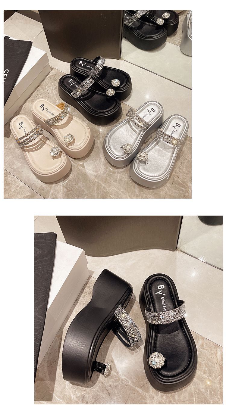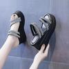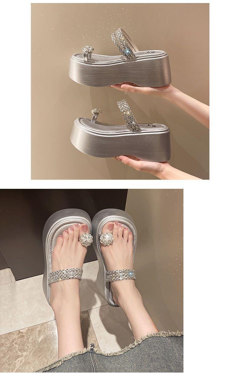 Sandalias de Estilo Hada para Exterior 2025 Nuevo Verano Suela Gruesa Aumentando la Altura Zapatos de Playa Slip-On Tacones de Plataforma Sandalias de Pedrería