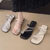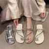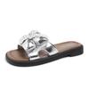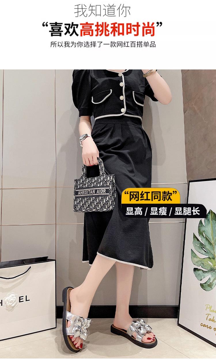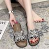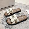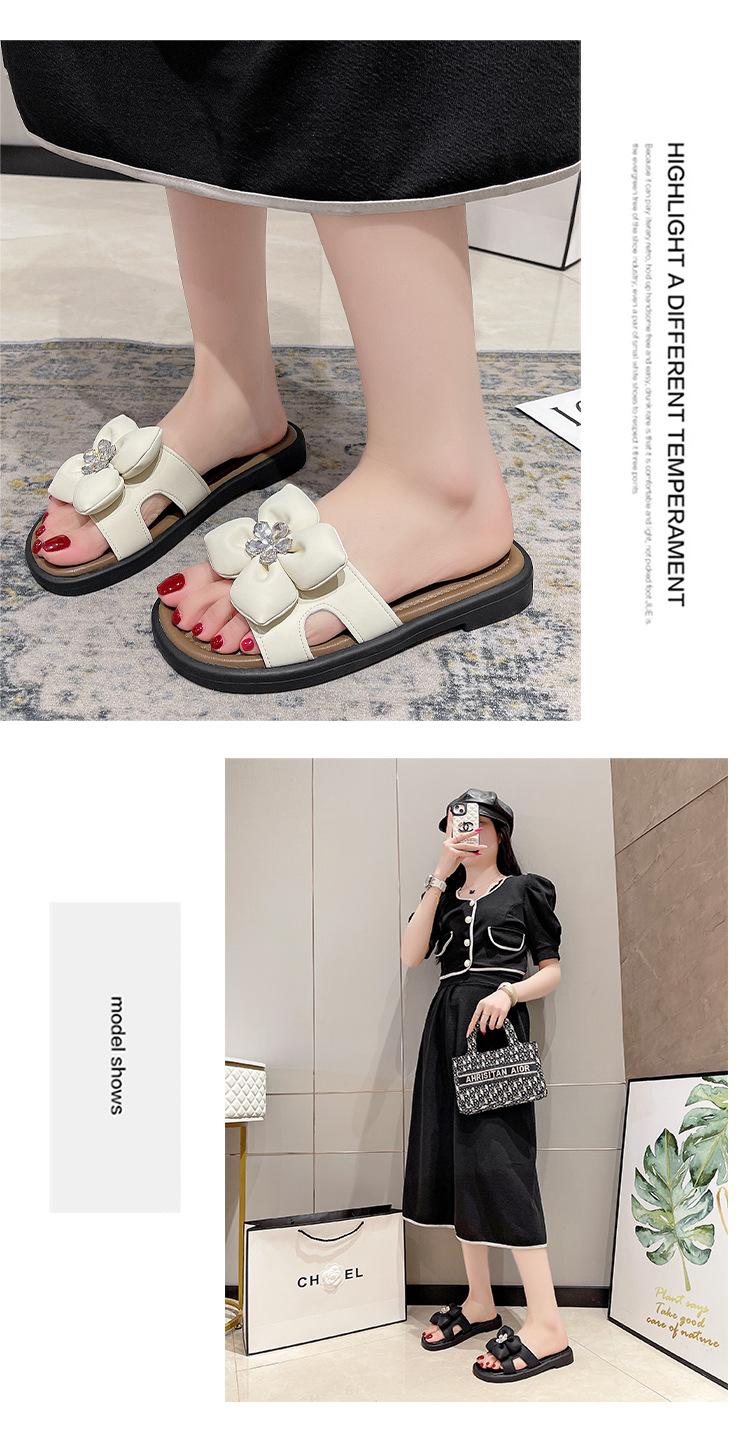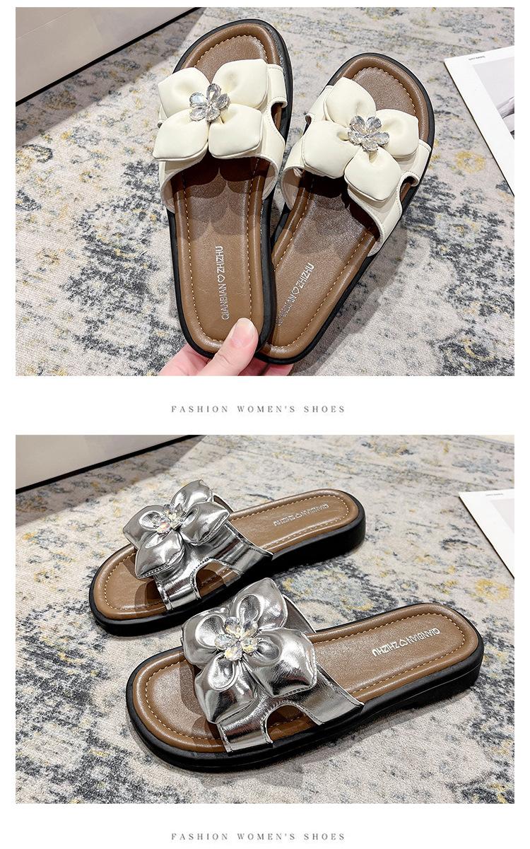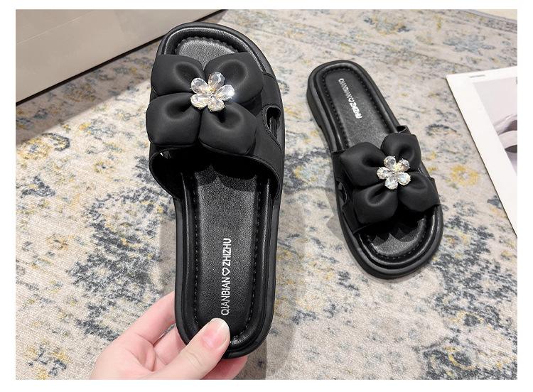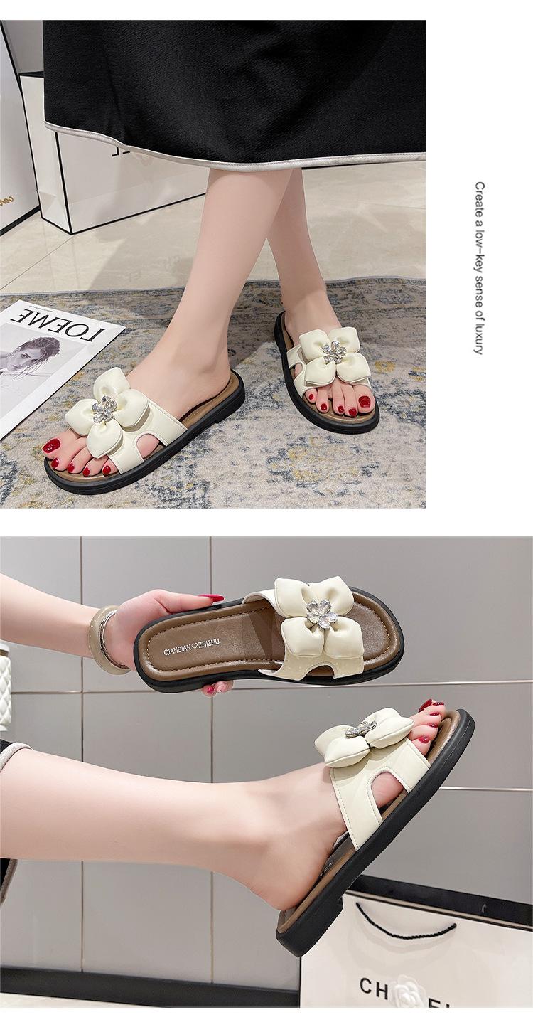 Sandalias planas francesas para mujer Verano 2025 Nuevo Exterior Moda Flores de pedrería con falda Pantuflas dulces