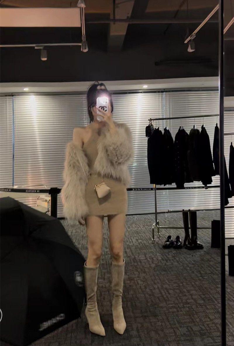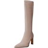 Botas de Punta Almendrada Color Albaricoque Ante Elásticas Botas Altas Ajustadas 2025 Otoño Nuevo Otoño e Invierno Tacones Altos Color Nude para Mujer