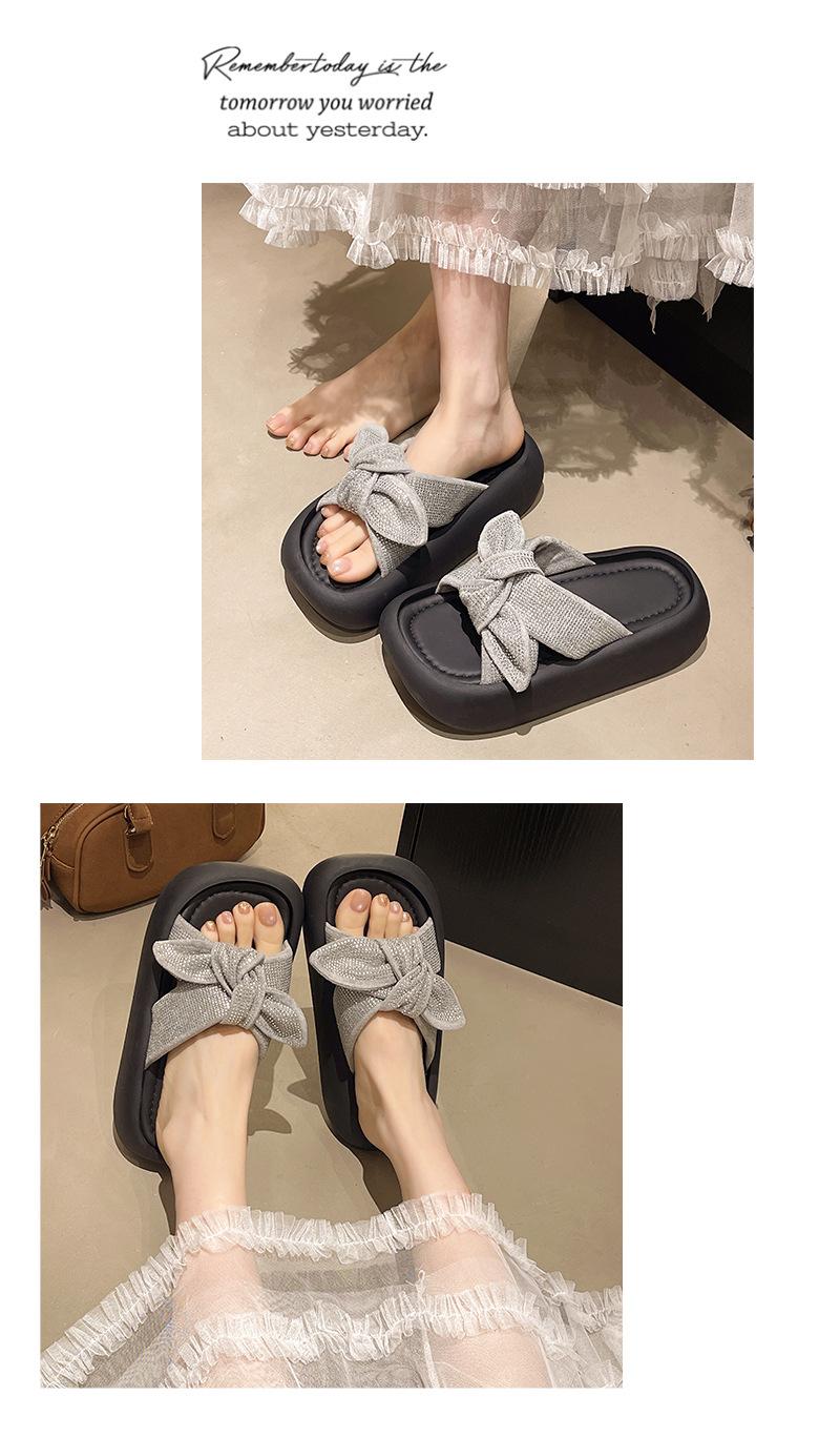 Sandalias de Moda Versátiles y Modernas para Exterior Pantuflas Casuales para Mujer 2025 Verano Nuevo Sandalias Slip-On con Lazo y Suela Gruesa