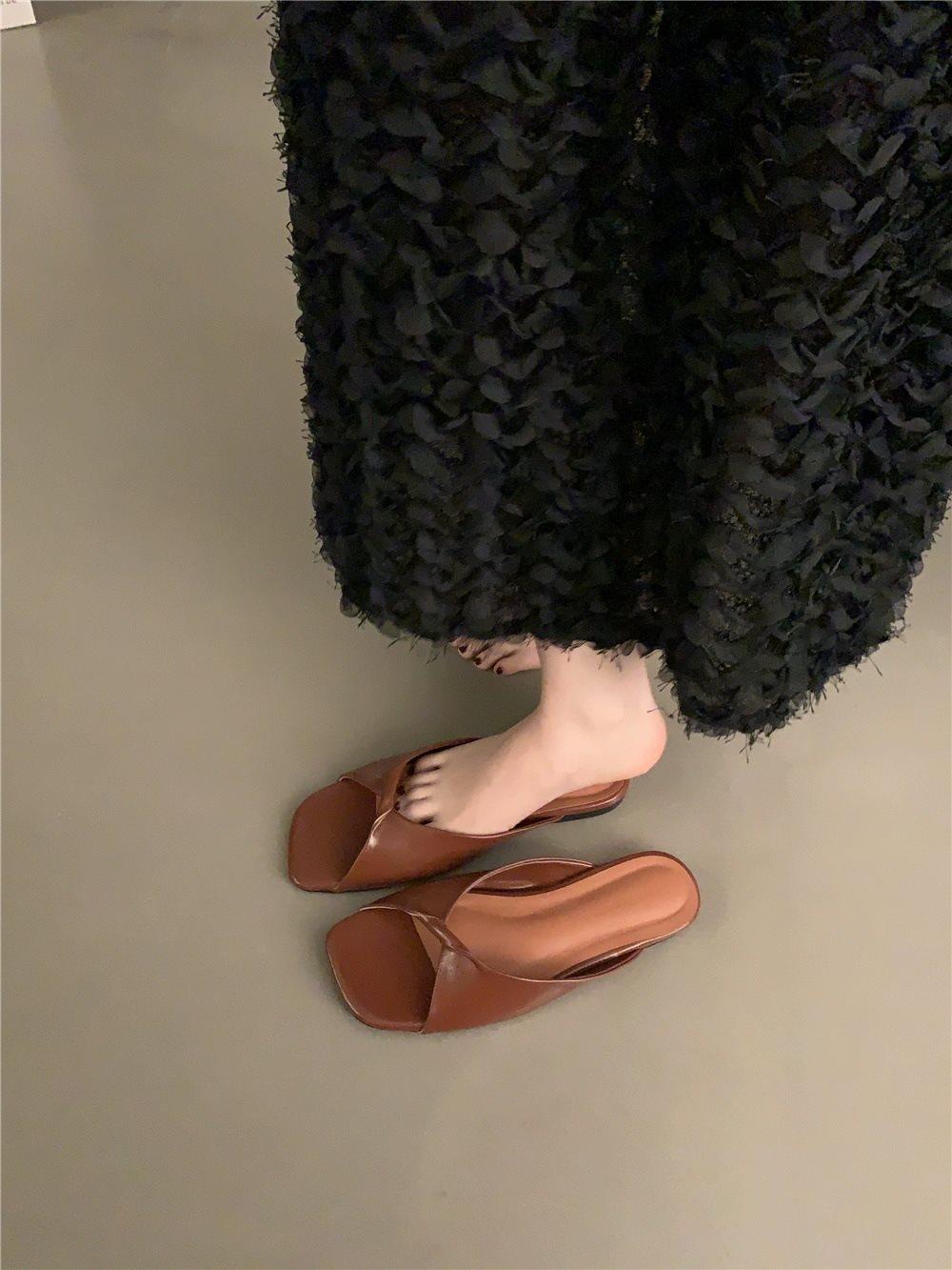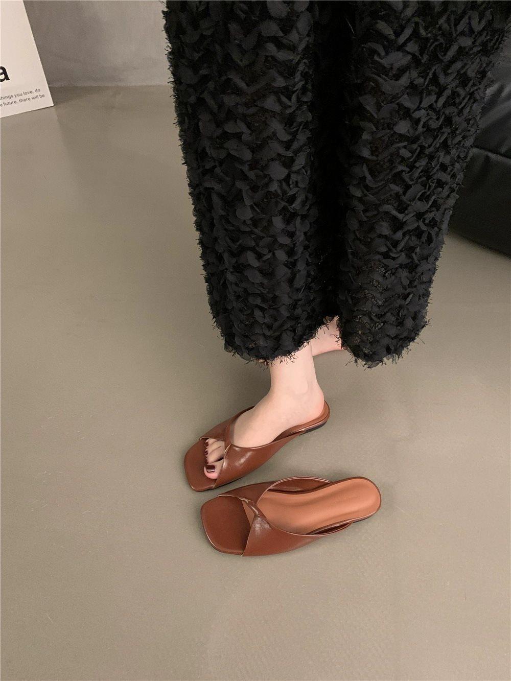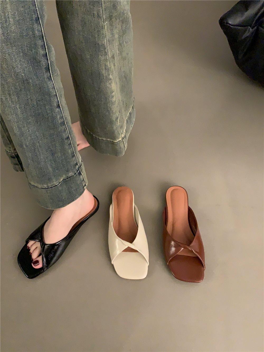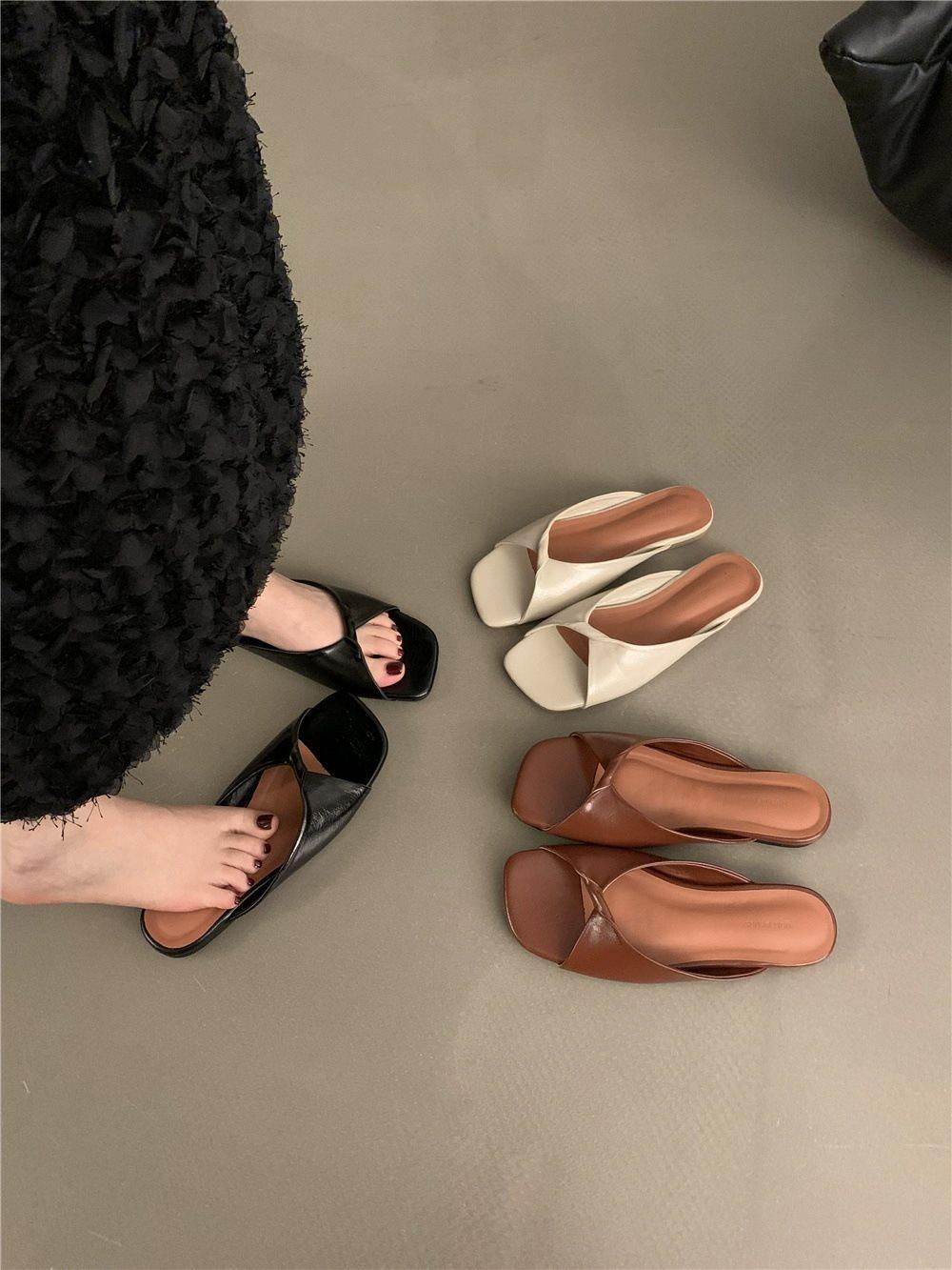 Chanclas planas para verano para mujer 2025 Nuevo estilo de verano Moda costera Playa Puntera abierta Puntera cuadrada