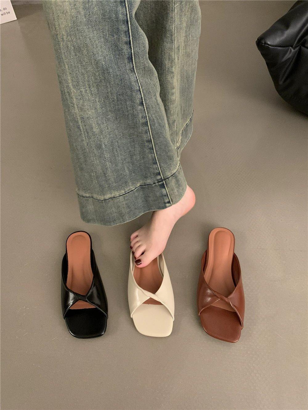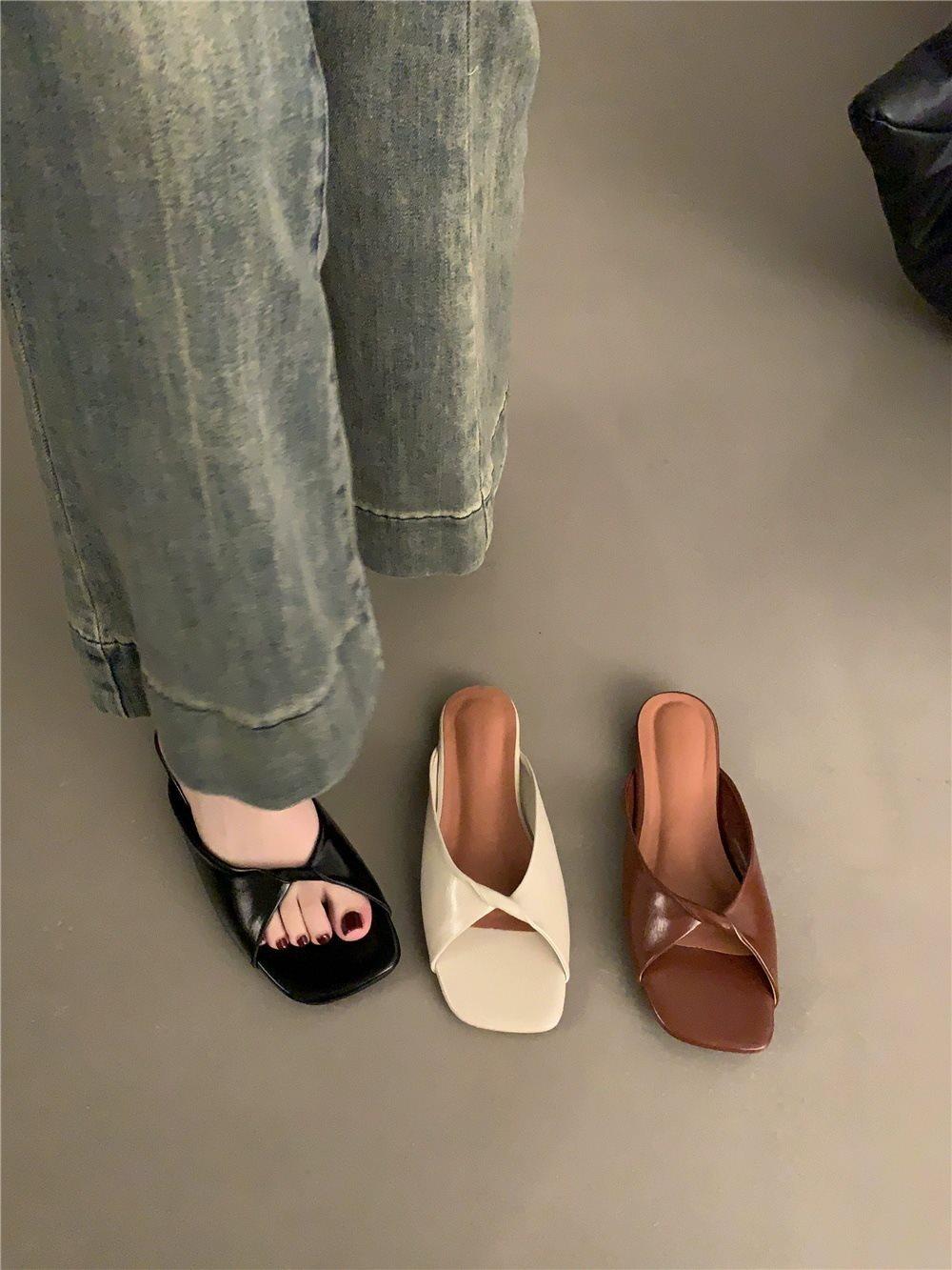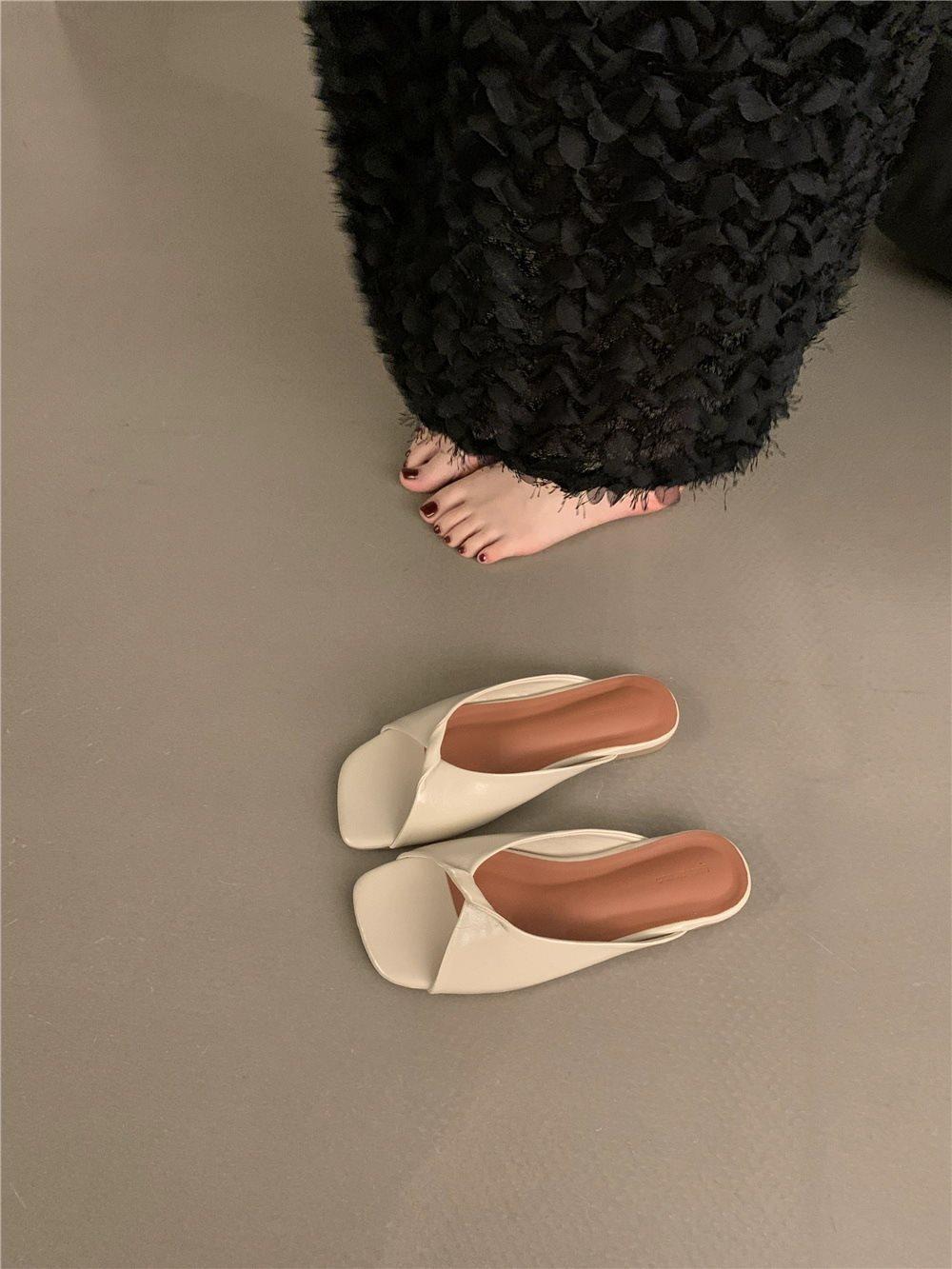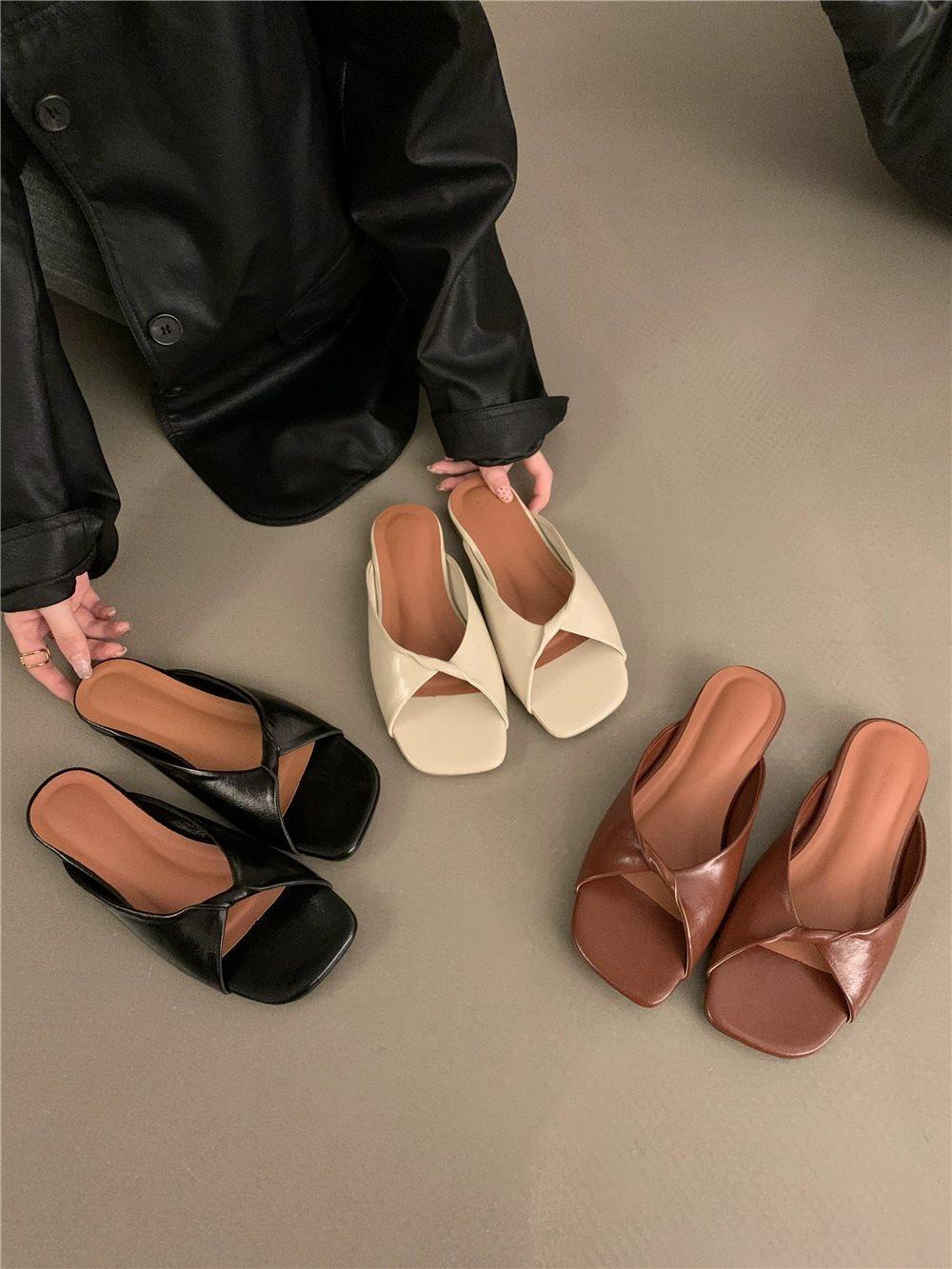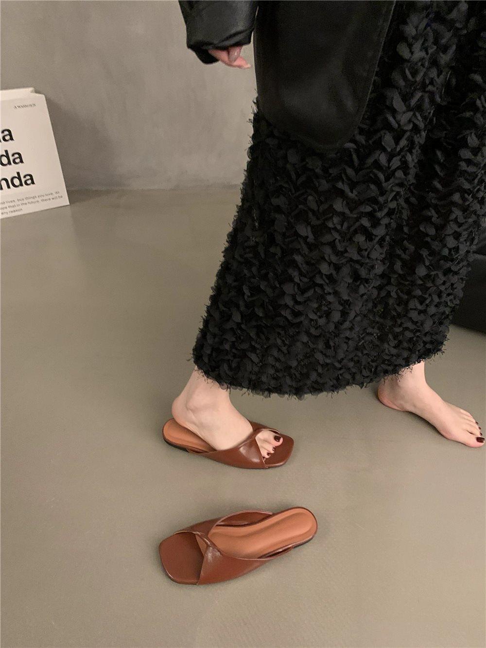 Chanclas planas para verano para mujer 2025 Nuevo estilo de verano Moda costera Playa Puntera abierta Puntera cuadrada