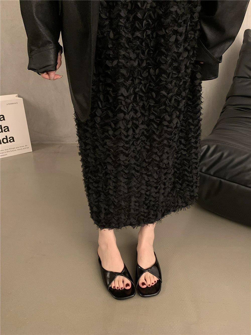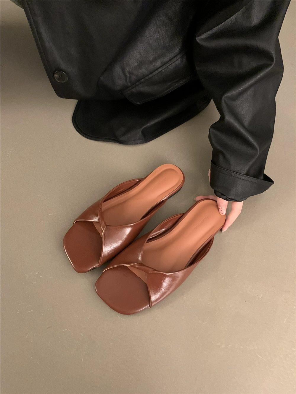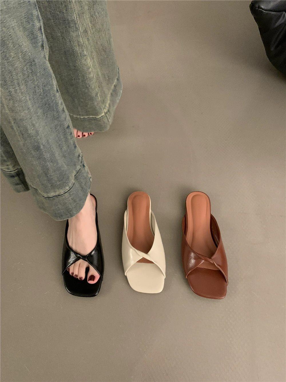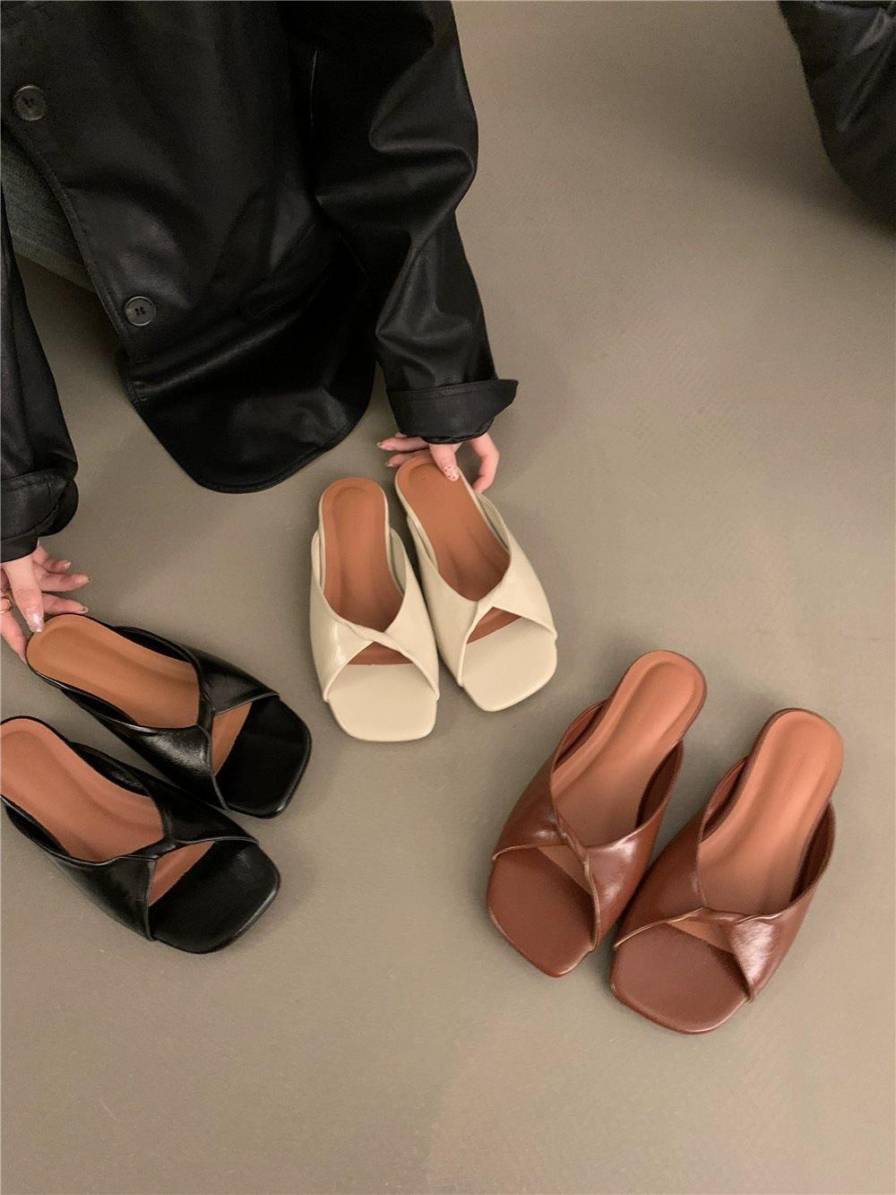 Chanclas planas para verano para mujer 2025 Nuevo estilo de verano Moda costera Playa Puntera abierta Puntera cuadrada