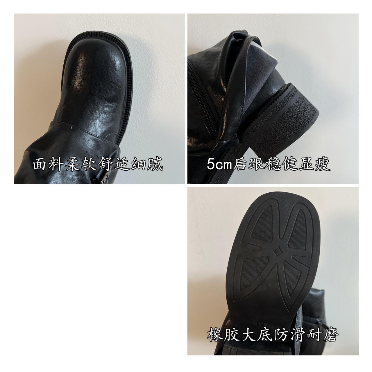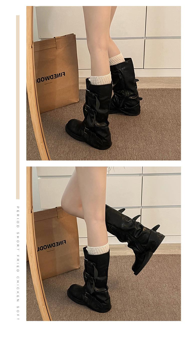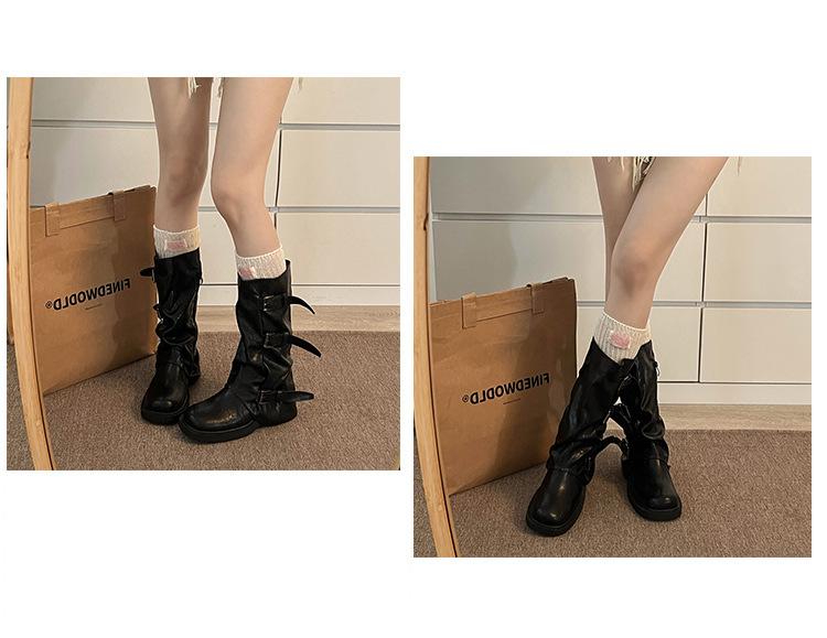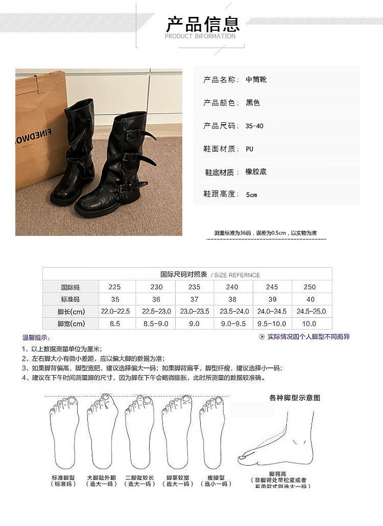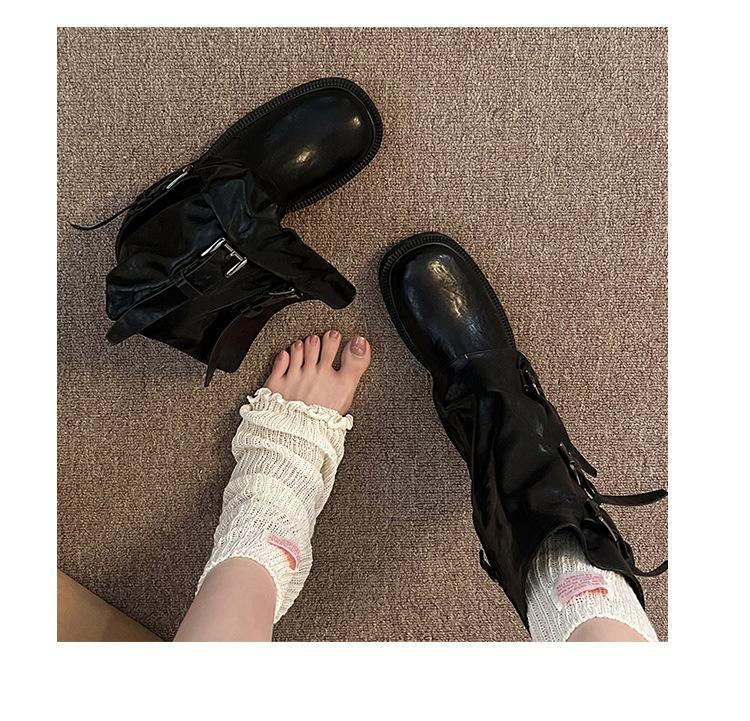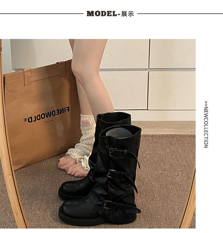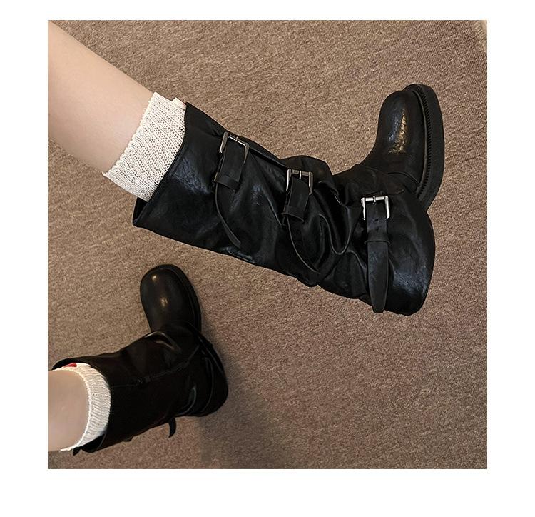 Botines Slouch de Media Caña Dulces y Cool con Hebilla de Cinturón para Mujer 2024 Nuevos Botas Retro Western Cowboy con Tacones Altos y Botines Martin