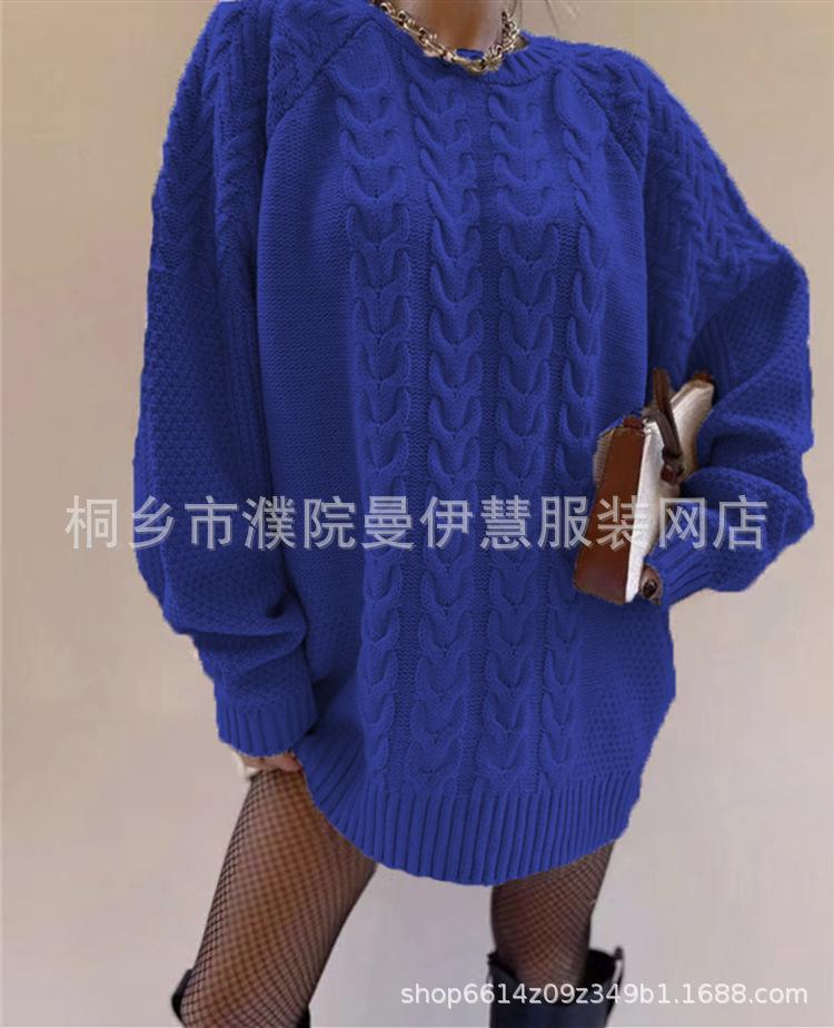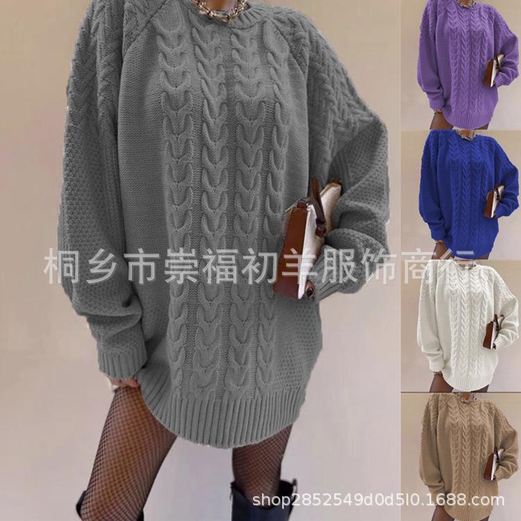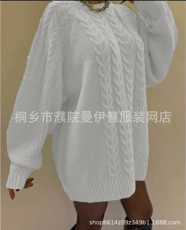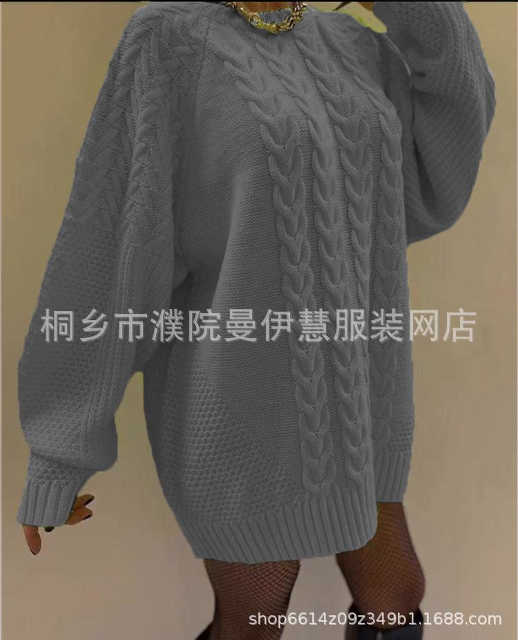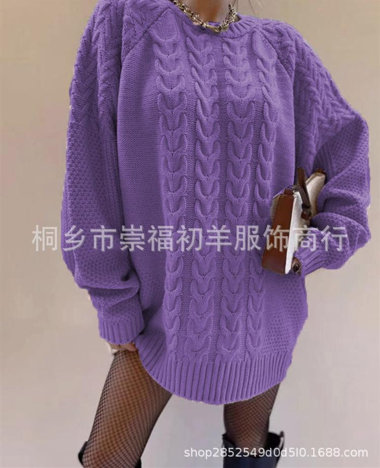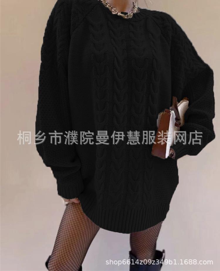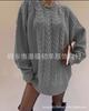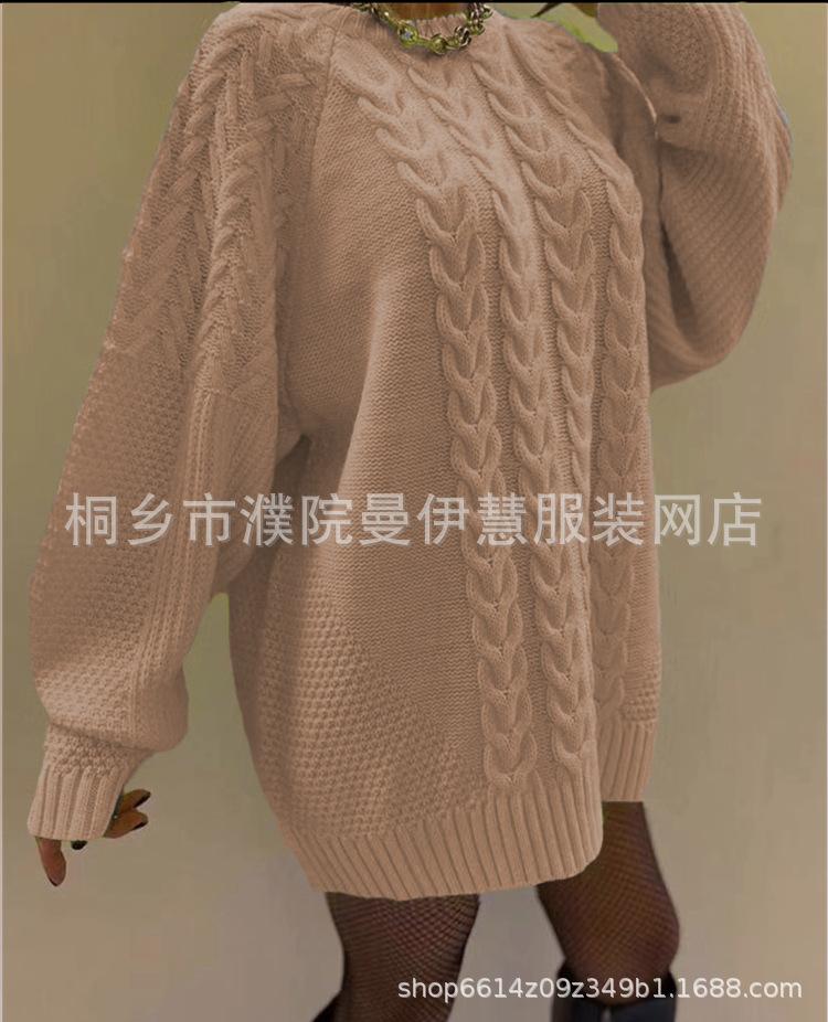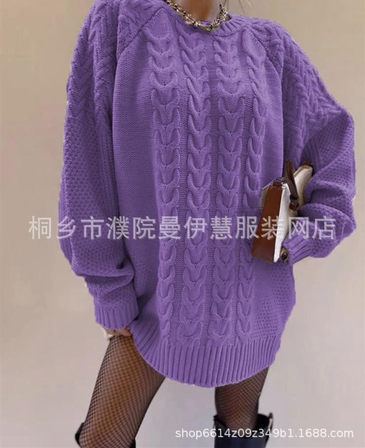 Suéter de punto trenzado transfronterizo europeo y americano para mujer, nuevo para otoño e invierno, jersey de color sólido, cuello redondo, holgado, adelgazante, manga larga para mujer