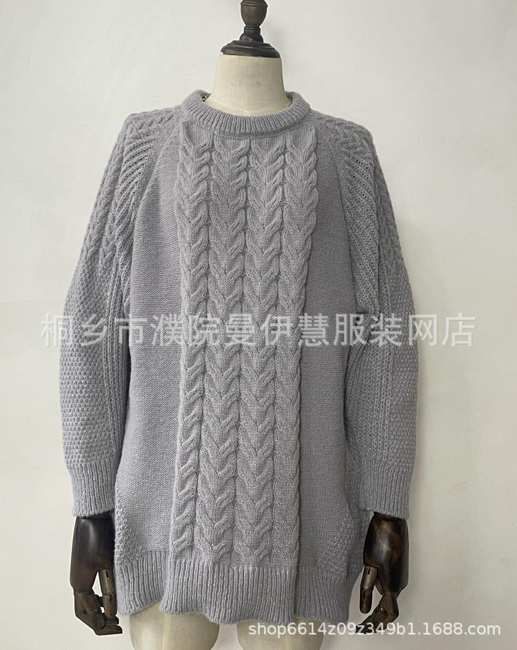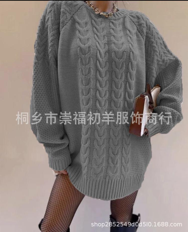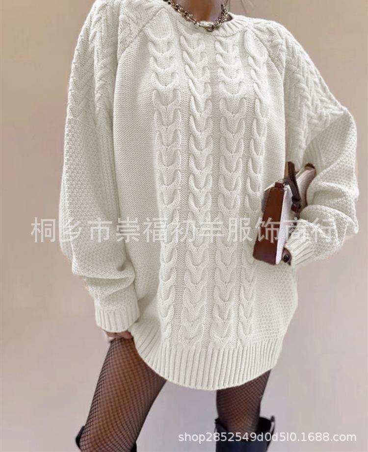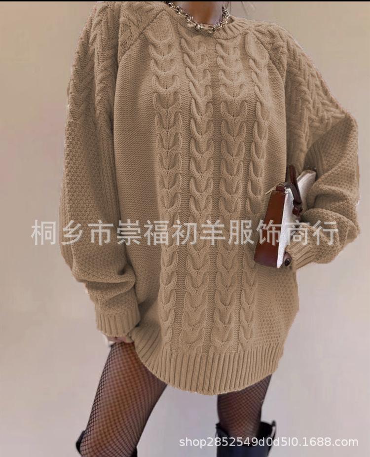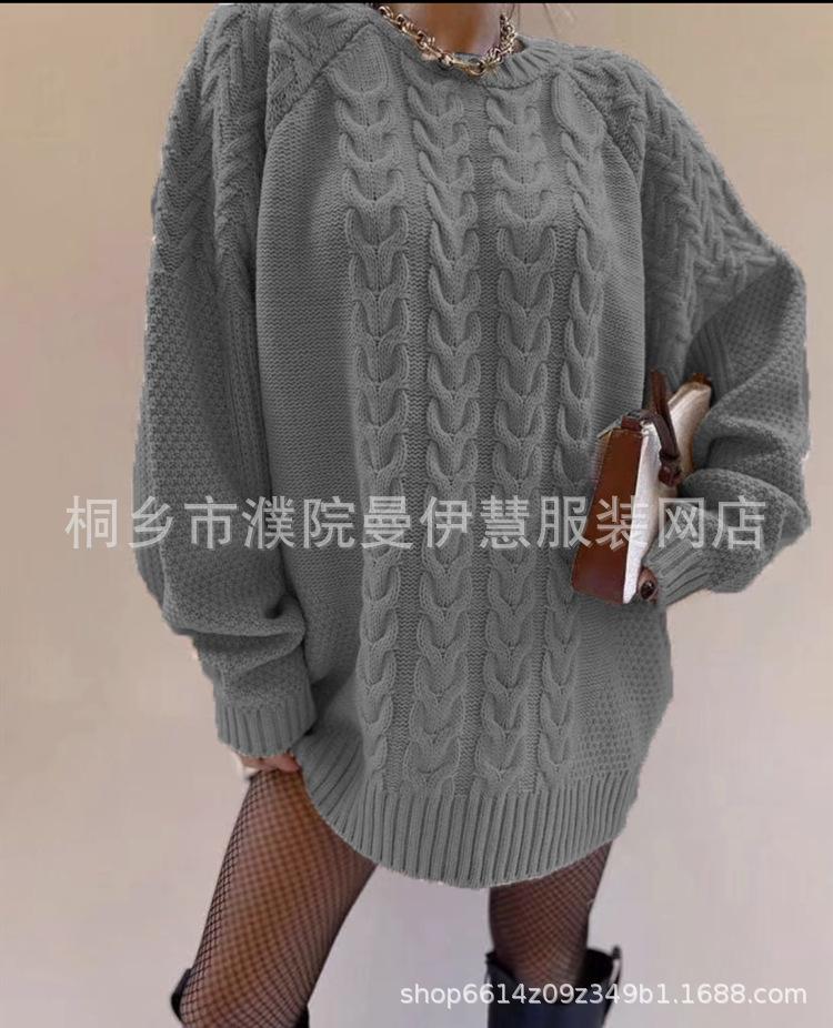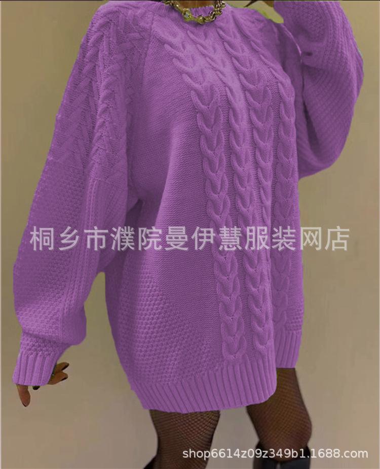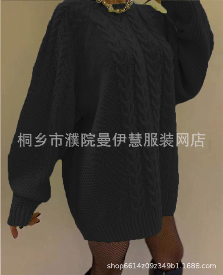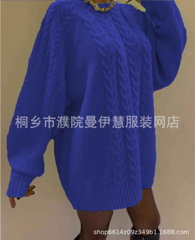Suéter de punto trenzado transfronterizo europeo y americano para mujer, nuevo para otoño e invierno, jersey de color sólido, cuello redondo, holgado, adelgazante, manga larga para mujer