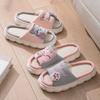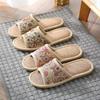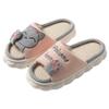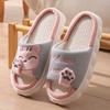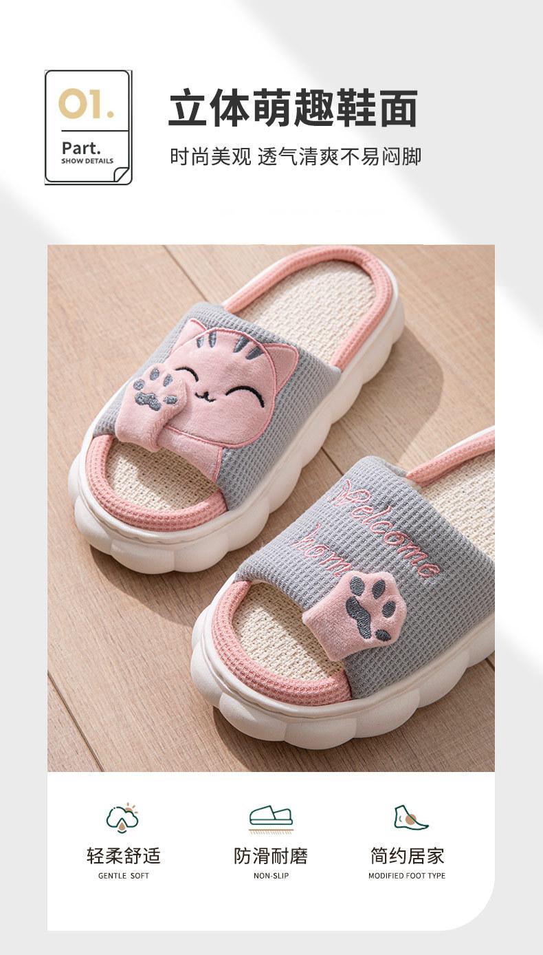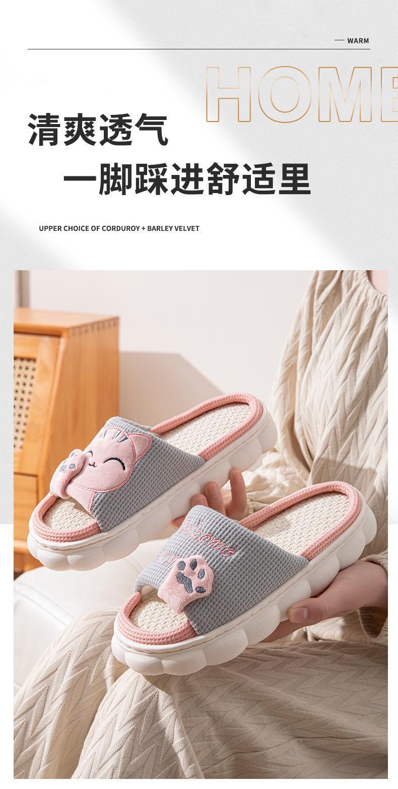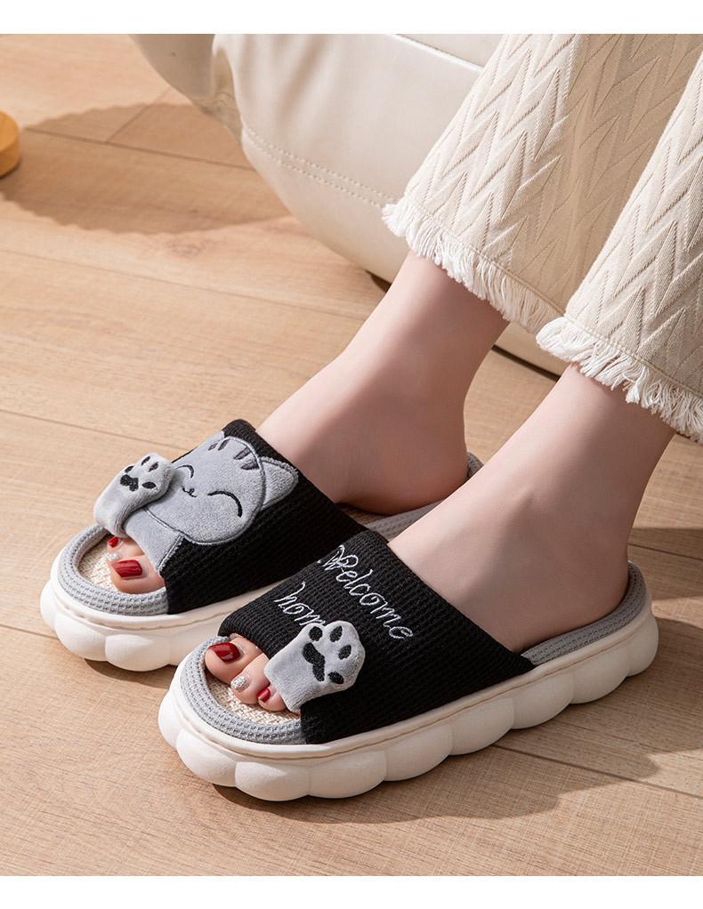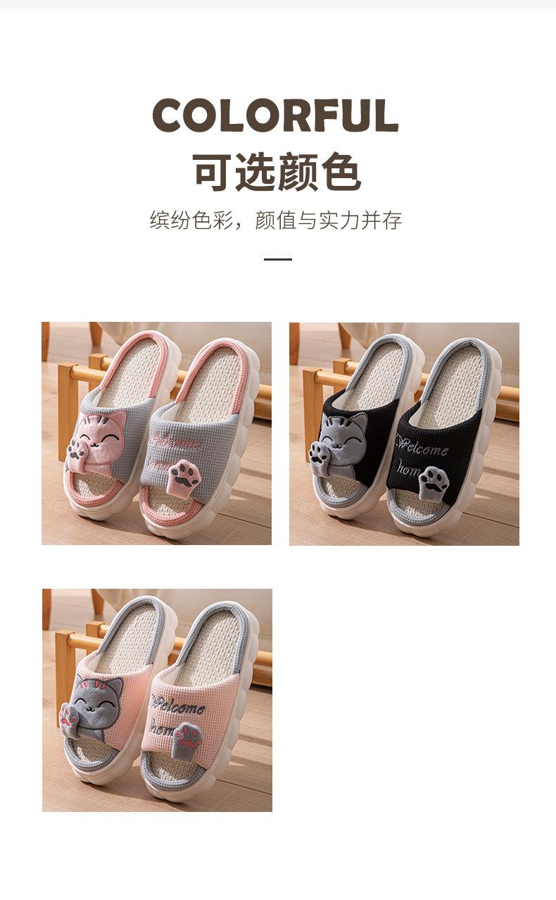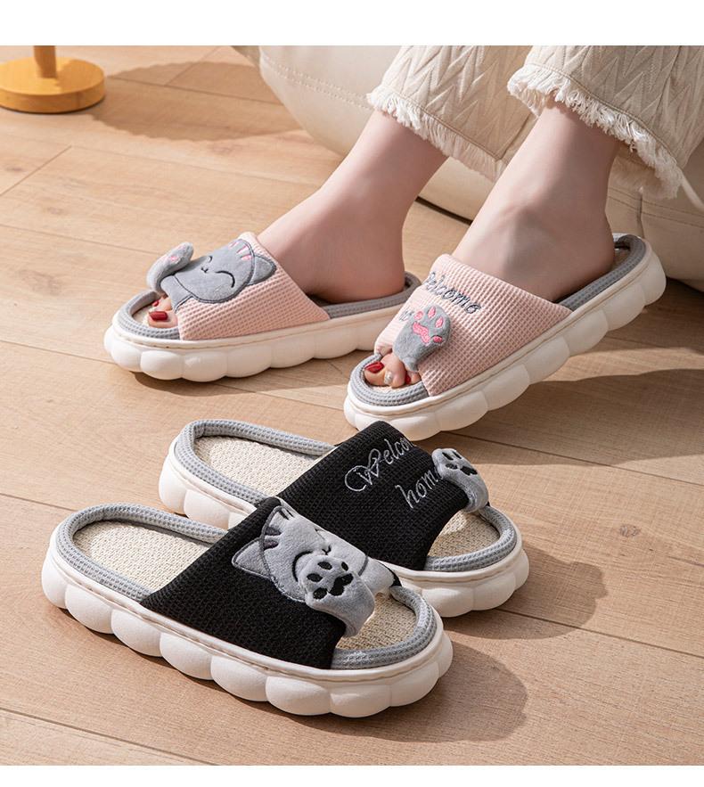 Pantuflas de Lino para Mujer para las Cuatro Estaciones para el Hogar Antideslizantes Gato de Dibujos Animados Ropa de Exterior Nuevas Suela Suave Transpirables de Pareja Pantuflas Gruesas para Hombre
