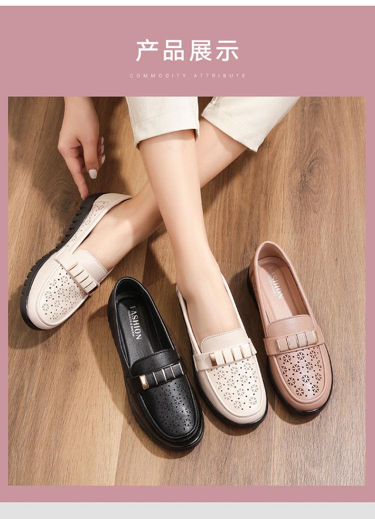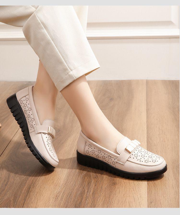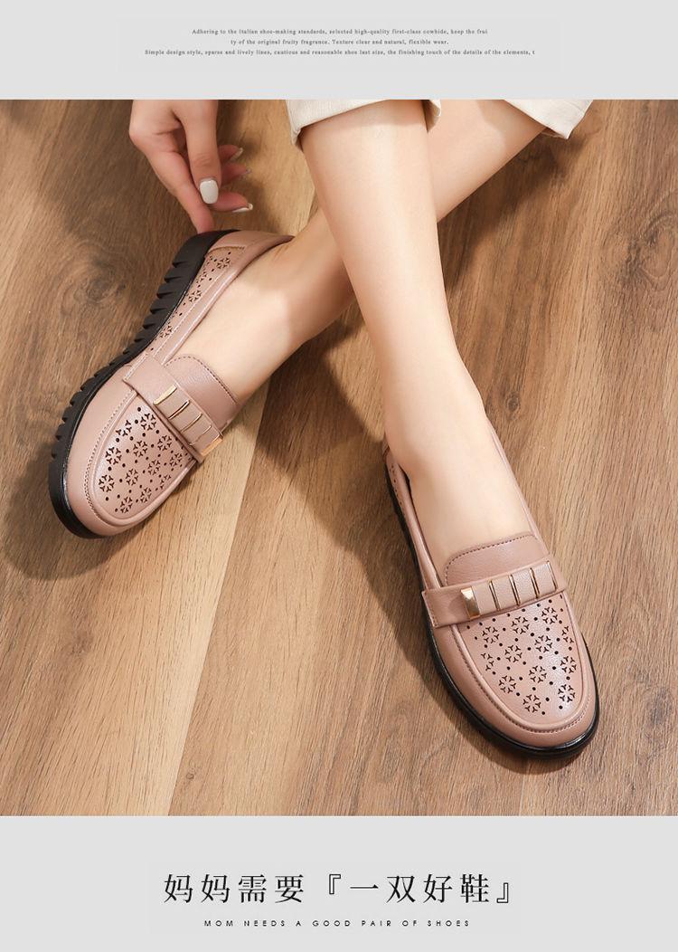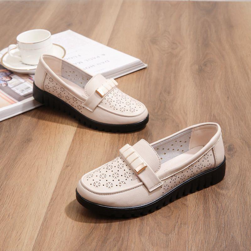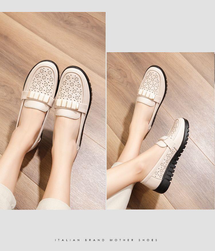 2024 Zapatos Nuevos para Madres Zapatos de Verano para Mujer Mediana Edad y Adulto Mayor Cómodos Suela Suave Transpirables Cuero Suave Talla Grande Zapatos con Agujeros para Mujer