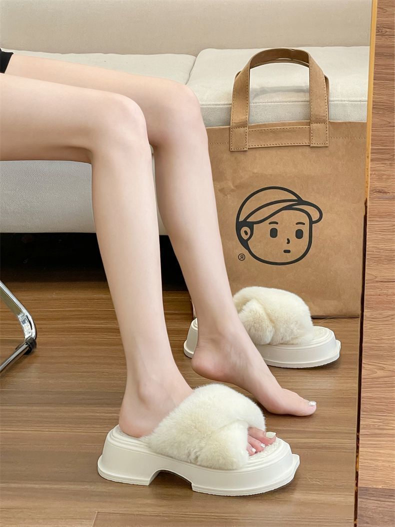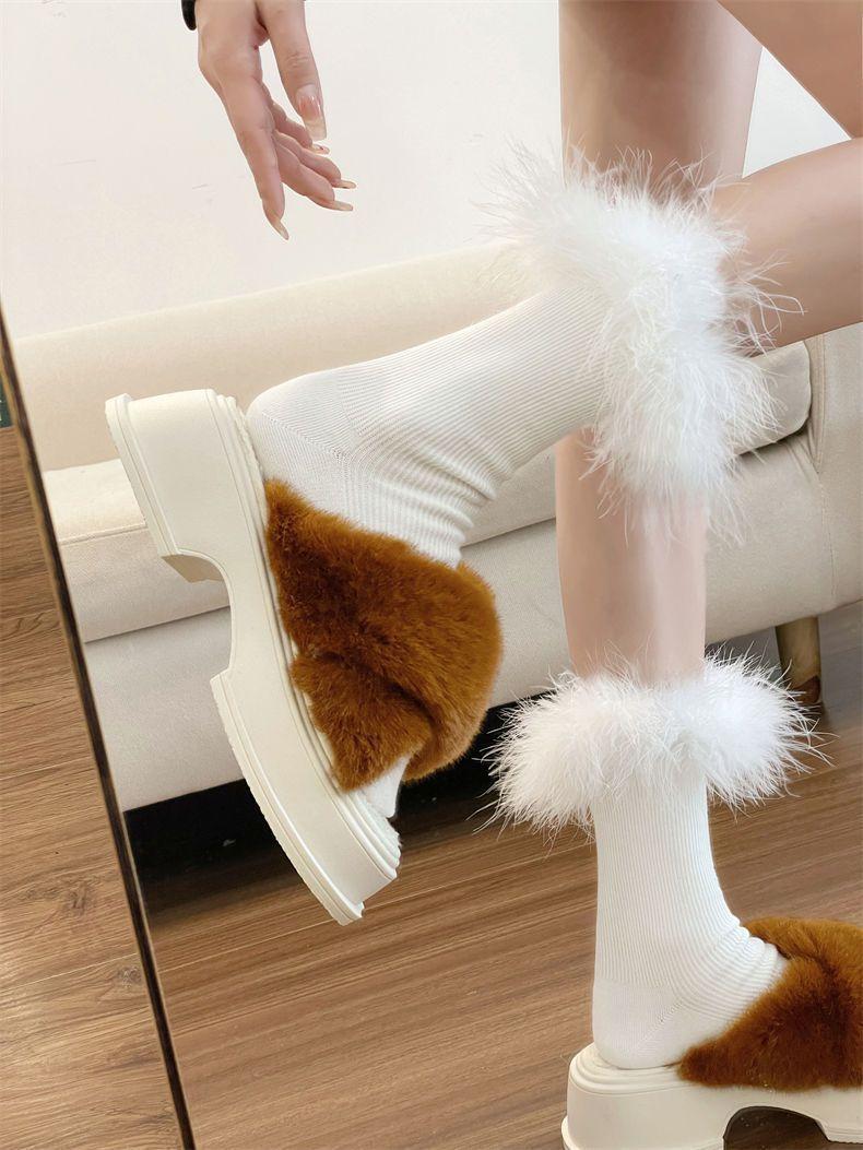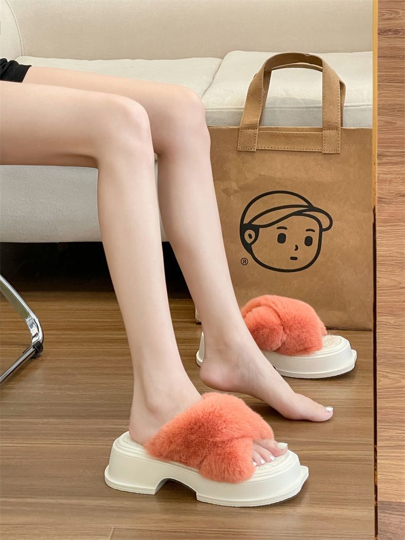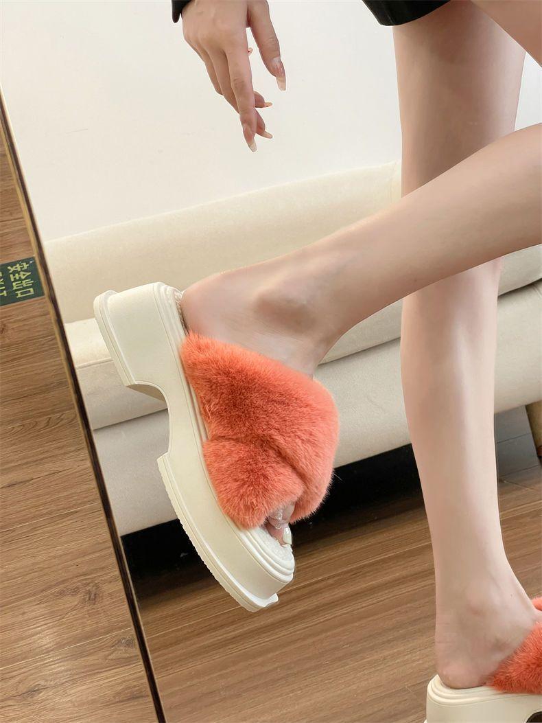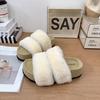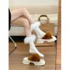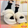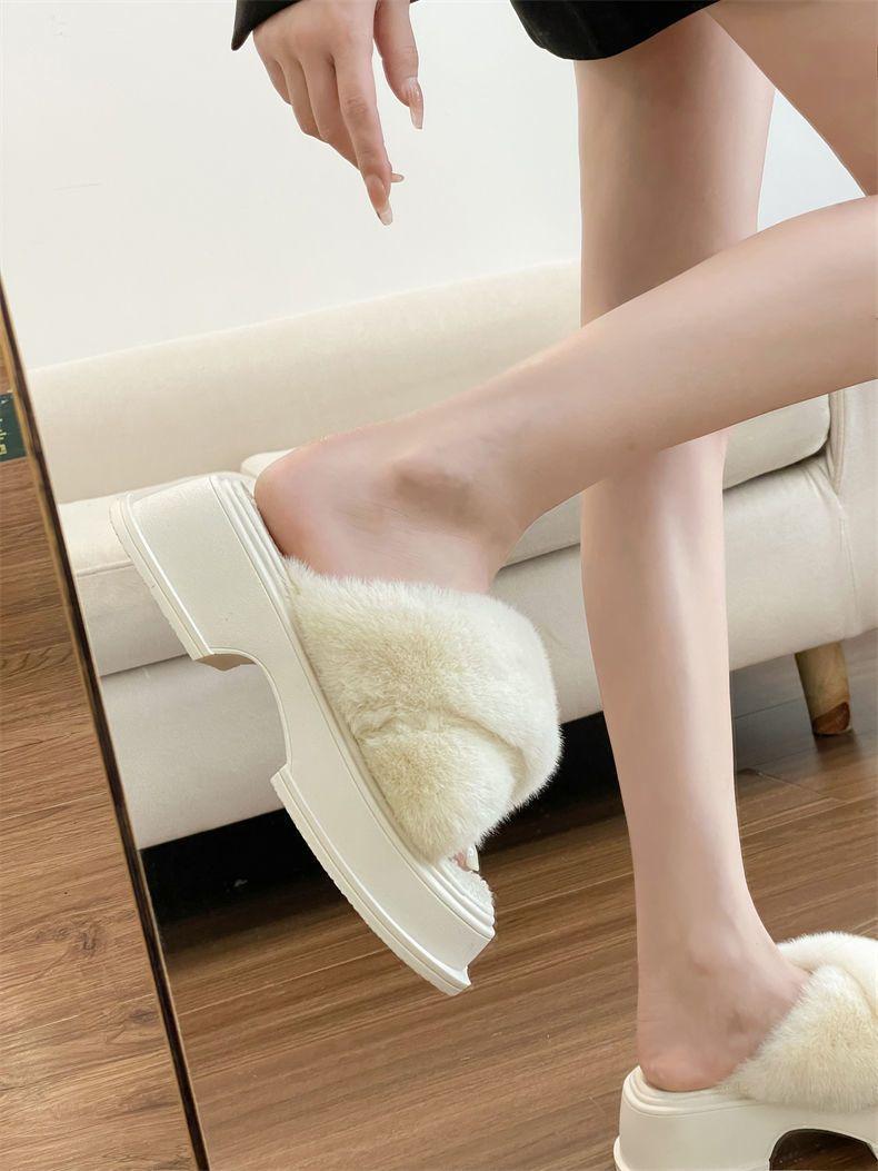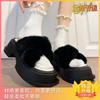 Sandalias de Otoño para Mujer, Estilo Celebridad de Internet, Pantuflas de Punta Cuadrada con Tiras Cruzadas y Peludas de Suela Gruesa para Mujer, Estilo Casual Coreano