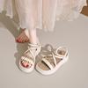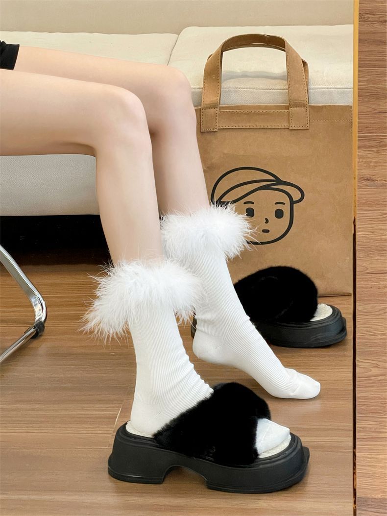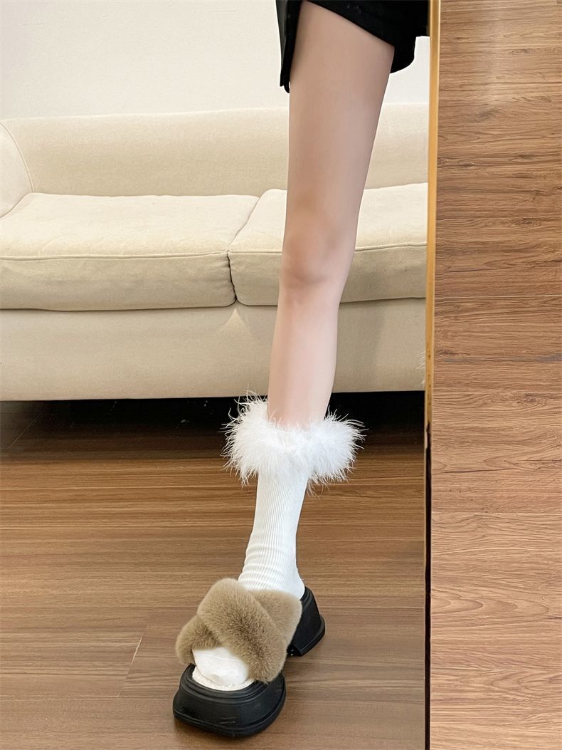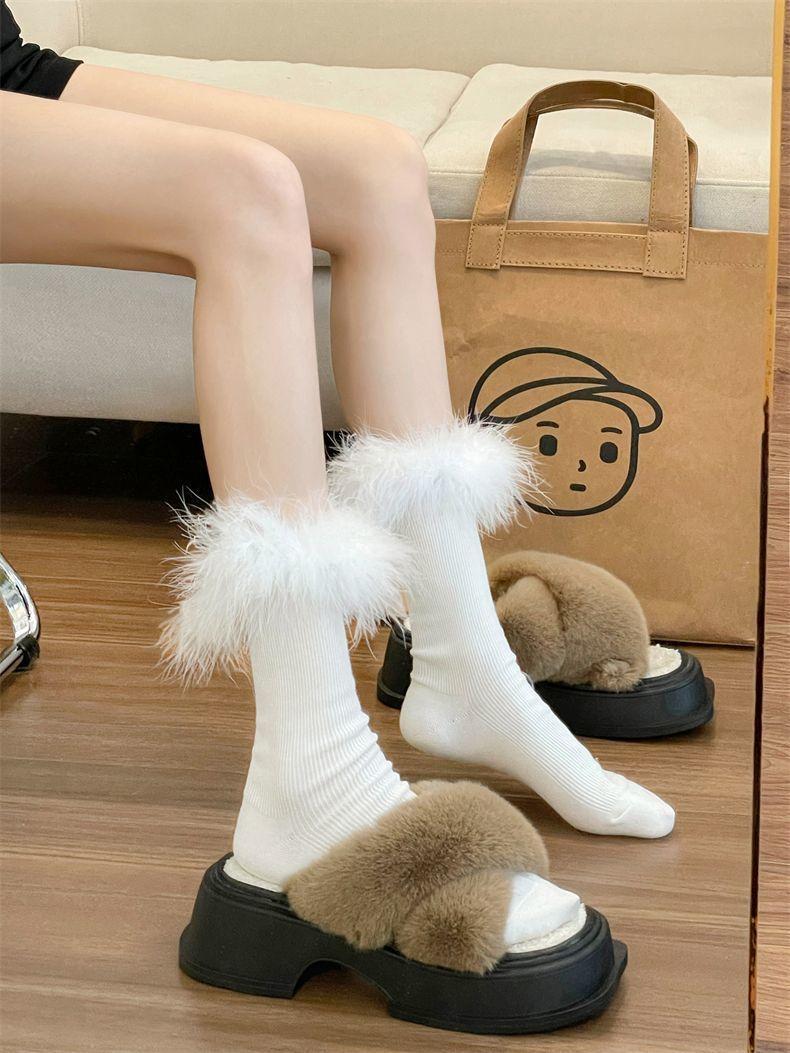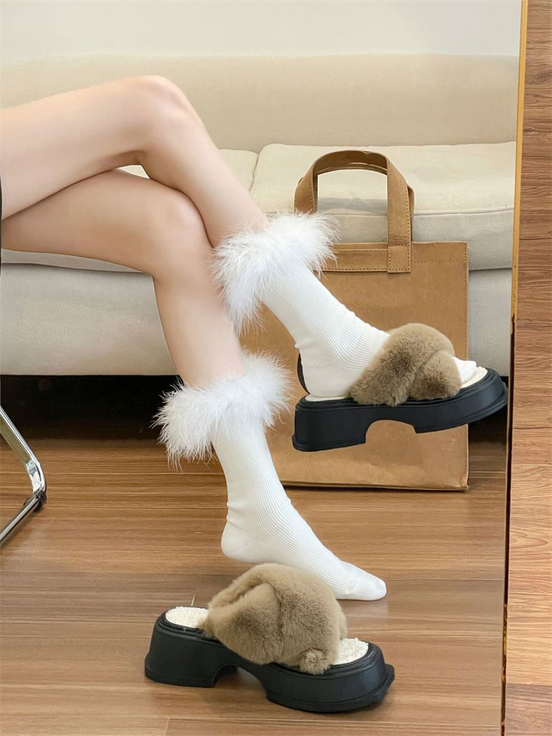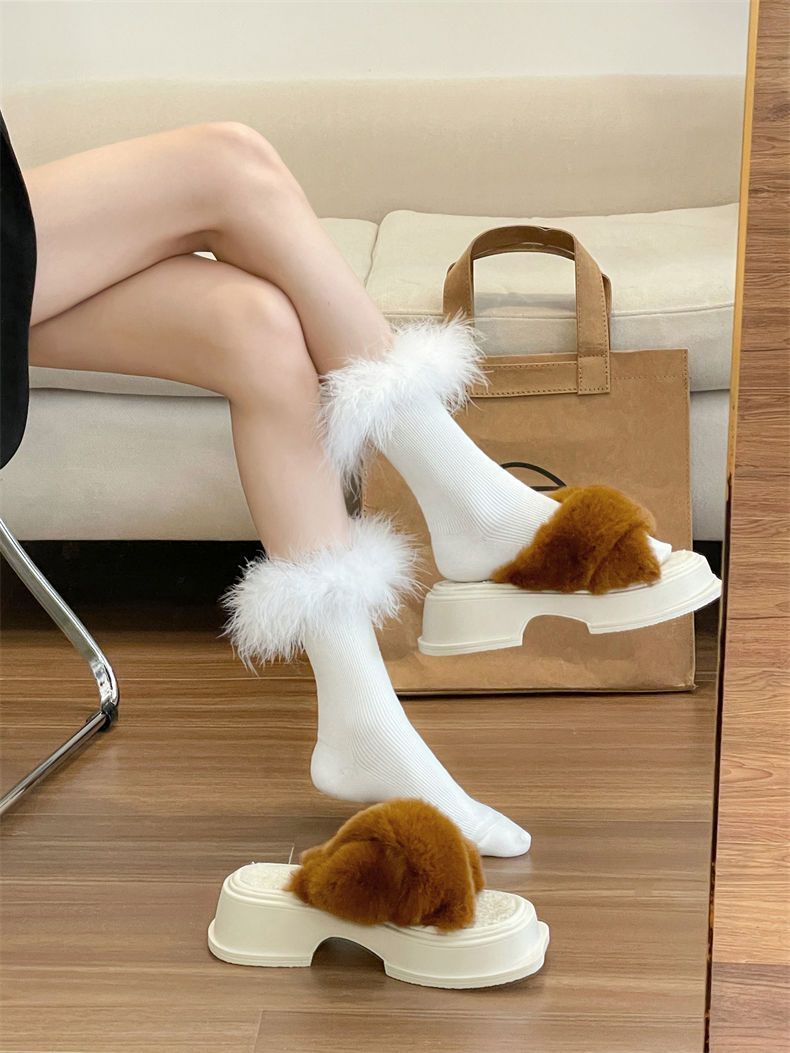 Sandalias de Otoño para Mujer, Estilo Celebridad de Internet, Pantuflas de Punta Cuadrada con Tiras Cruzadas y Peludas de Suela Gruesa para Mujer, Estilo Casual Coreano