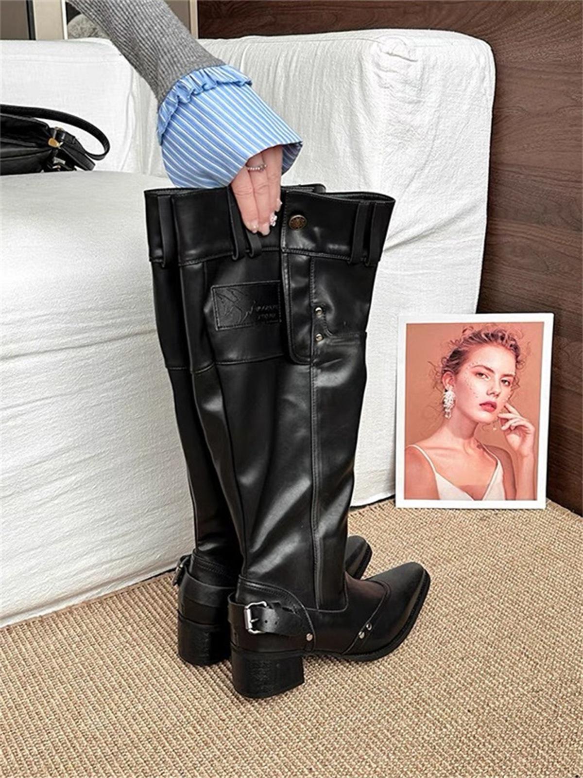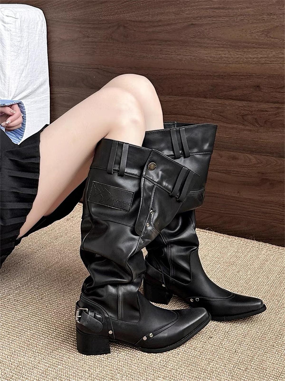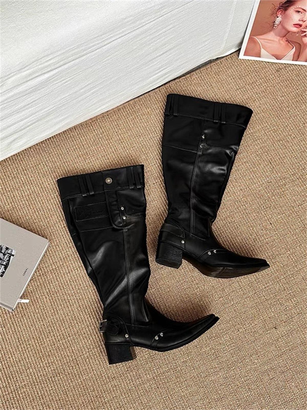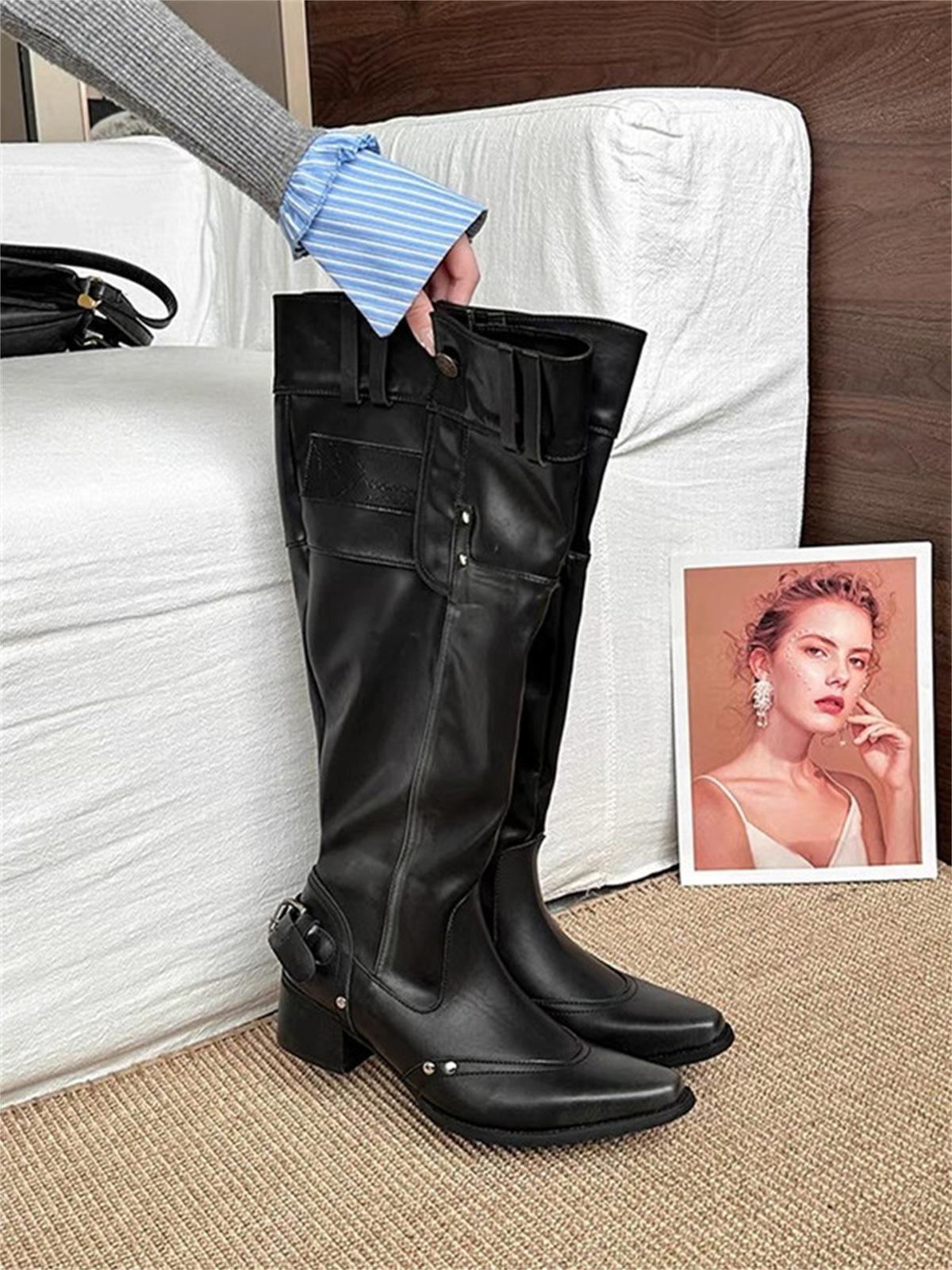 Botas de Tubo Alto para Chica Caliente para Mujer 2025 Nuevo Estilo Francés de Gama Alta Punta Afilada Tacón Grueso Botas de Caballero