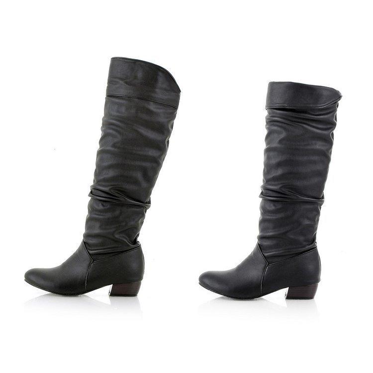 2024 Otoño e Invierno Nuevo Europeo Transfronterizo Talla Grande Flats Botas de Media Caña Punta Redonda Plisadas Botas Altas de Caballero para Mujer
