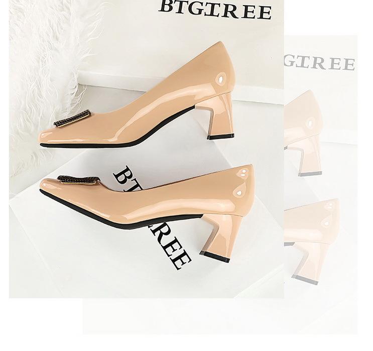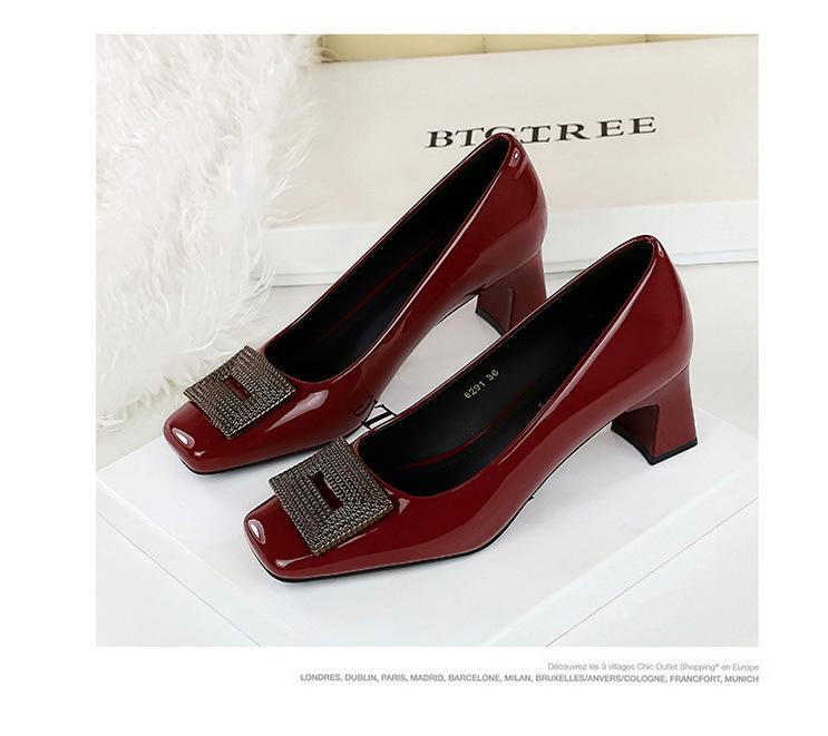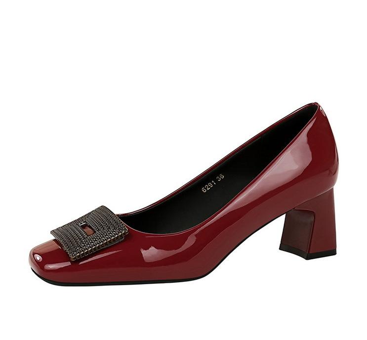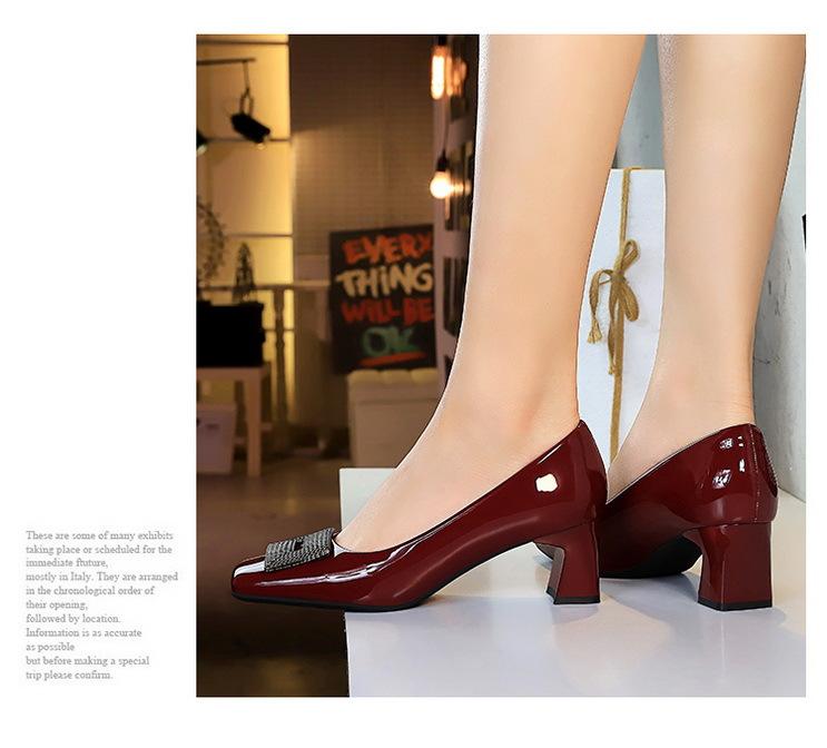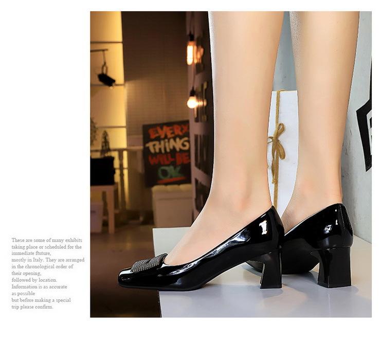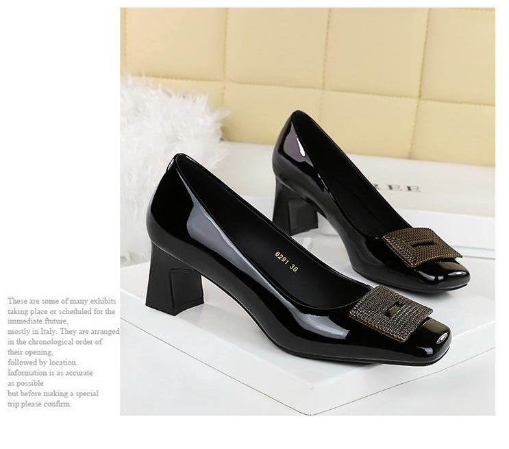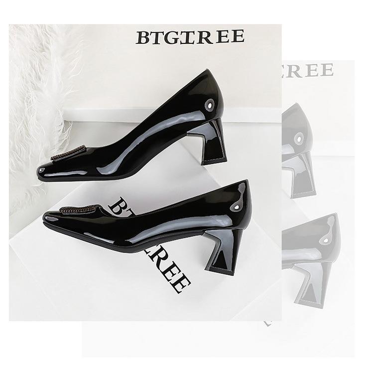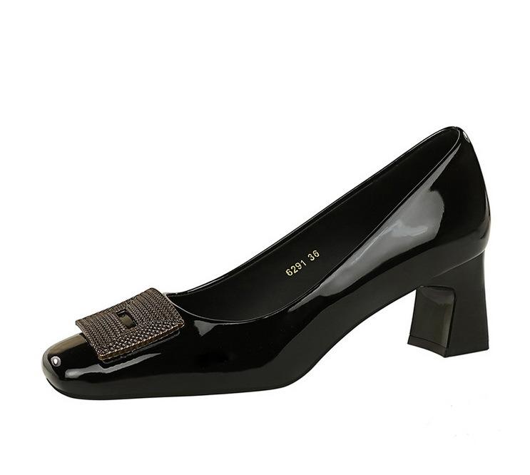 Elementos populares: Estilo europeo y americano Banquete Temperamento Tacón grueso Tacón medio Charol Hebilla metálica Boca poco profunda