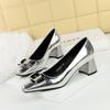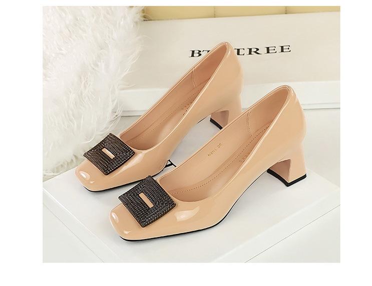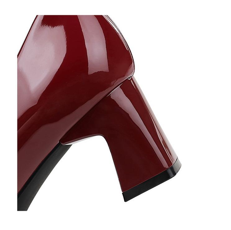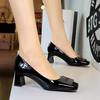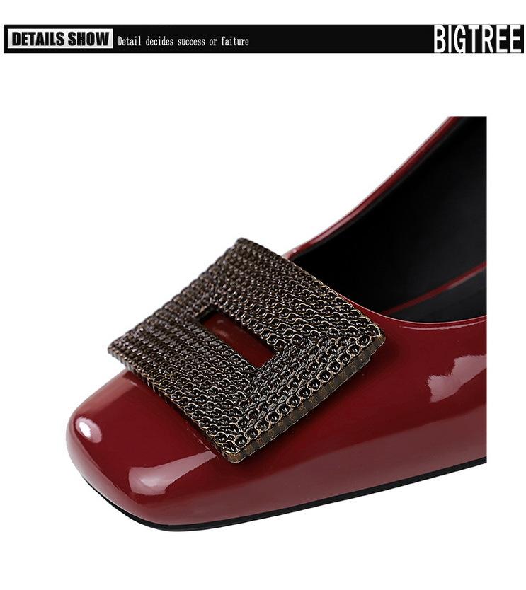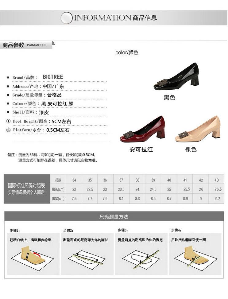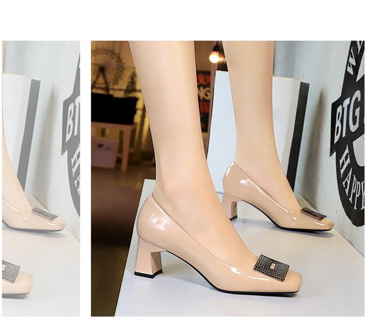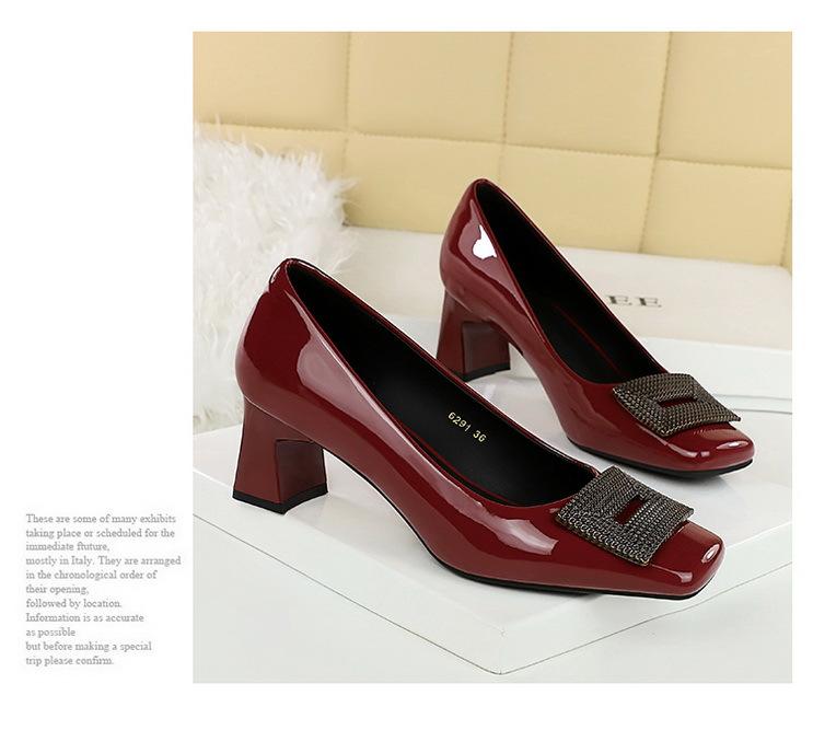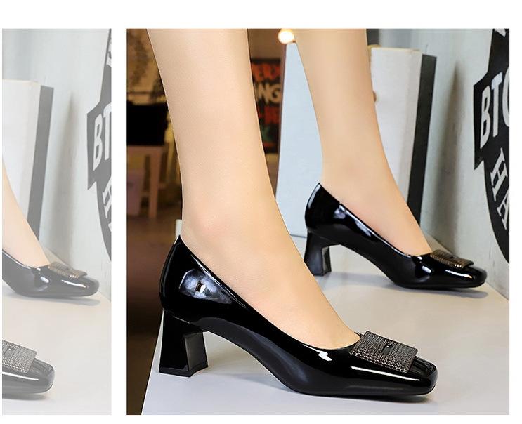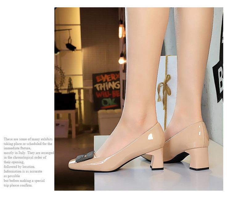 Elementos populares: Estilo europeo y americano Banquete Temperamento Tacón grueso Tacón medio Charol Hebilla metálica Boca poco profunda