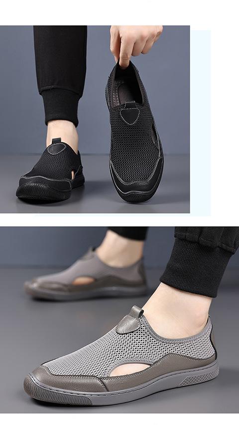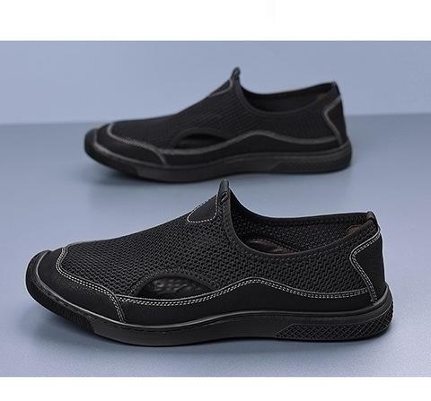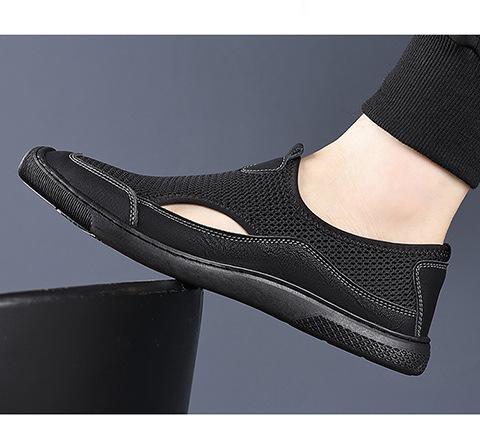 Zapatos de Hombre Verano Nuevo Estilo Zapatos de Malla Tejida al Vuelo Zapatos Ligeros Transpirables Delgados Slip-On Perezosos Modernos Deportivos y Casuales