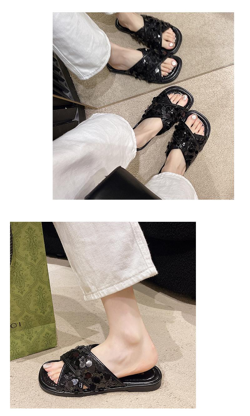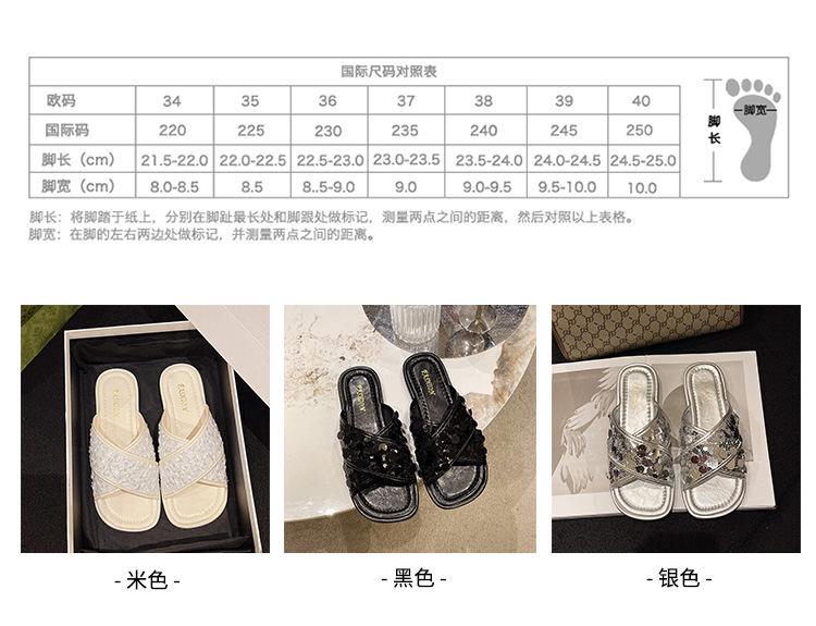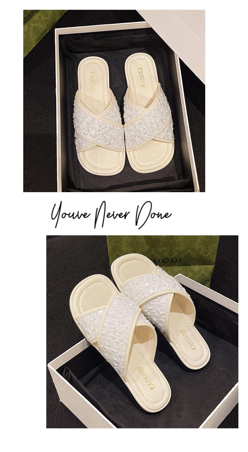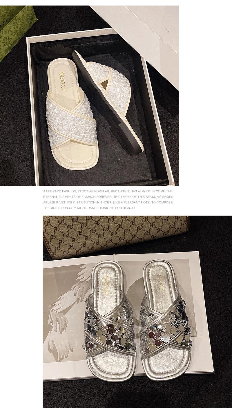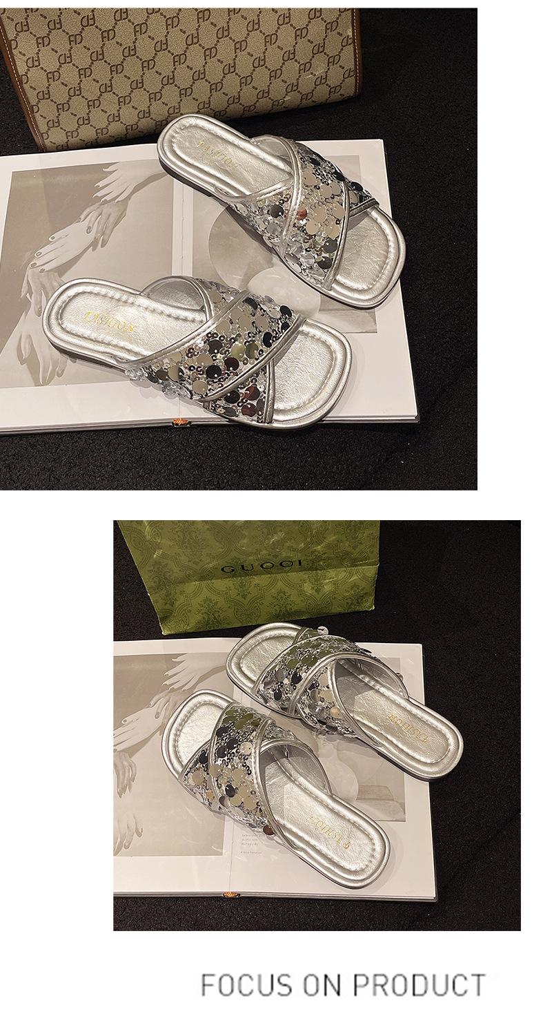 Hermosas Sandalias Planas con Lentejuelas para Verano para Mujer 2025 Nuevo Estilo con Falda, Zapatillas de Playa Modernas y Súper Populares